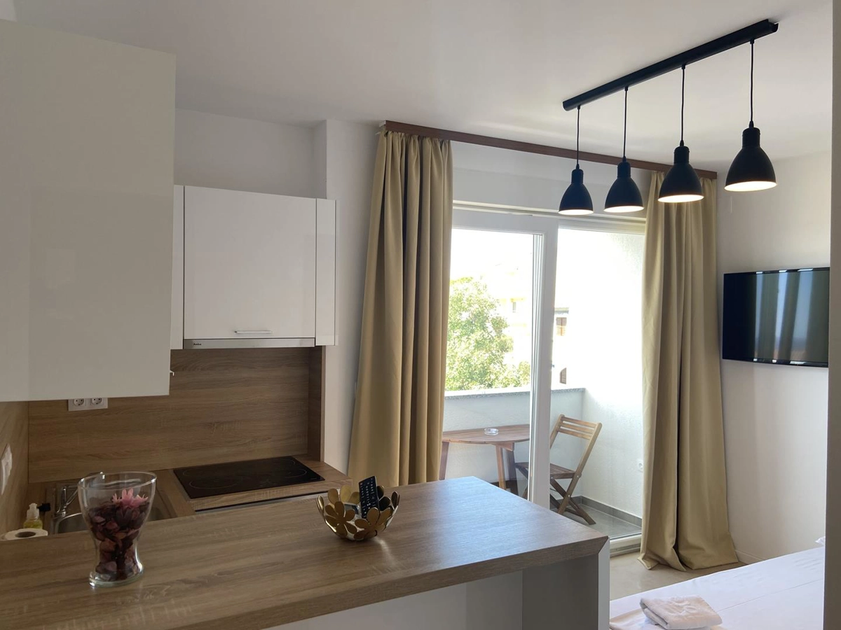 Die Neubauten der Sunset Apartments befinden sich in einer großartigen Position. Wenn Sie sich entspannen und den größten Teil Ihres Aufenthaltes auf der Terrasse/Balkon verbringen möchten, wo Sie die Düfte der mediterranen Kräuter und der Adria genießen werden, dann sind Sie an der richtigen Stelle. Die Wohnungen sind sehr modern mit Küche und Wohnzimmer ausgestattet. Parkplätze befinden sich in der Unterkunft und kostenloses WLAN ist im Preis inbegriffen. Wenn Sie ins Stadtzentrum gehen möchten; wo sich alle Restaurants, Cafés und Supermärkte befinden brauchen Sie nur zehn Minuten.