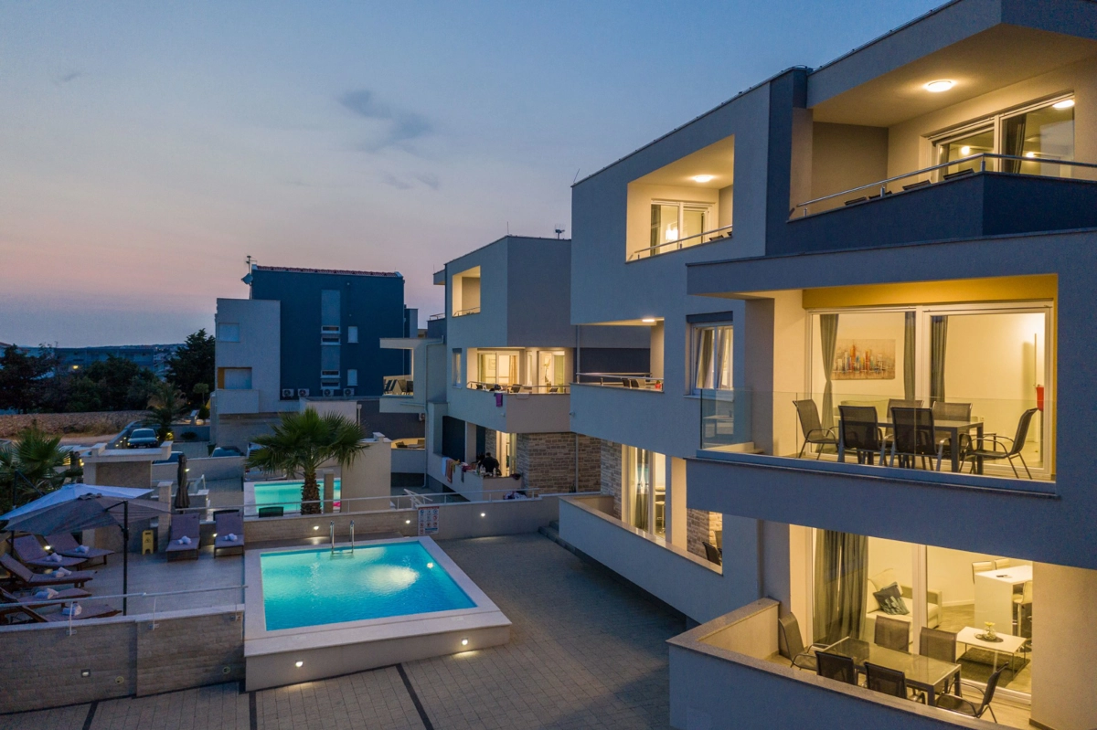Gradska plaža Lokunje udaljena je 10 minuta hoda, kao i autobusna stanica prema plaži Zrće. U sklopu smještaja nalazi se vanjski bazen na kojem se možete osvježiti i opustiti na ležaljkama.