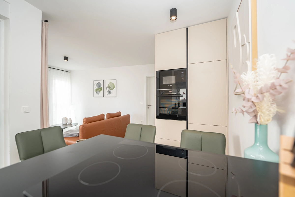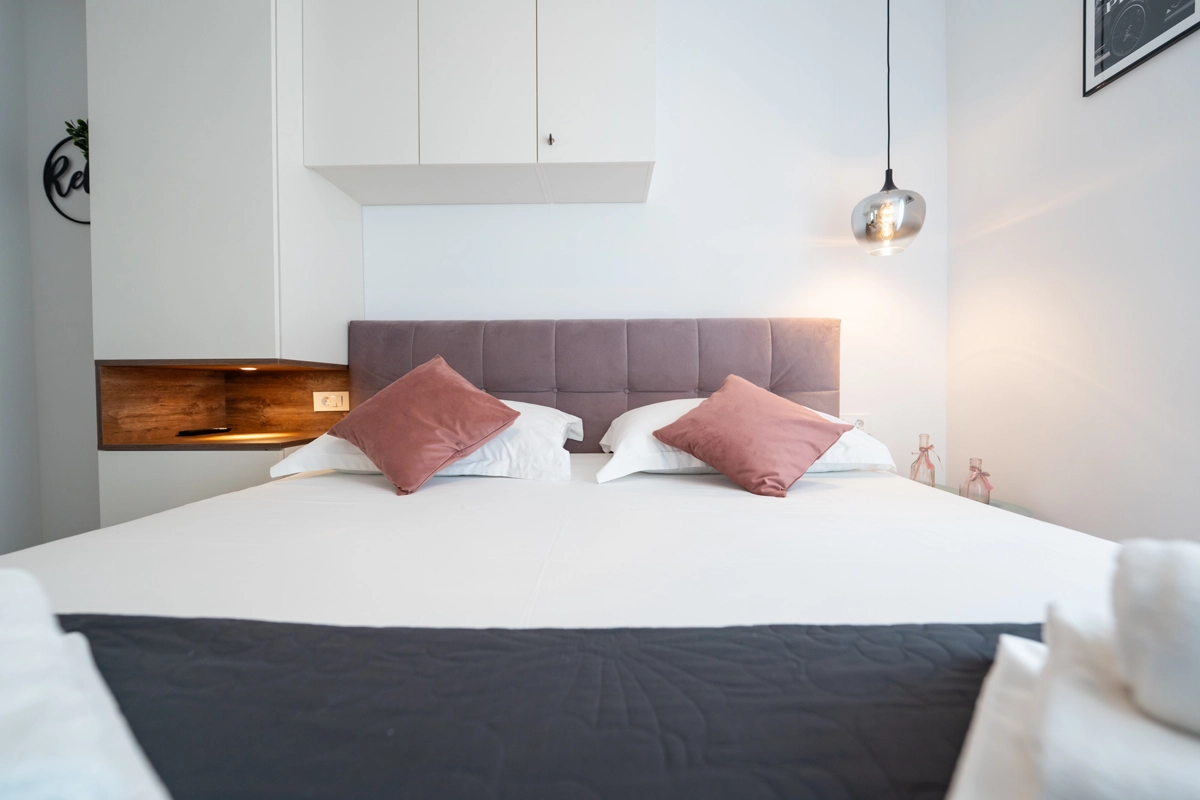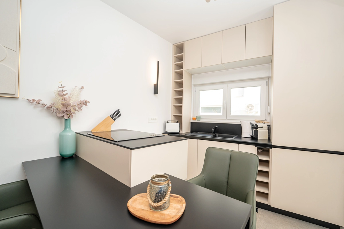 Uživajte u boravku u prostranom dvosobnom apartmanu koji ima privatni bazen i miran vrt. Apartman može primiti do 6 osoba te uključuje potpuno opremljenu kuhinju, udoban dnevni boravak i terasu s vrtnom garniturom – idealno mjesto za opuštanje ili objedovanje na otvorenom.
