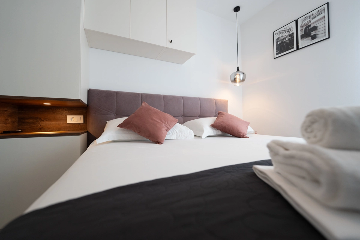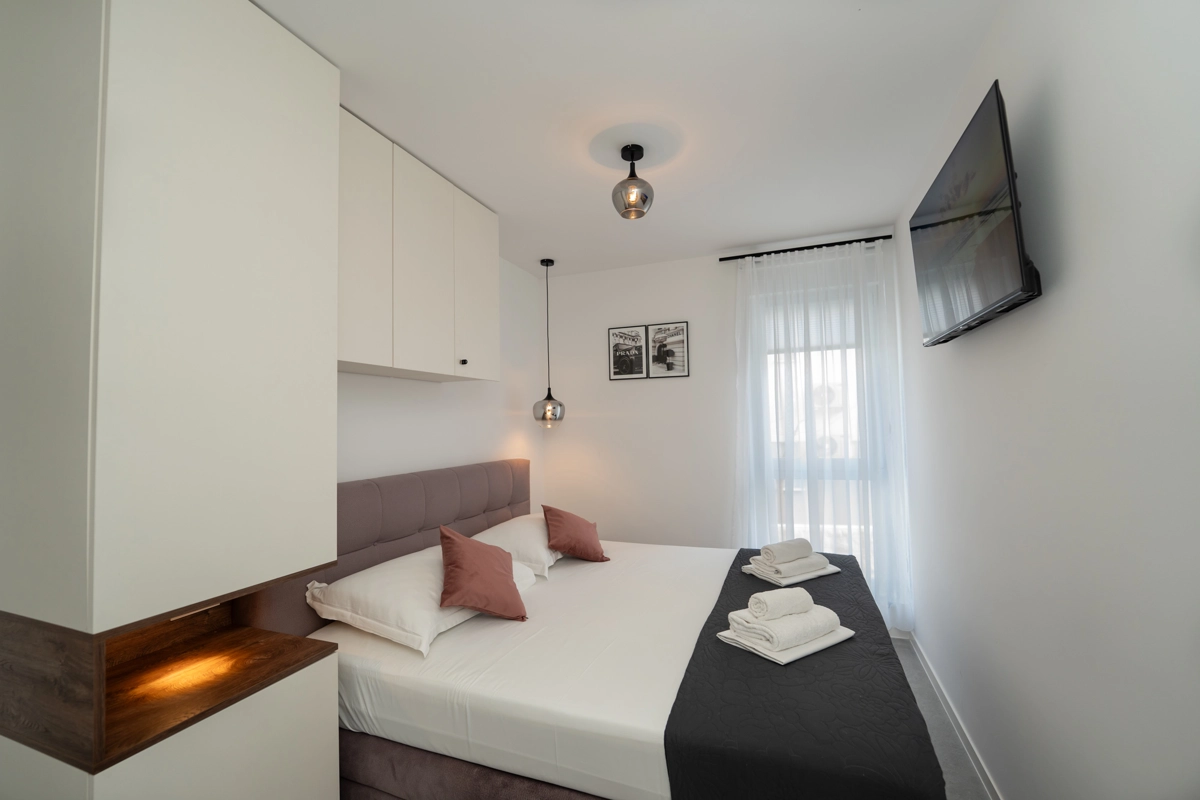Apartman se nalazi svega nekoliko minuta hoda od glavne autobusne stanice za plažu Zrće, centar grada i glavnu plažu Lokunje, što ga čini savršenim izborom za ugodan i praktičan odmor.