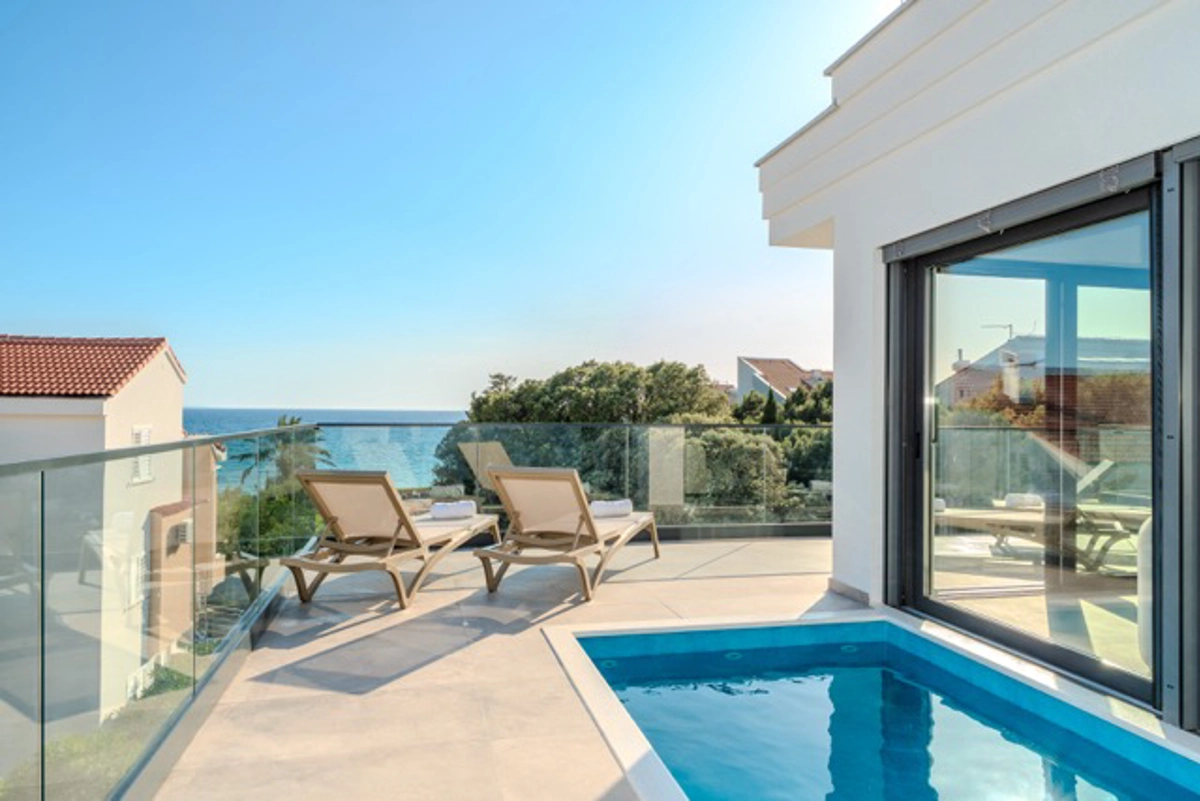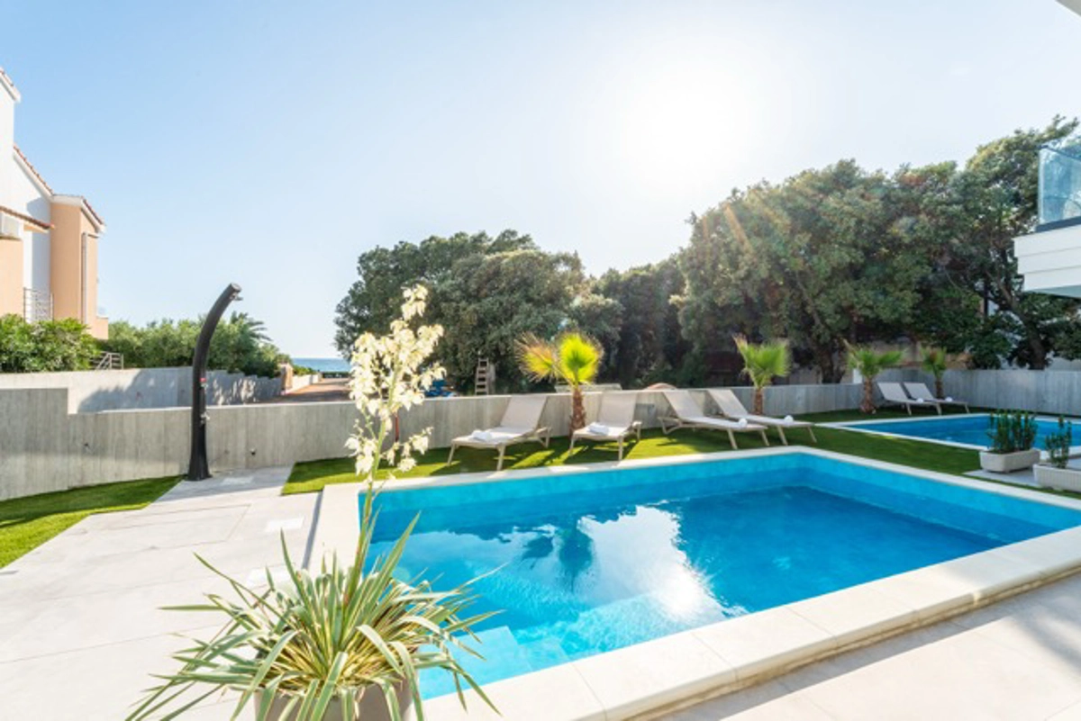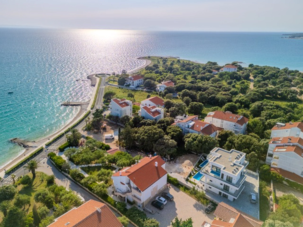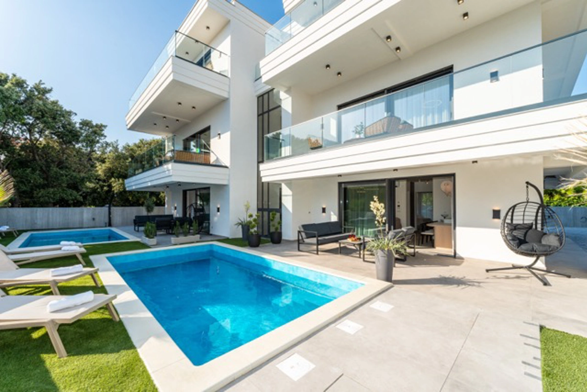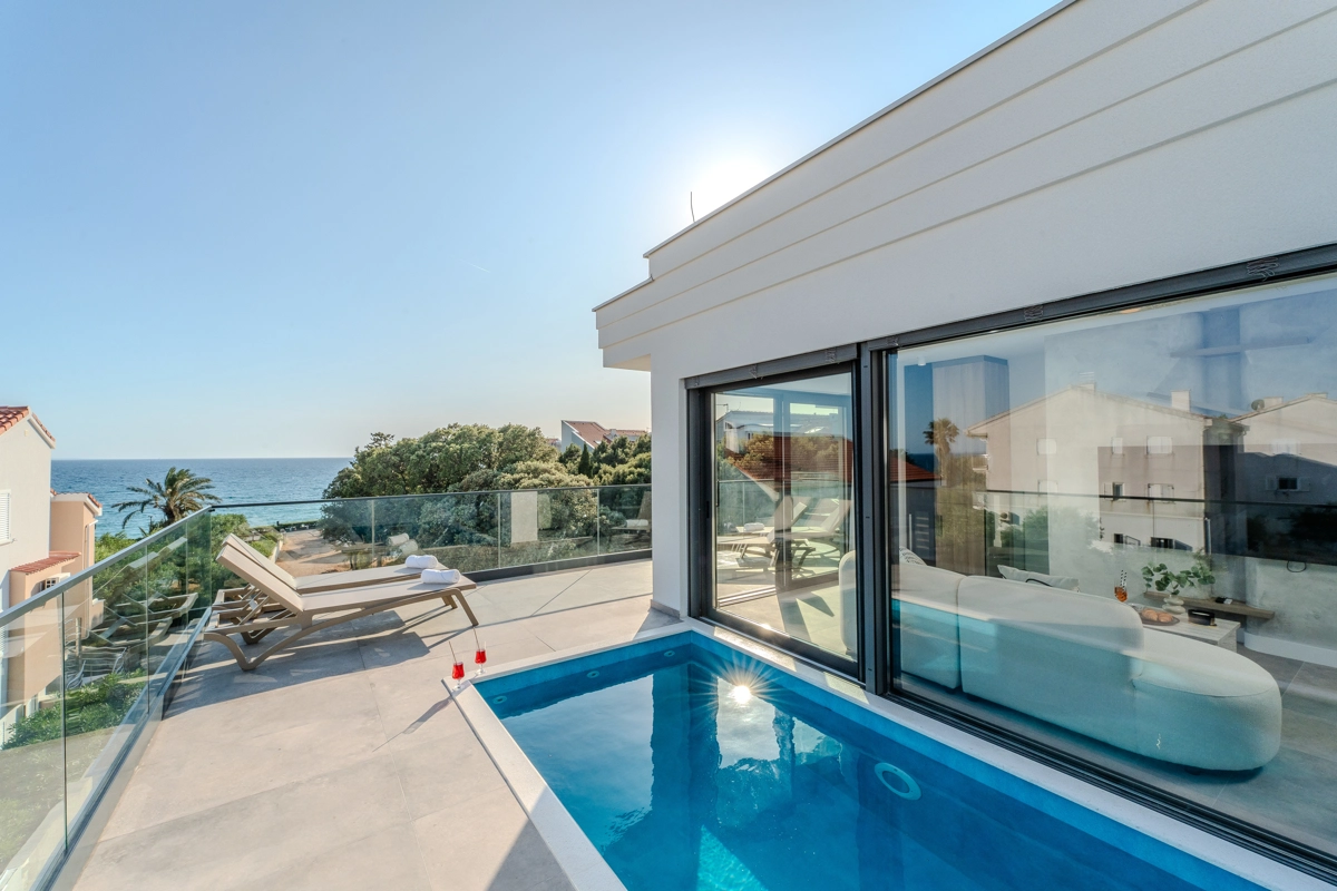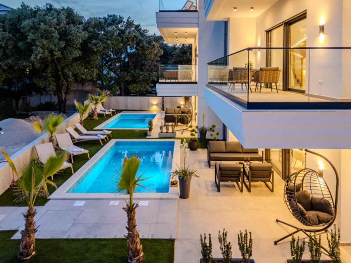 Svaki apartman ima vlastiti privatni bazen, savršen za opuštanje u potpunom miru, dok se plaža nalazi na samo nekoliko minuta hoda, idealna za uživanje u kristalno čistom Jadranskom moru. S vrhunskim završnim detaljima, suvremenim dizajnom i prekrasnim pogledima, ova je nekretnina savršen izbor za goste koji traže profinjen i luksuzan obalni bijeg.
