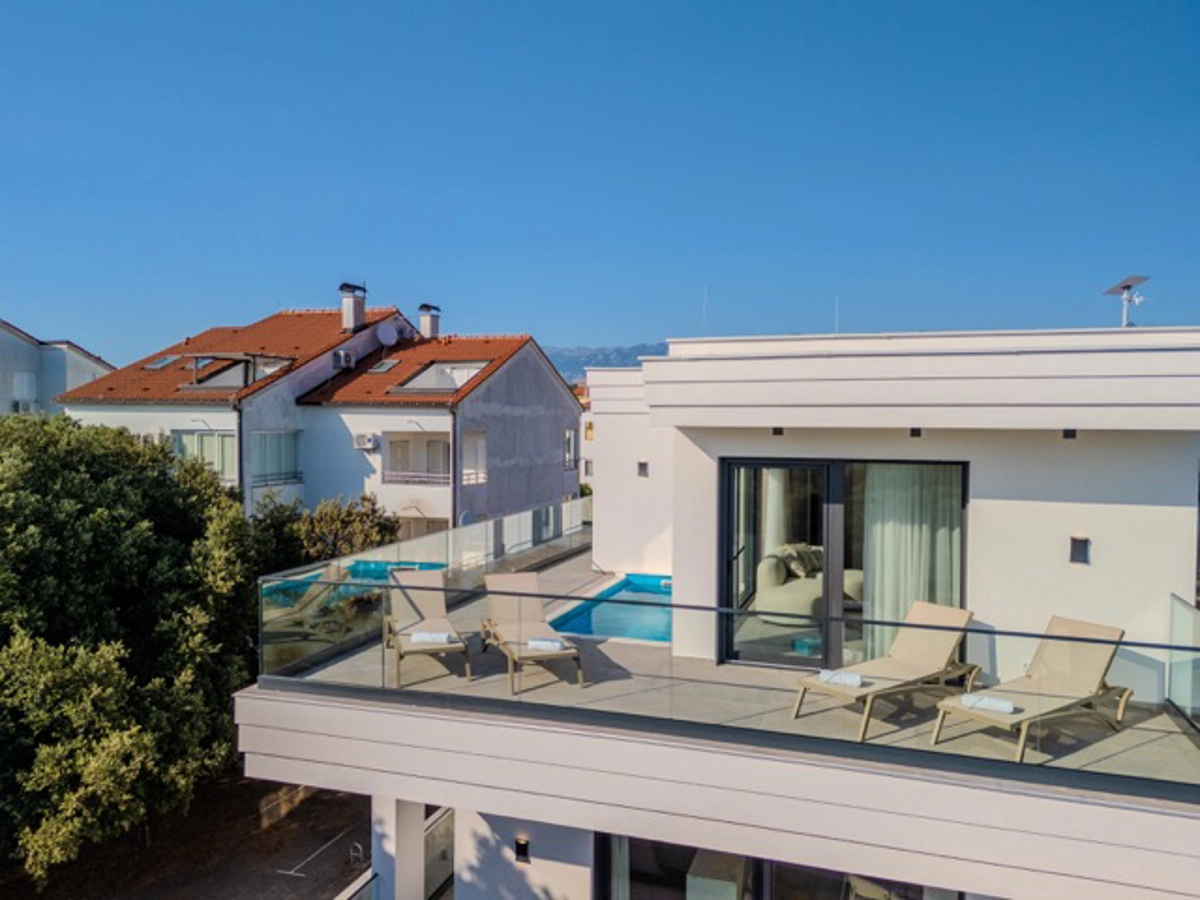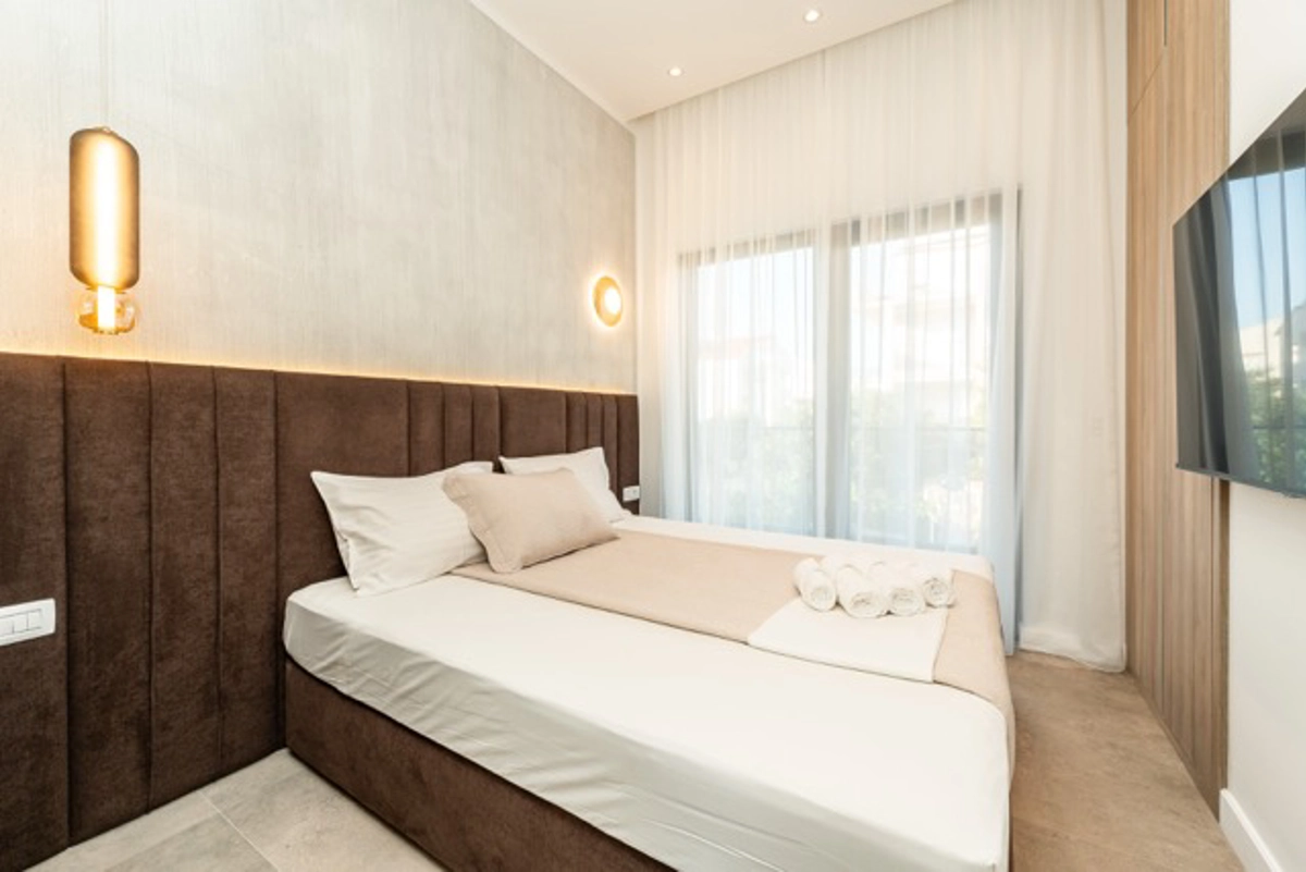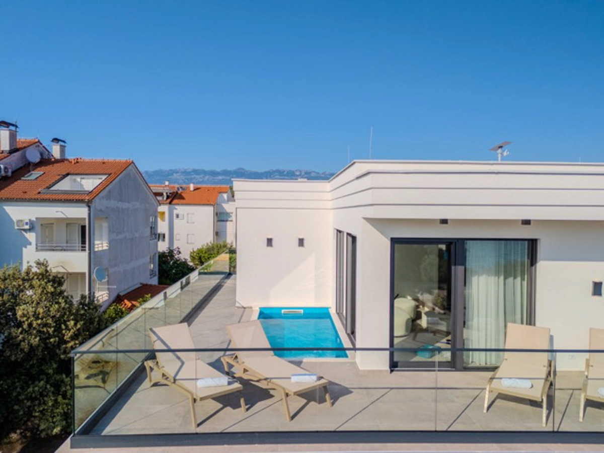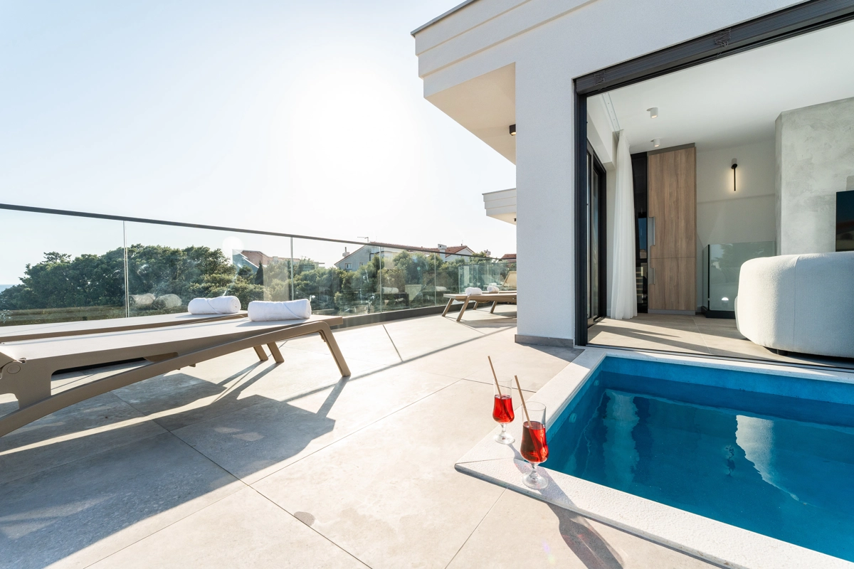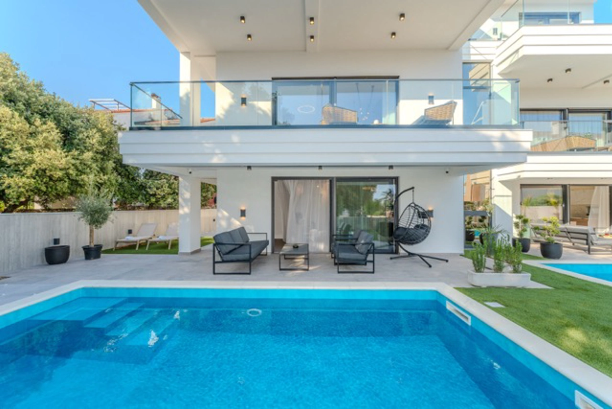 Svaki apartman ima vlastiti privatni bazen, savršen za opuštanje u potpunom miru, dok se plaža nalazi na samo nekoliko minuta hoda, idealna za uživanje u kristalno čistom Jadranskom moru. S vrhunskim završnim detaljima, suvremenim dizajnom i prekrasnim pogledima, ova je nekretnina savršen izbor za goste koji traže profinjen i luksuzan obalni bijeg.