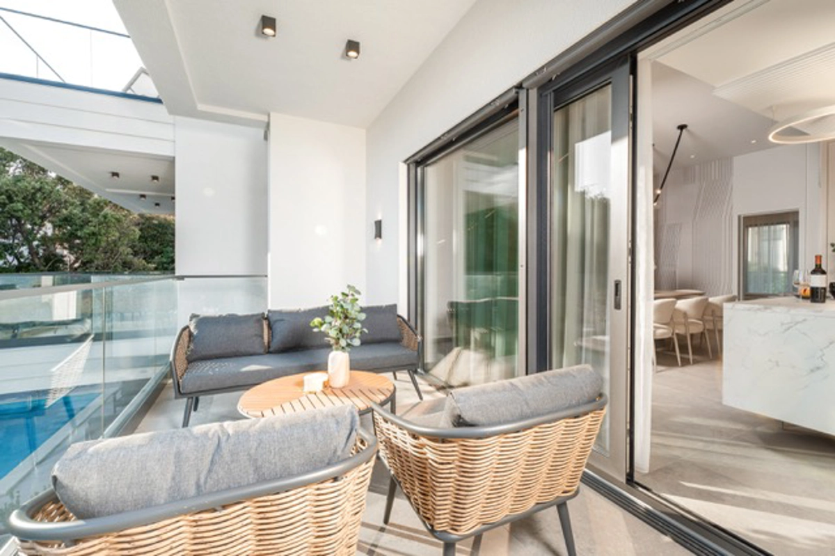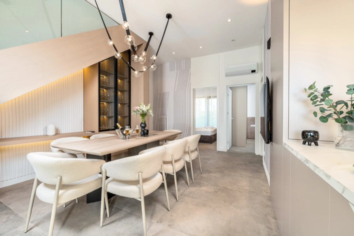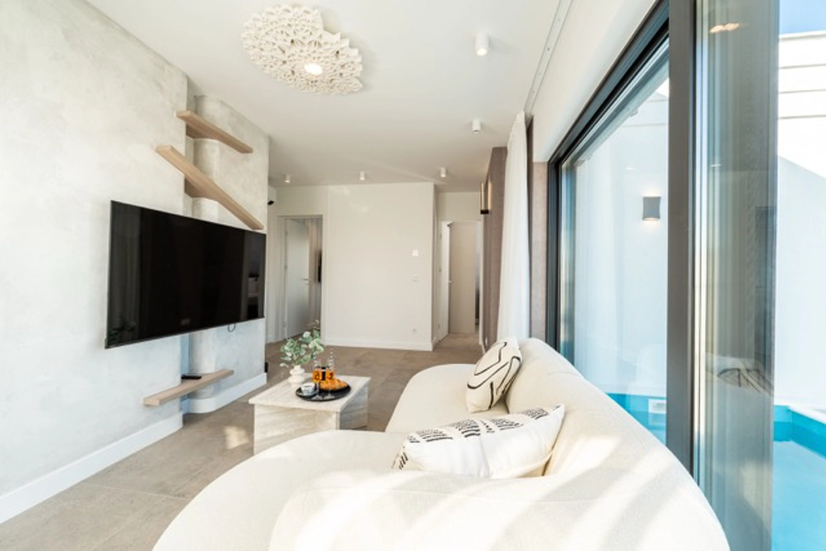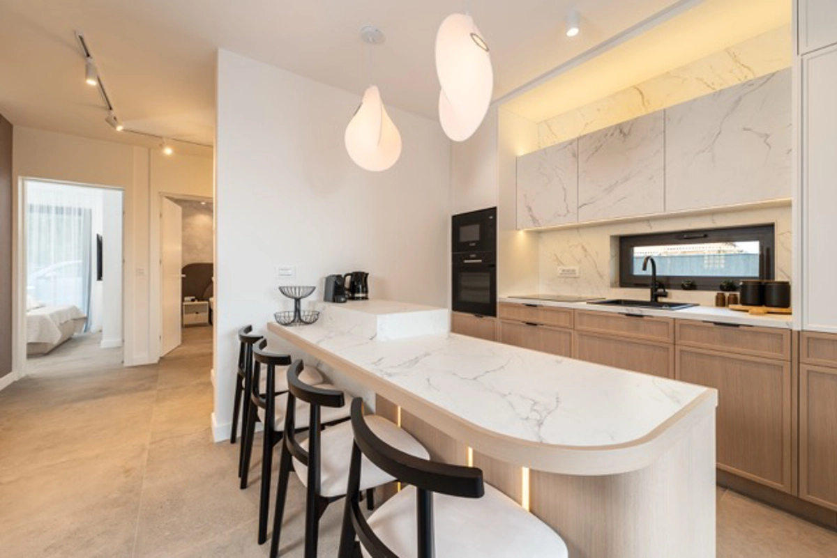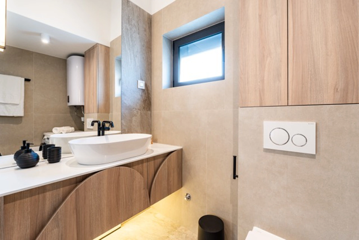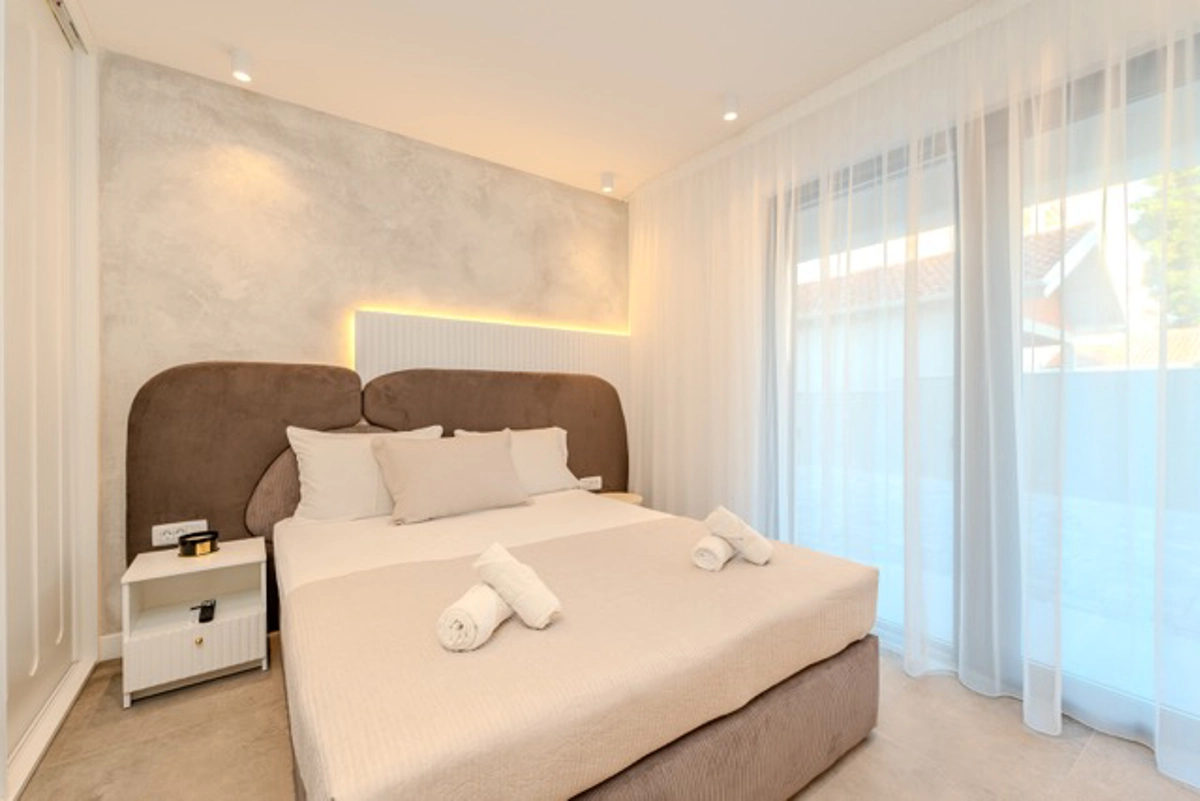 Svaki apartman ima vlastiti privatni bazen, savršen za opuštanje u potpunom miru, dok se plaža nalazi na samo nekoliko minuta hoda, idealna za uživanje u kristalno čistom Jadranskom moru. S vrhunskim završnim detaljima, suvremenim dizajnom i prekrasnim pogledima, ova je nekretnina savršen izbor za goste koji traže profinjen i luksuzan obalni bijeg.