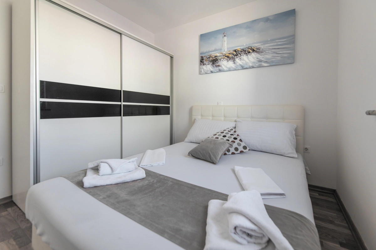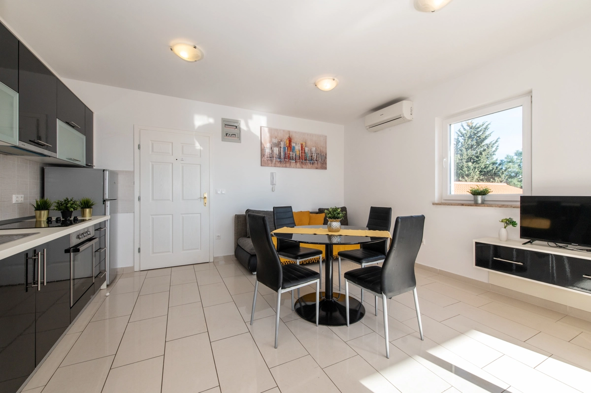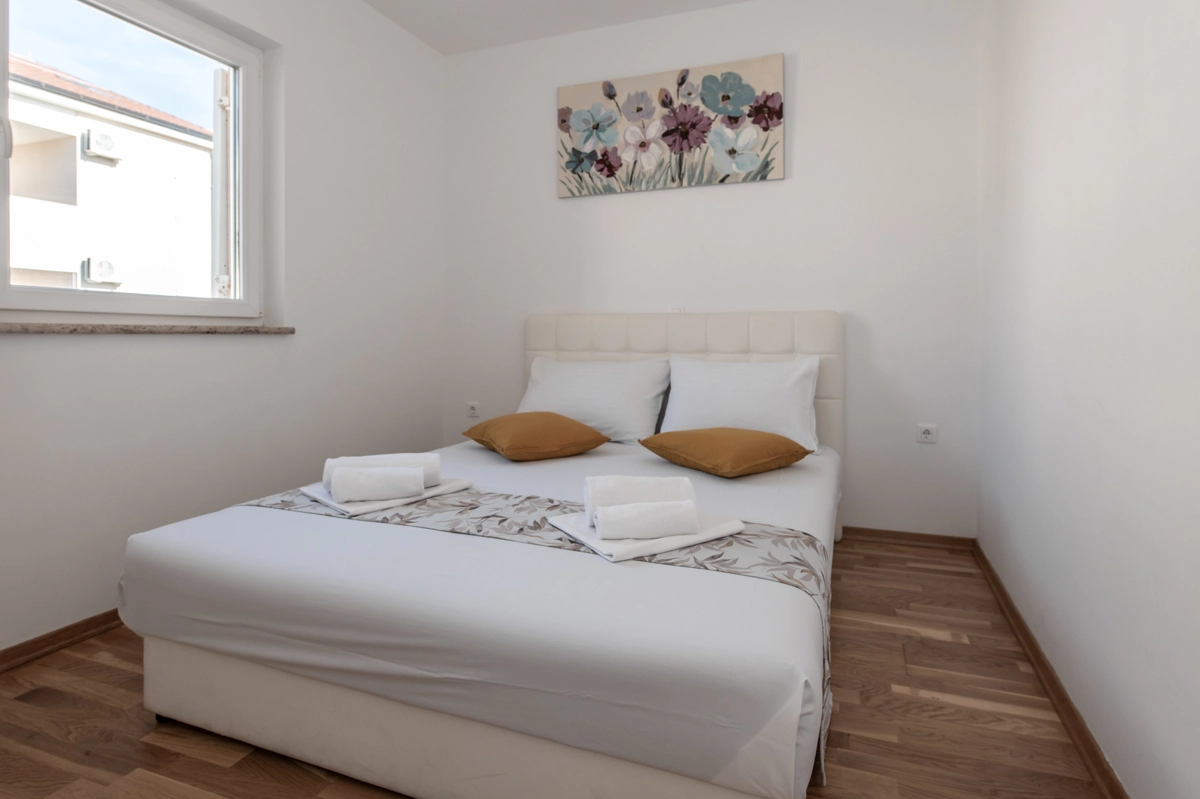 Dieses Gebäude verfügt über sieben Standard-Apartments, die nur 5 Gehminuten vom Riva-Strand entfernt sind. Der lokale Kaffeebar ist nur eine Gehminute von den Apartments entfernt, und die örtlichen Restaurants sind nur 5 Gehminuten entfernt. Die Bushaltestelle für den Zrće-Strand ist 15 Gehminuten entfernt.