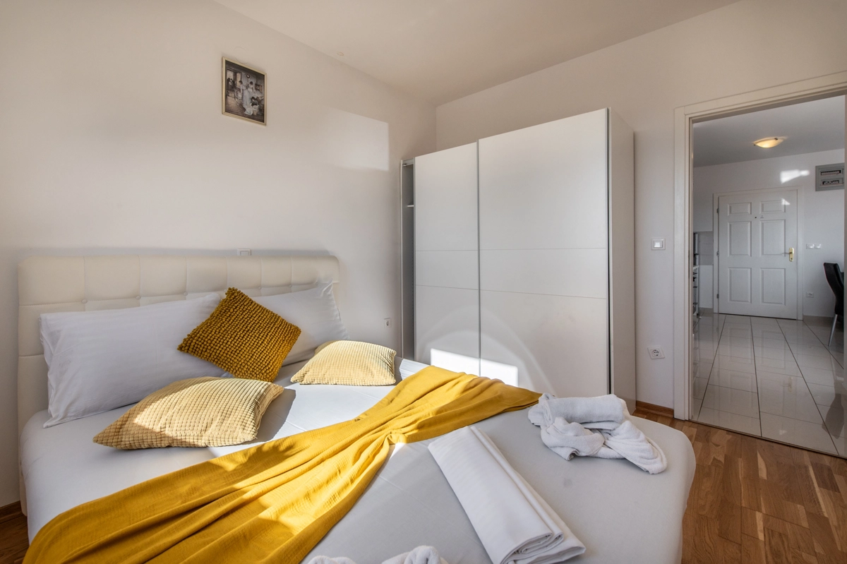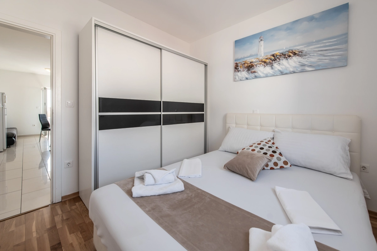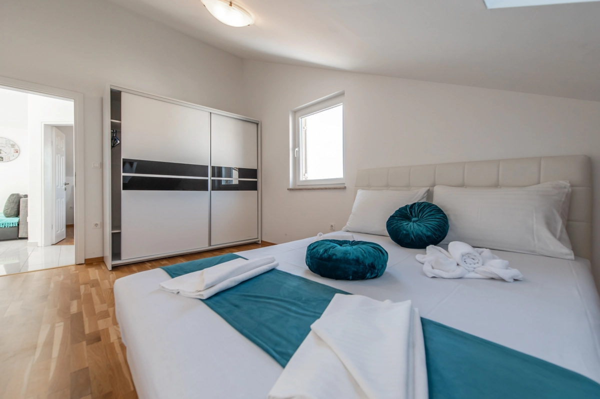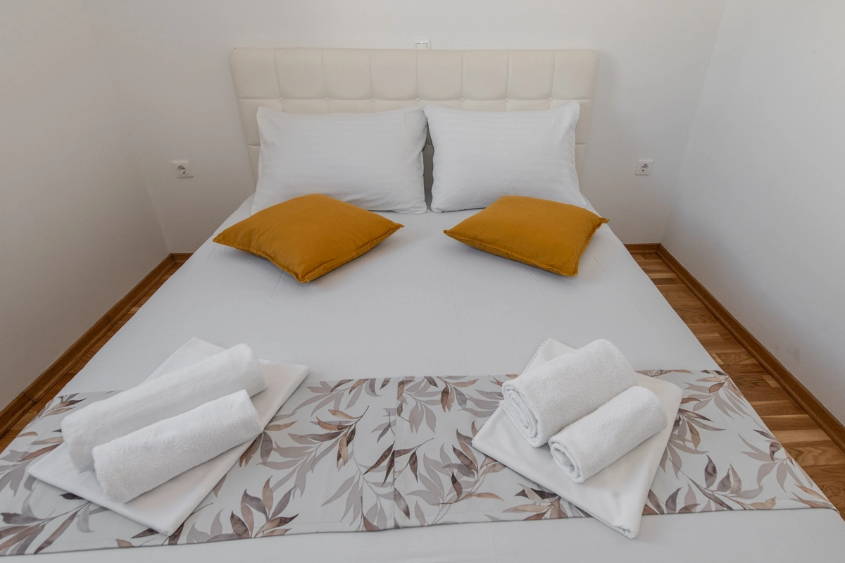 Dieses Gebäude verfügt über sieben Standard-Apartments, die nur 5 Gehminuten vom Riva-Strand entfernt sind. Der lokale Kaffeebar ist nur eine Gehminute von den Apartments entfernt, und die örtlichen Restaurants sind nur 5 Gehminuten entfernt. Die Bushaltestelle für den Zrće-Strand ist 15 Gehminuten entfernt.