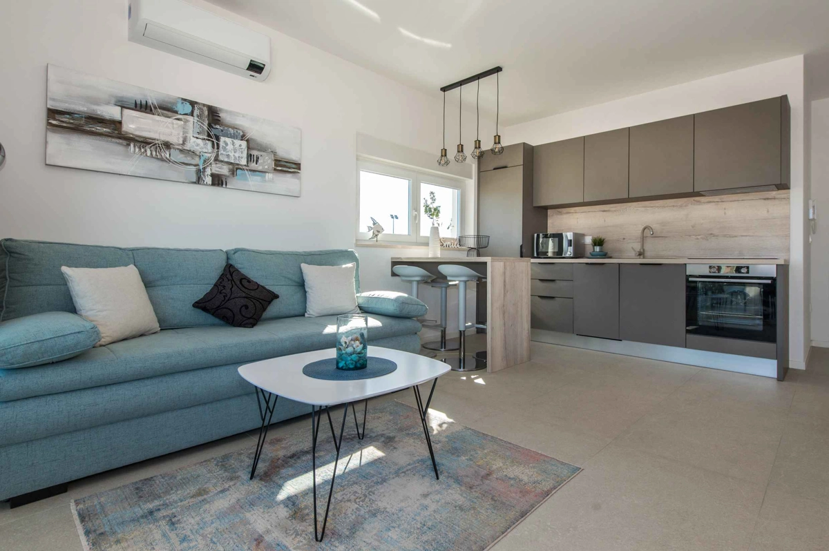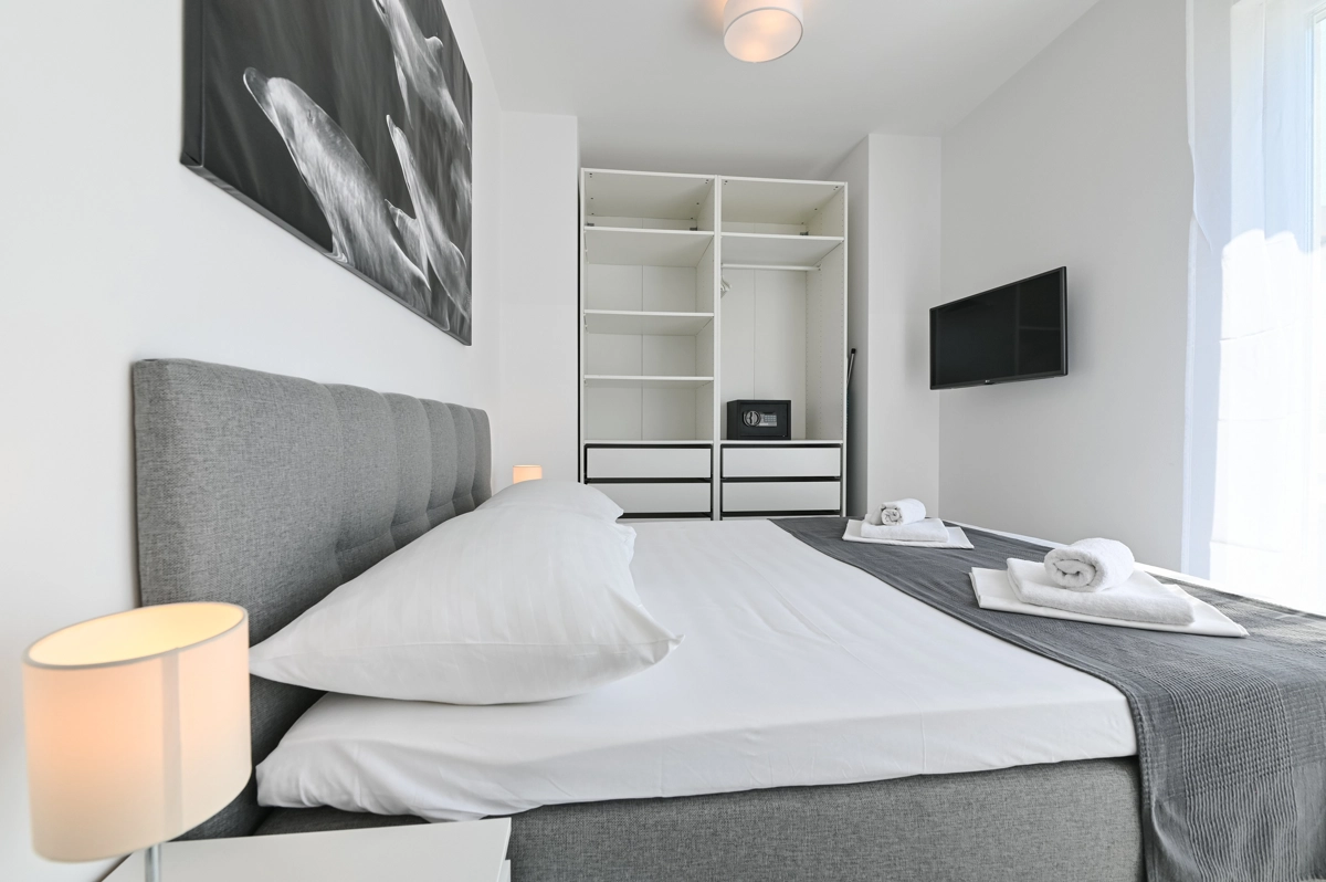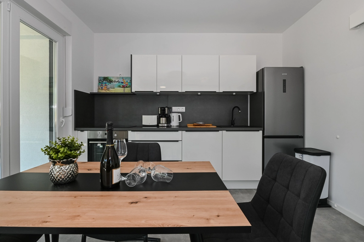 Alles, was Sie benötigen, befindet sich in Gehweite der Apartments – alle Bars, Restaurants, Supermärkte sowie der Hauptstrand Lokunje.