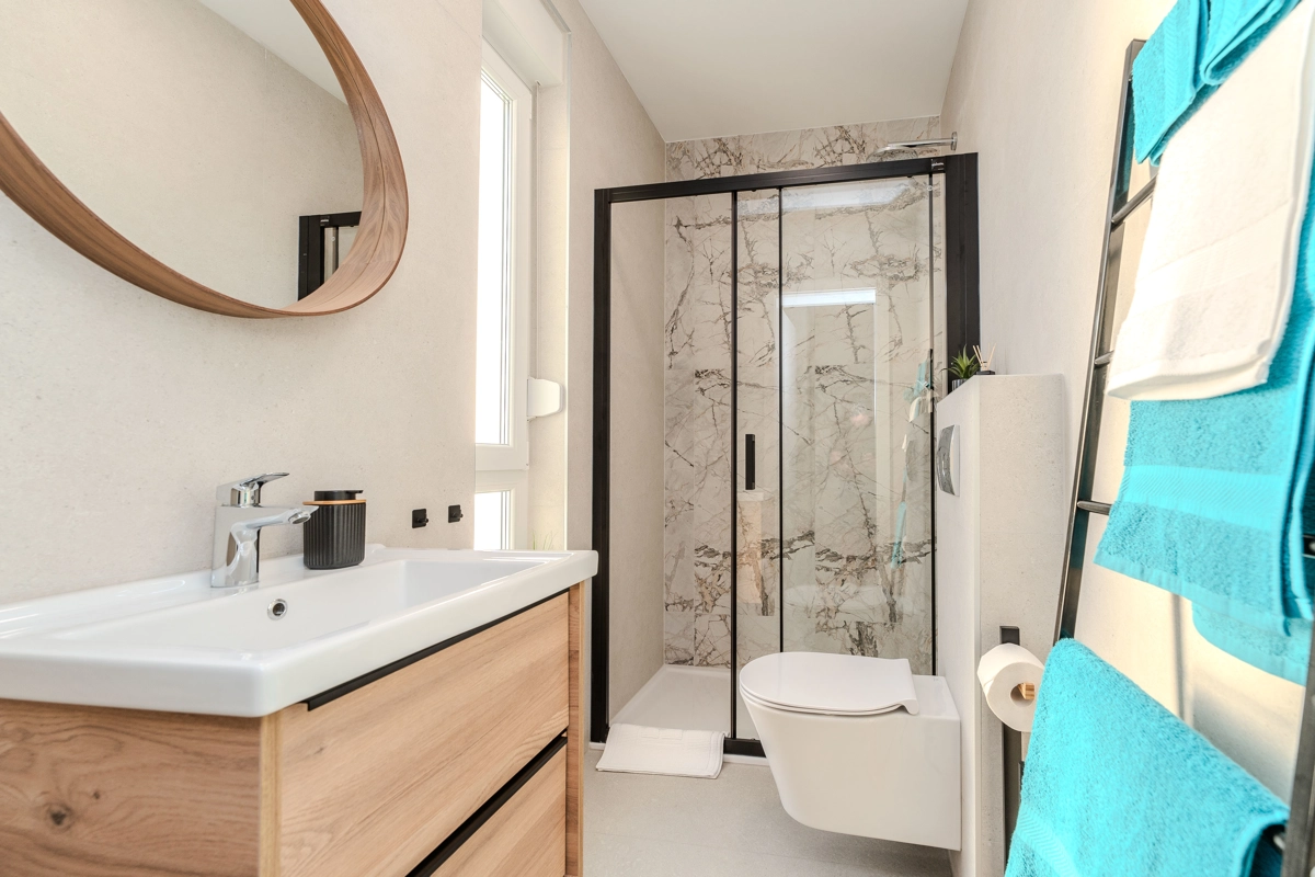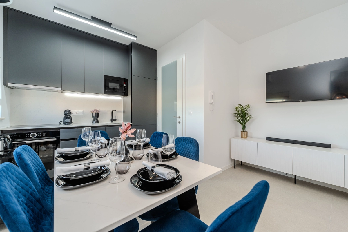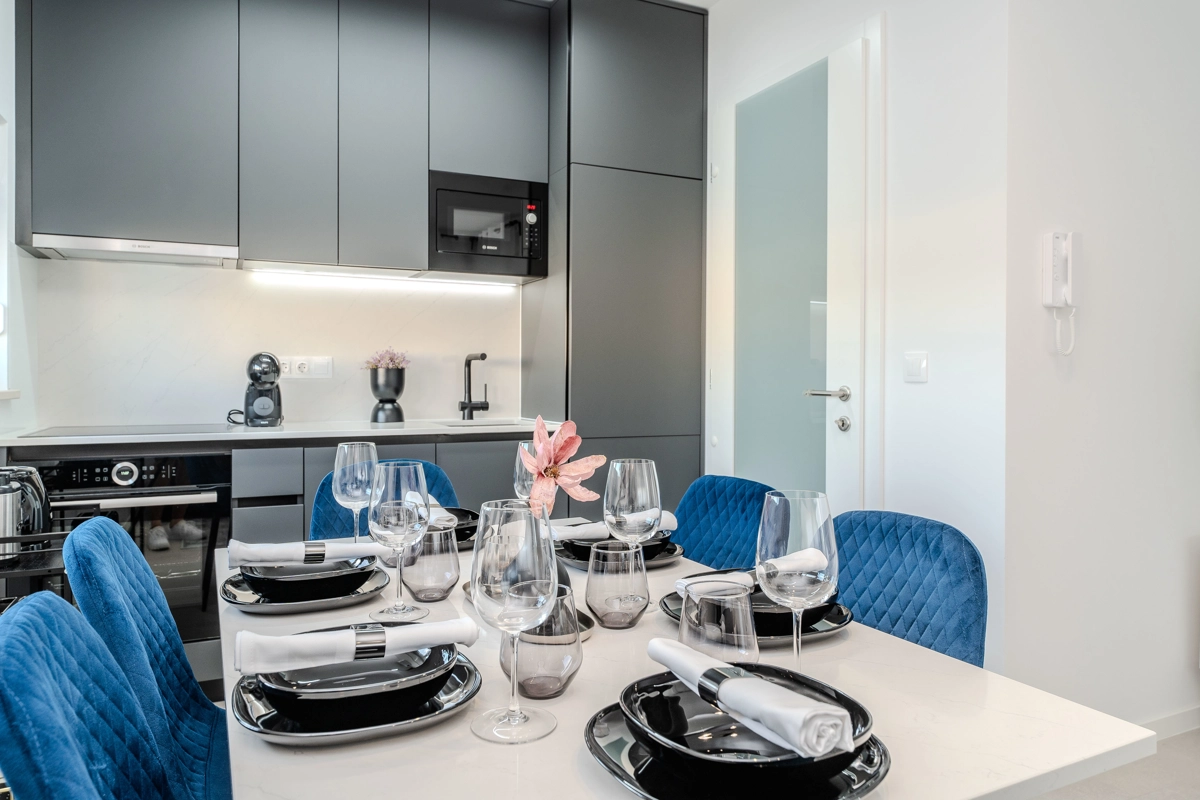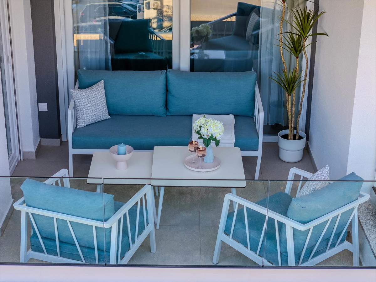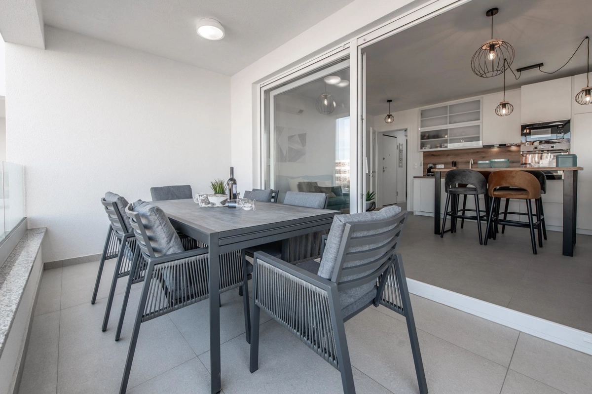 Jedes Apartment bietet eine harmonische Balance und ermöglicht es den Gästen, sich in ihrer exklusiven Outdoor-Oase zu entspannen, während die sonnige Küste sowie der dynamische Puls des Stadtzentrums, das ebenfalls nur wenige Minuten von der Residenz entfernt ist, schnell erreichbar sind.