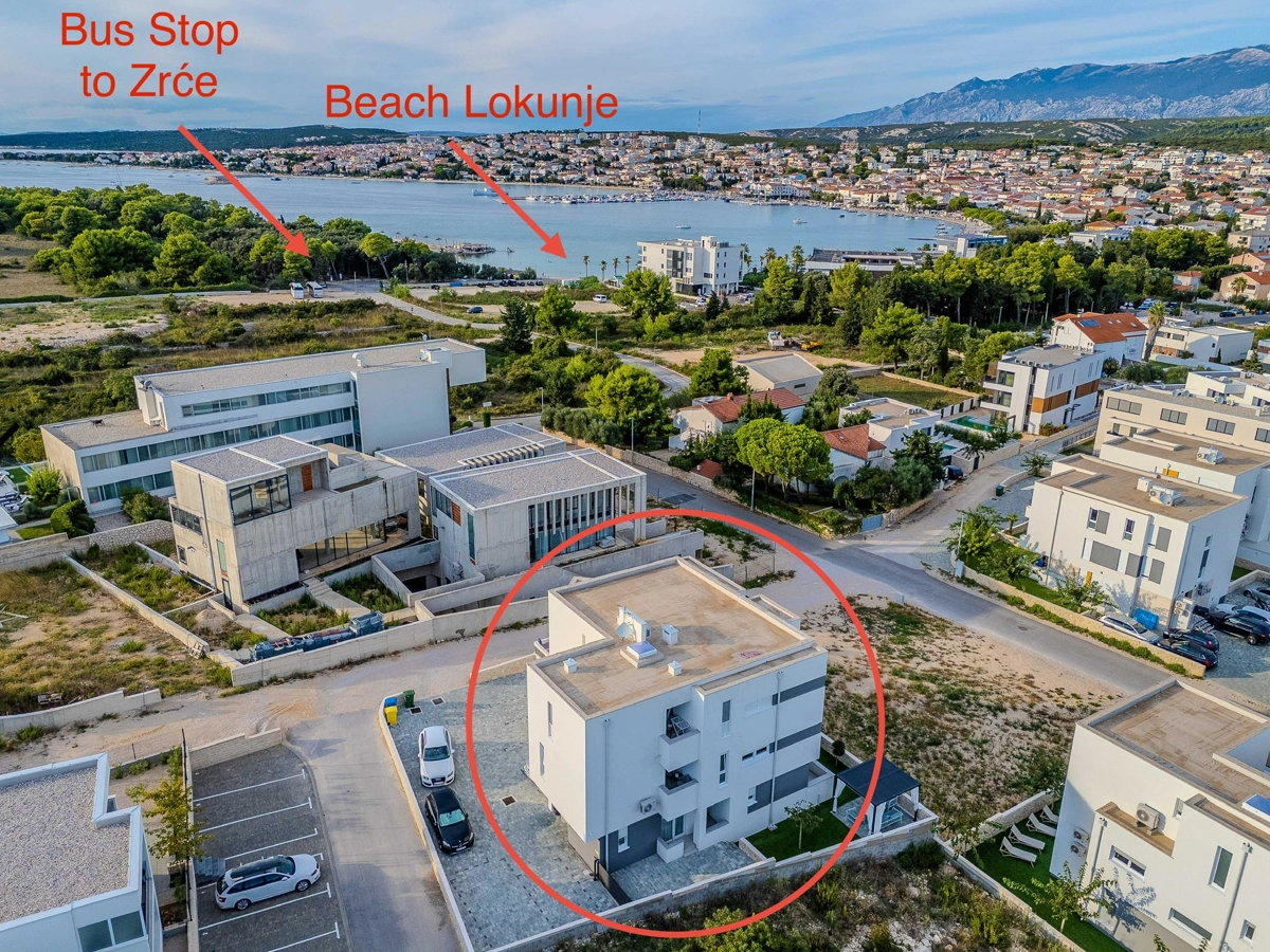 Die Unterkunft befindet sich in einer günstigen Lage in Novalja, nur wenige Gehminuten vom Strand Lokunje und vom Stadtzentrum entfernt. Restaurants, Strandbars, Cafés und Supermärkte sind bequem zu Fuß erreichbar.