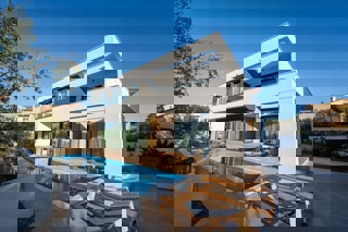 Die Terrasse wurde als idealer Ort zum Entspannen gestaltet, mit bequemen Lounge-Möbeln, die perfekt positioniert sind, um die atemberaubende Umgebung zu genießen. Ob Sie die Aussicht genießen, im Pool entspannen oder einen ruhigen Moment auf der Terrasse verbringen, jeder Aspekt dieser Villa ist mit Luxus im Sinn entworfen.