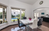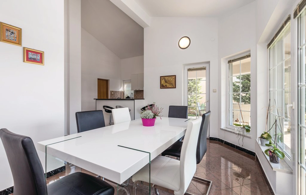 Im Inneren ist der offene Wohnbereich hell und luftig, mit großen Fenstern, die natürliches Licht hereinlassen. Die voll ausgestattete Küche bietet moderne Geräte und einen geräumigen Essbereich, der perfekt für Familienmahlzeiten ist.