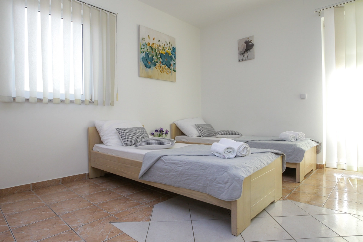Die Bushaltestelle nach Zrće liegt etwa 400 m entfernt, Strand Lokunje und Supermarkt jeweils rund 900 m. Damit bleibt der Alltag im Urlaub gut planbar.