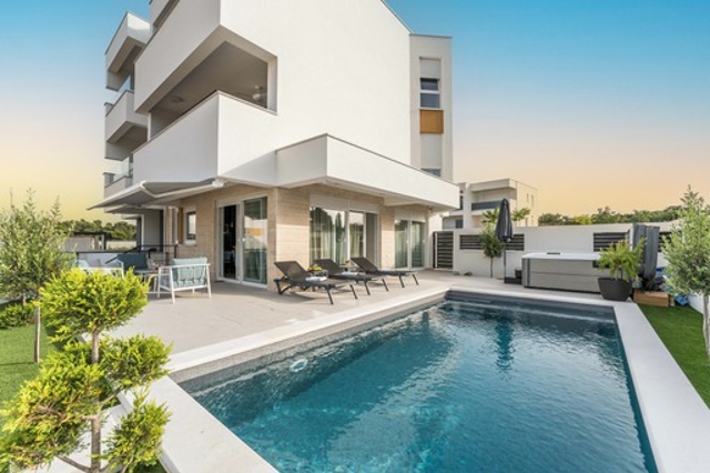 Treten Sie hinaus und entdecken Sie Ihre private Oase mit einem erfrischenden Pool und einem Jacuzzi, perfekt zum Entspannen und Genießen der Ruhe der Umgebung. Das Apartment Sun befindet sich in einer ruhigen Lage, ist jedoch bequem in der Nähe sowohl des lokalen Strandes als auch des Stadtzentrums, was Ihnen das Beste aus beiden Welten für Ihre Erholung und Erkundung bietet.