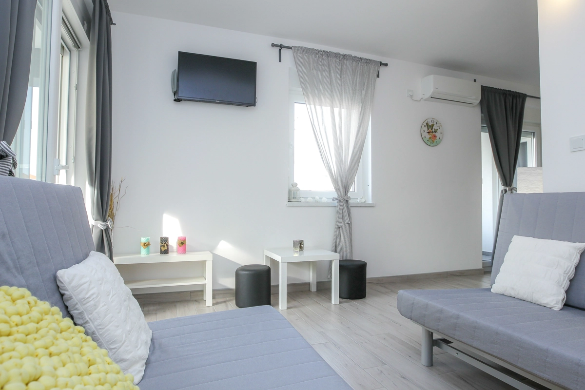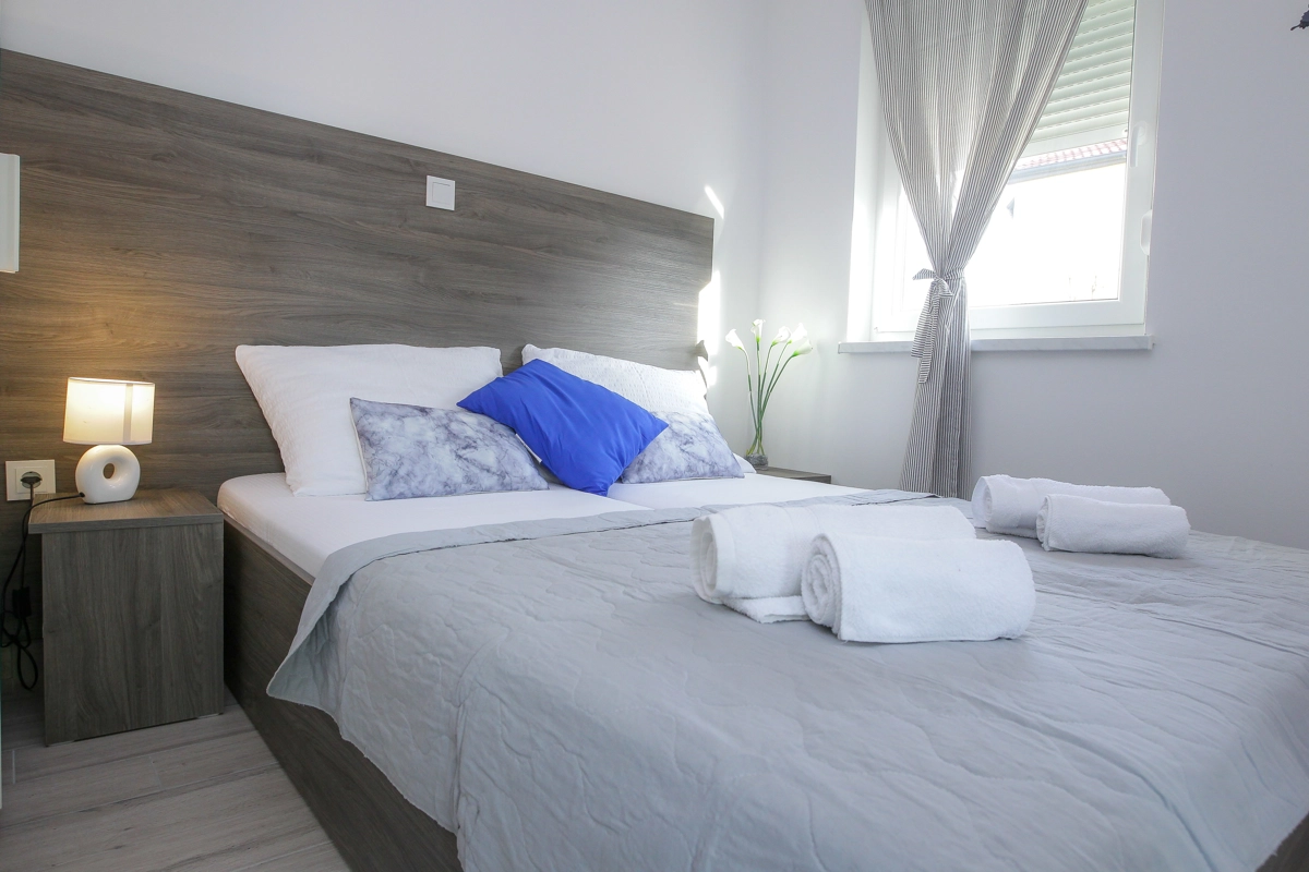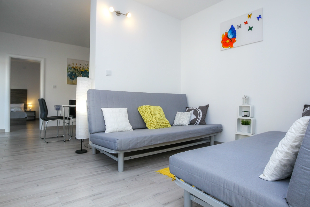 Moderne Apartments mit Pool für Gäste, die einen gut angebundenen und unkomplizierten Aufenthalt nahe Strand und Zrće-Bus suchen.