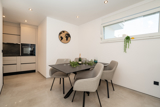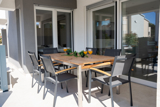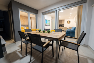 Der offene Wohn- und Essbereich verbindet sich nahtlos mit dem Außenbereich, wo Sie den privaten Garten und Pool genießen können – ideal zum Sonnenbaden, Schwimmen oder einfach zum Entspannen.