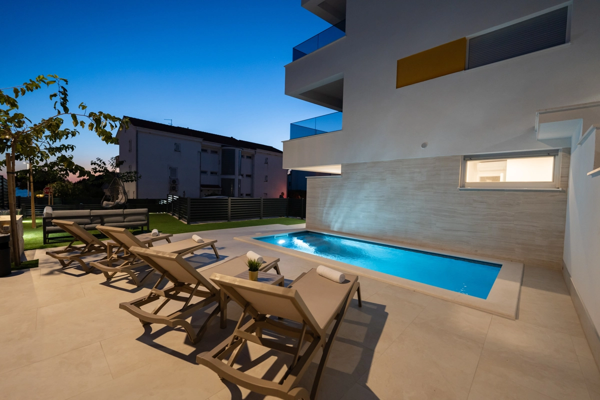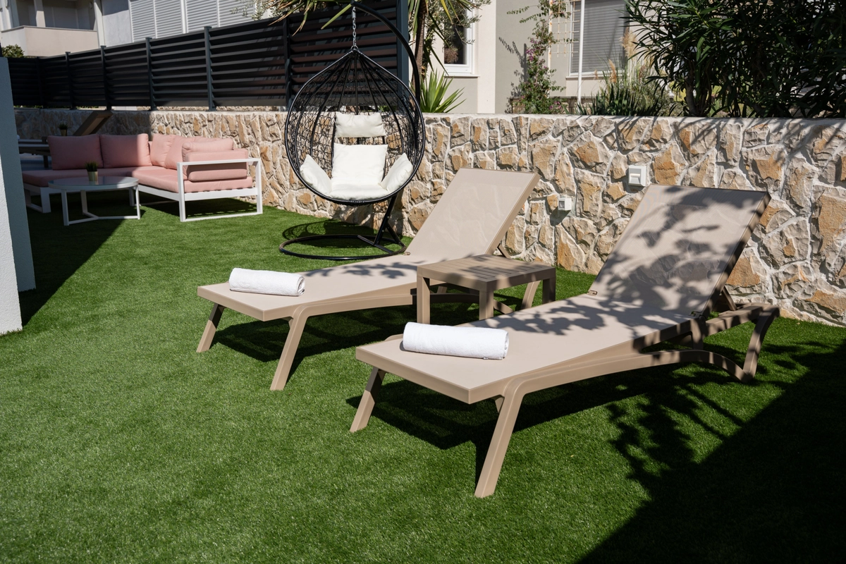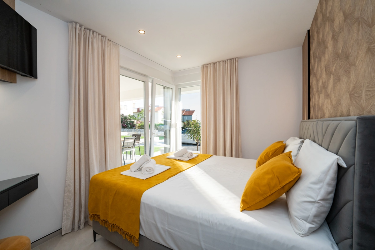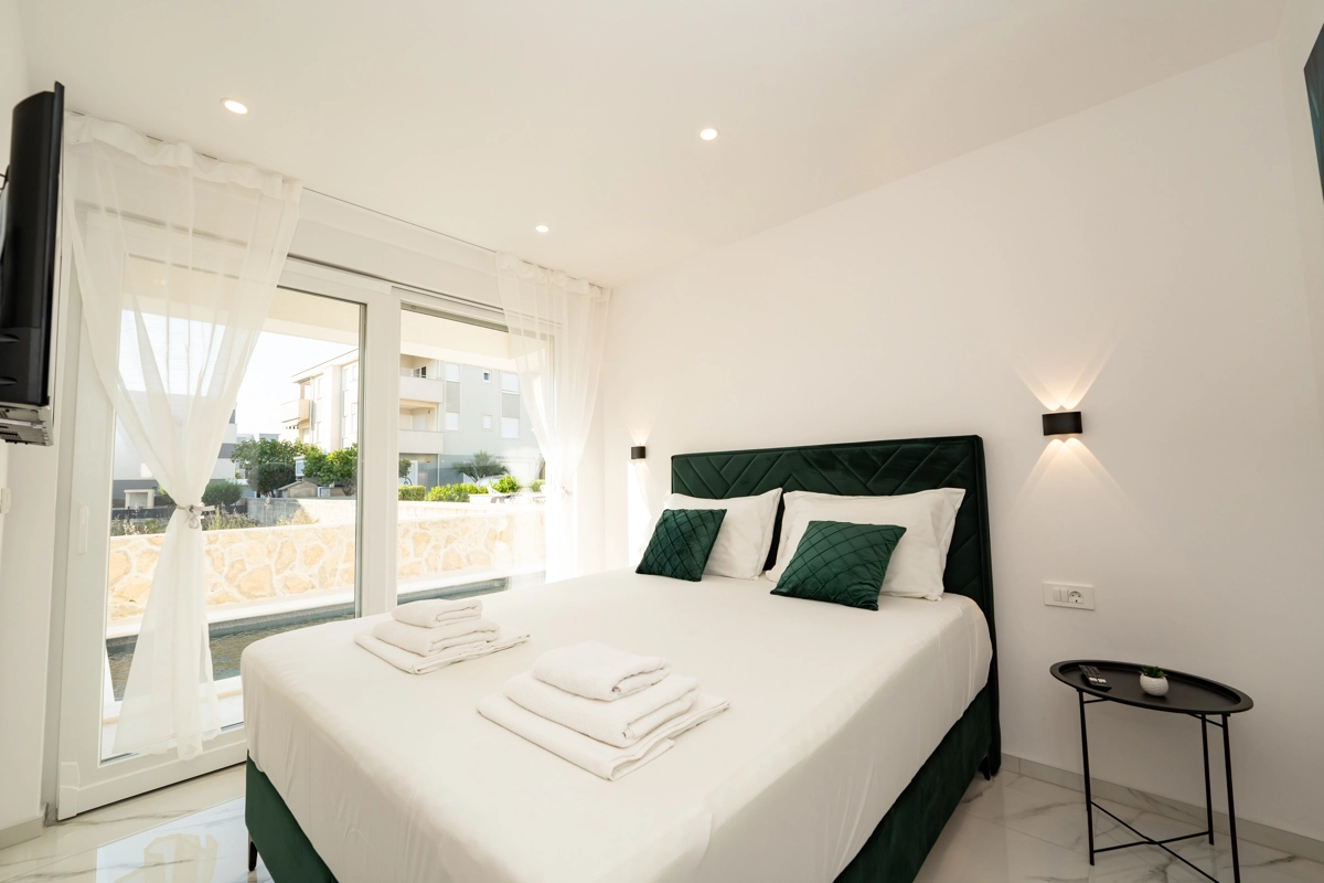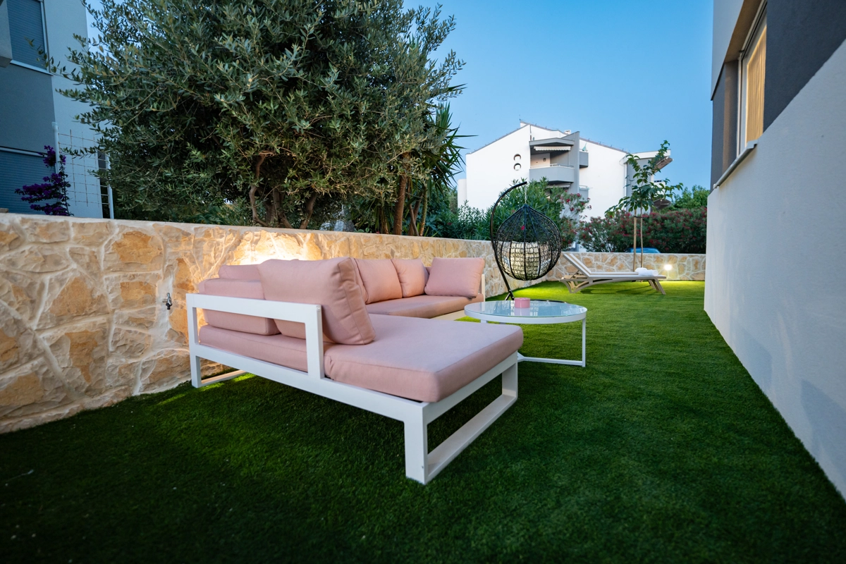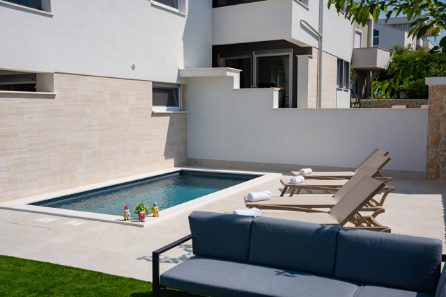Willkommen in brandneuen, luxuriösen Apartment mit zwei Schlafzimmern, privatem Garten und Pool – der perfekte Ort für einen stilvollen und erholsamen Urlaub.