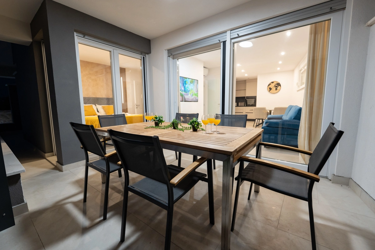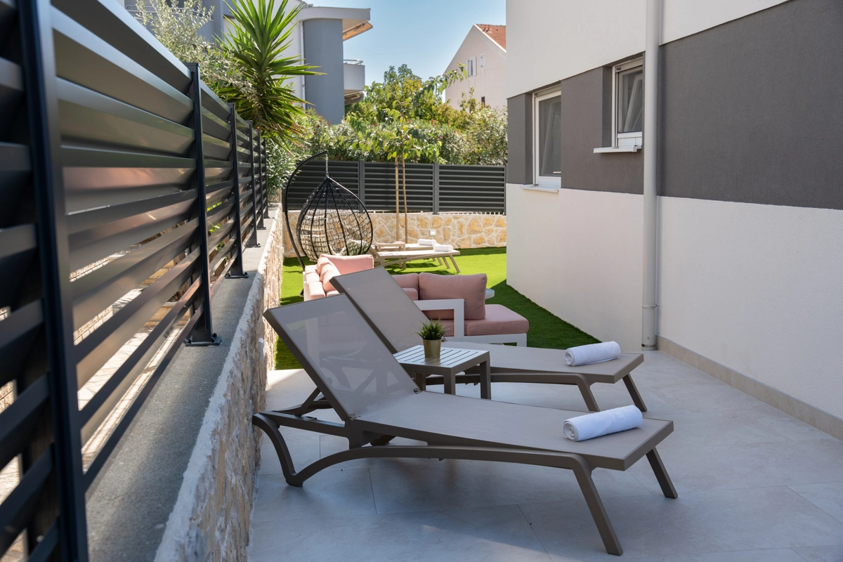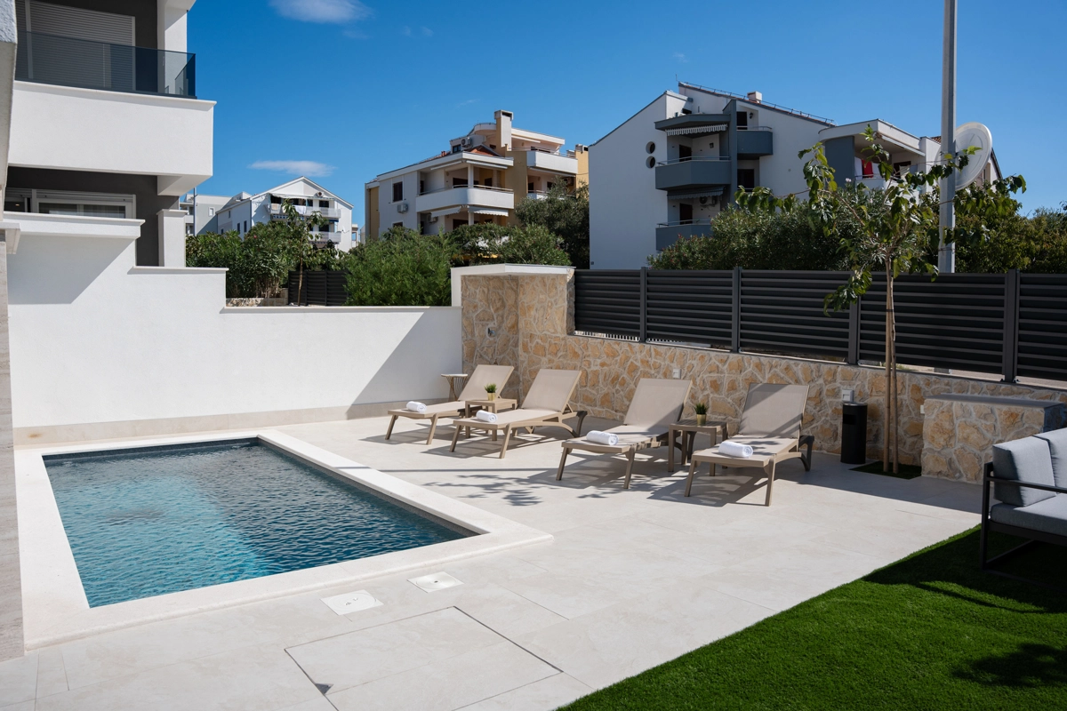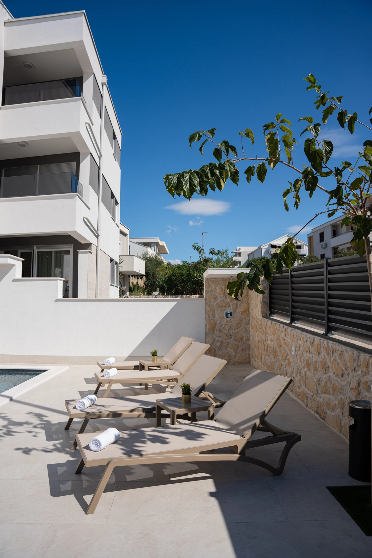Willkommen in brandneuen, luxuriösen Apartment mit zwei Schlafzimmern, privatem Garten und Pool – der perfekte Ort für einen stilvollen und erholsamen Urlaub.