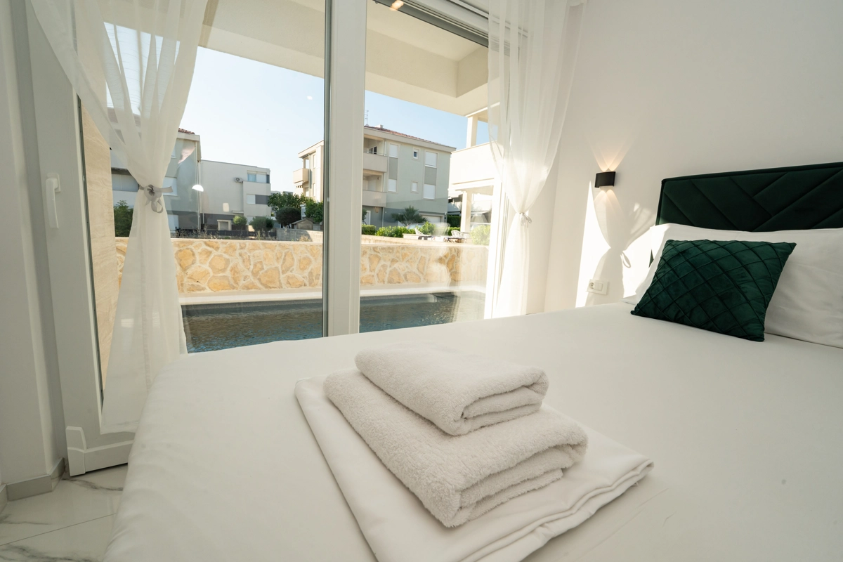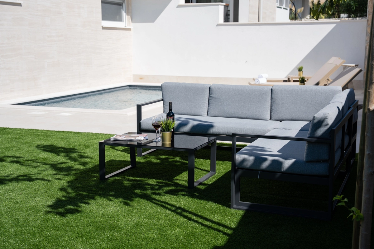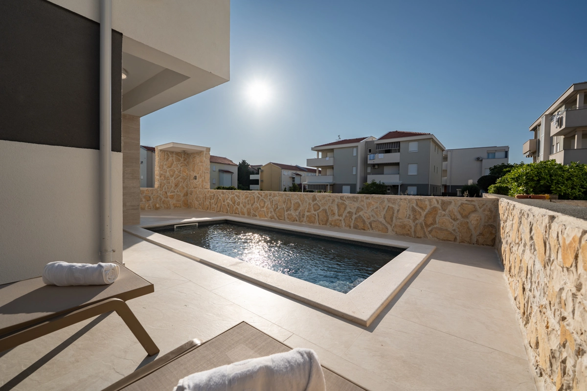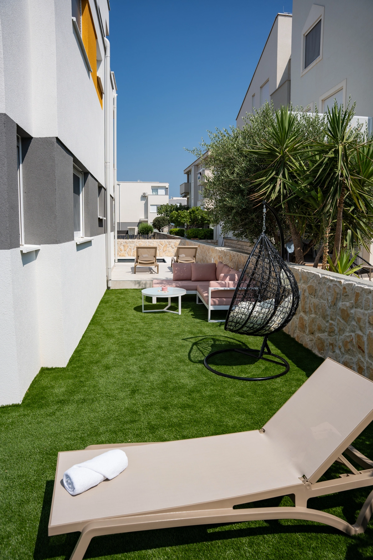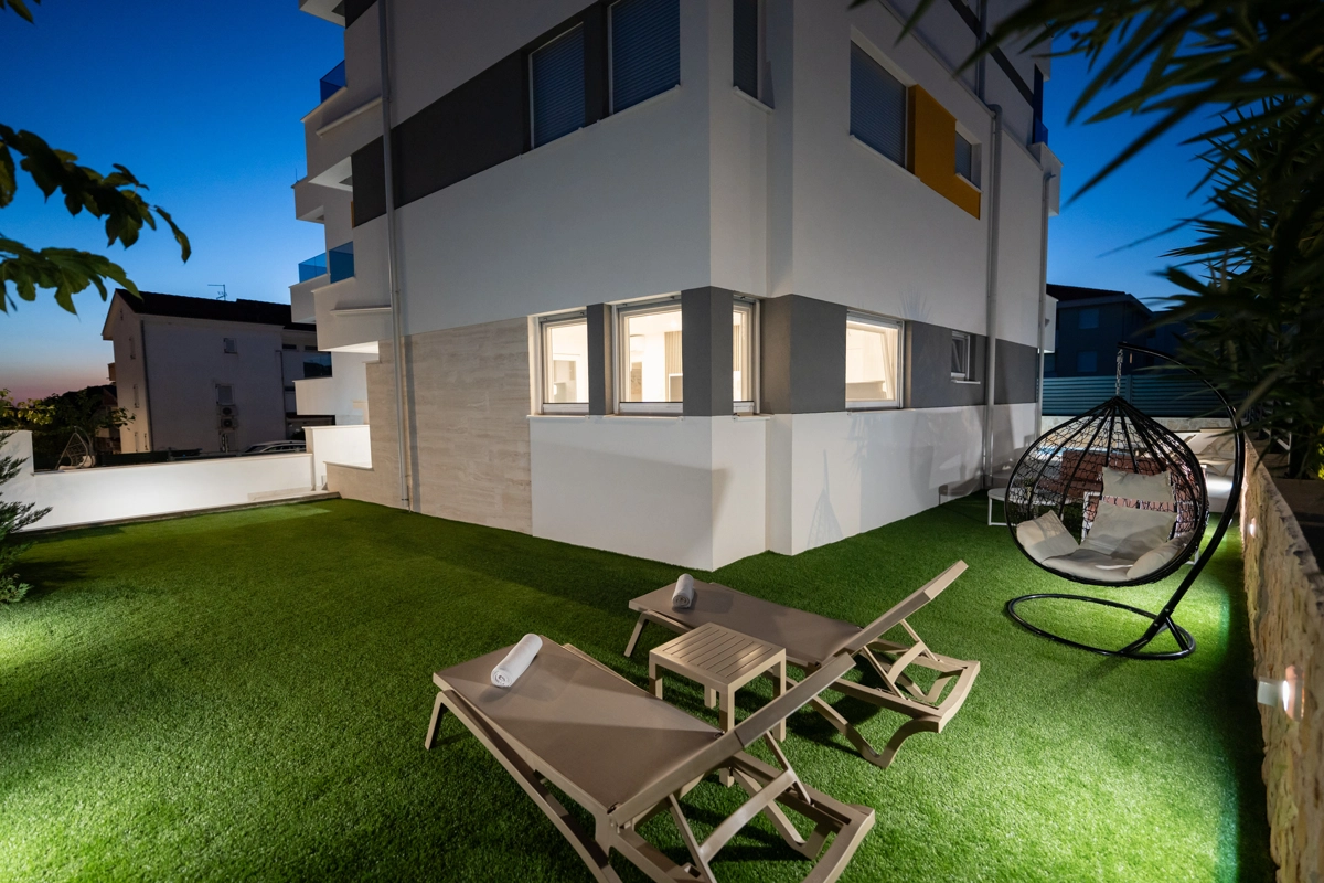 Willkommen in brandneuen, luxuriösen Apartment mit zwei Schlafzimmern, privatem Garten und Pool – der perfekte Ort für einen stilvollen und erholsamen Urlaub.