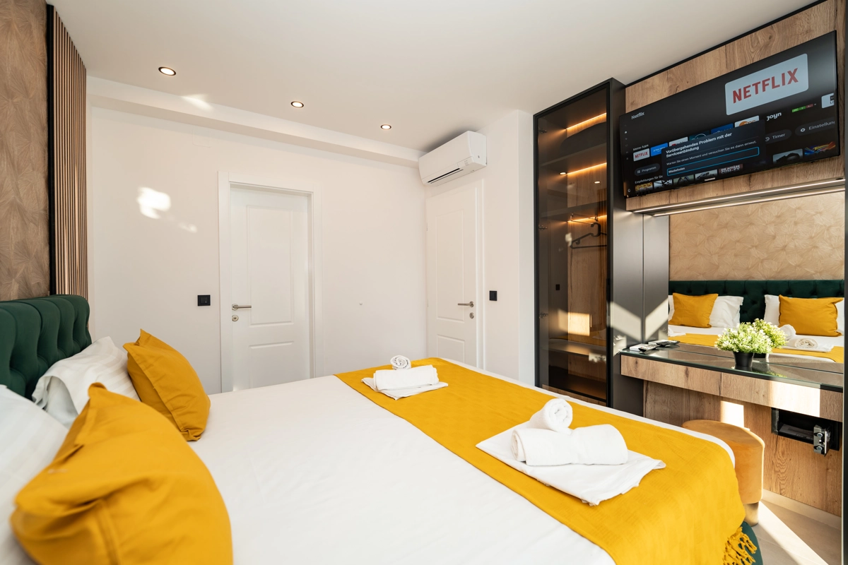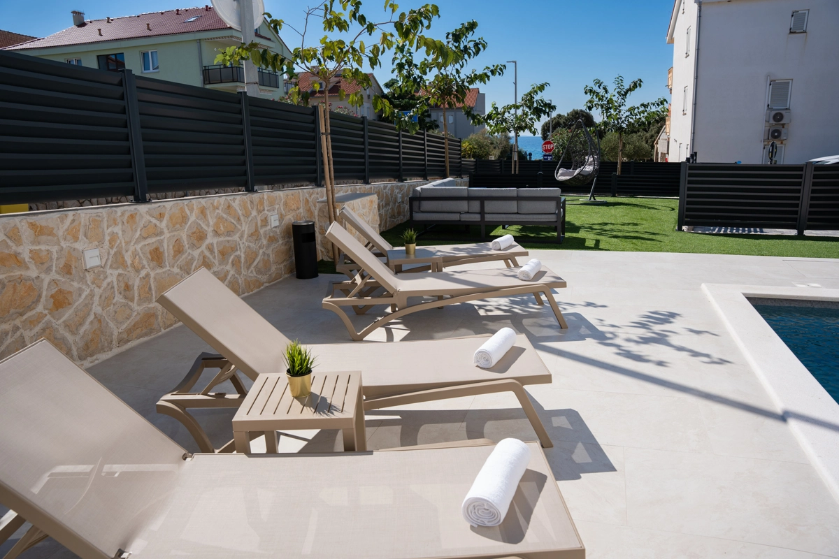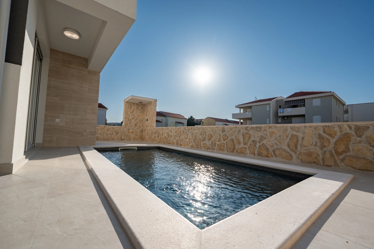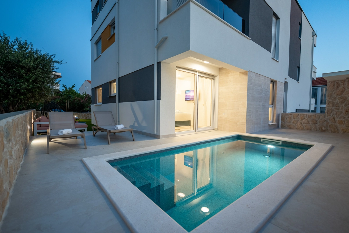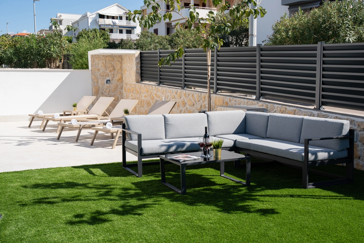 Willkommen in brandneuen, luxuriösen Apartment mit zwei Schlafzimmern, privatem Garten und Pool – der perfekte Ort für einen stilvollen und erholsamen Urlaub.