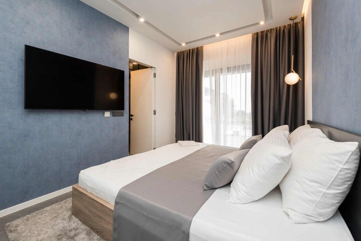 Luxus mit einem großen L ist das, wofür die Villa Aria steht. Diese neu gebaute Villa verfügt über einen privaten Pool, eine Sauna, einen Whirlpool auf dem Dach und ein Fitnessstudio und wurde nach höchsten Standards und Komfort entworfen und eingerichtet.