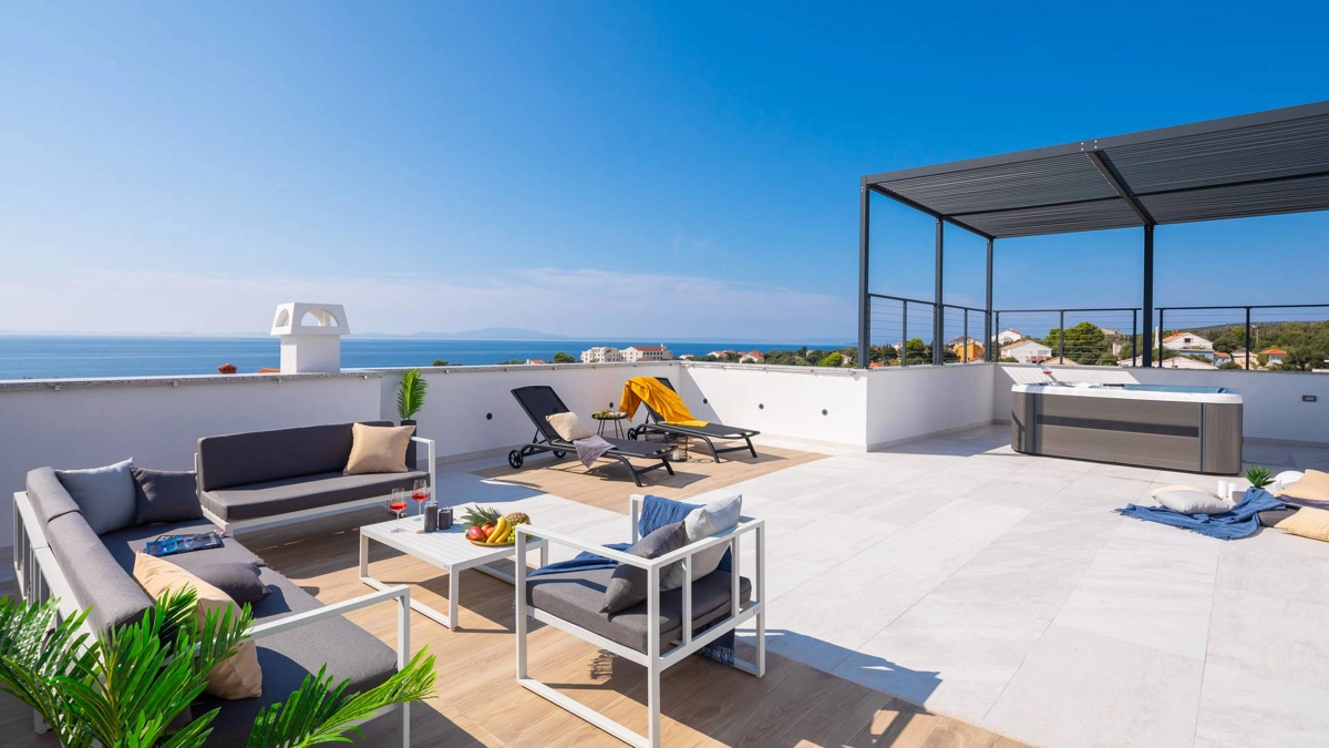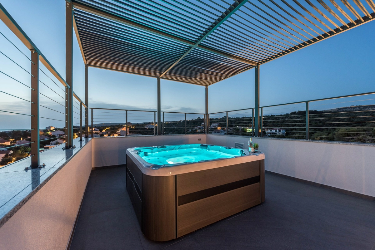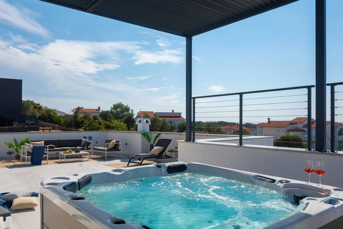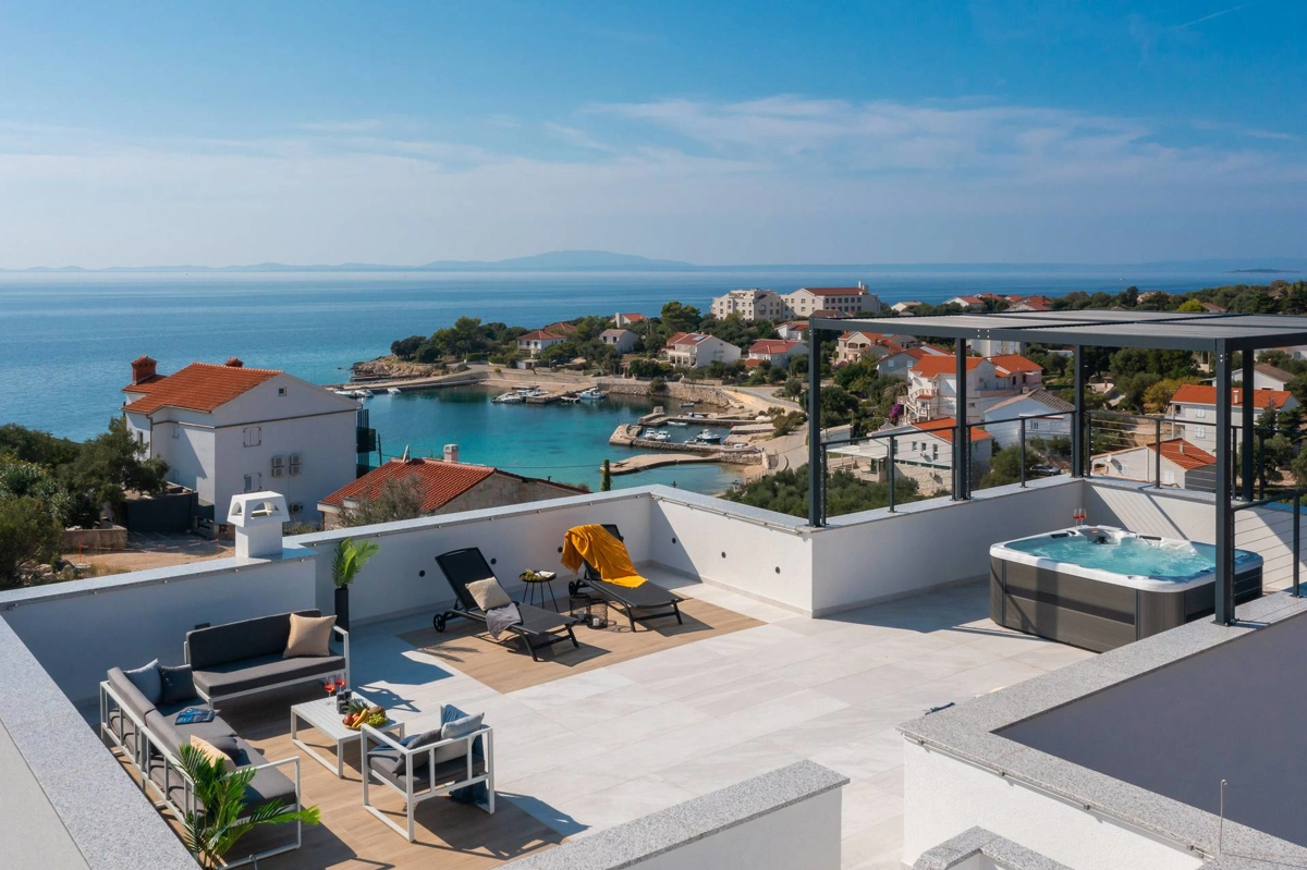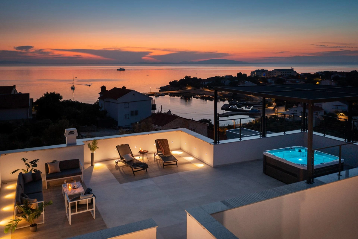 Dieses versteckte Refugium ist 14 km von Novalja entfernt, aber nur 100 m von wunderschönen Stränden, ausgezeichneten lokalen Restaurants und Lebensmittelgeschäften entfernt. Die Villa verfügt über einen Whirlpool auf der Dachterrasse, einen idealen Ort, um den Sonnenuntergang zu beobachten. Darüber hinaus verfügt sie über einen Kamin, einen kleinen Kinderspielplatz und einen Außenbereich zum Essen mit Grill, damit Sie typisch kroatische Gerichte mit Freunden und/oder Familie genießen können. Die Gäste haben Tischtennis, Tischfußball, Fußballtore und ein Paddle-Board zur Verfügung, während Sie drinnen in der Villa die PS4 nutzen oder Karaoke singen können. Der Wohnbereich mit insgesamt 330m2 ist ausgestattet, um alle Ihre Bedürfnisse zu erfüllen. Voll klimatisiert und beheizt mit Fußbodenheizung, ausgestattet mit 4 Schlafzimmern mit eigenem Bad, einem zusätzlichen Bad mit Waschmaschine und Trockner, einer voll ausgestatteten Küche, einem Essbereich und einem modernen Wohnzimmer, wird Ihnen diese Villa nichts zu wünschen übrig lassen.