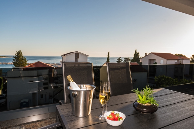Alle Apartments sind luxuriös ausgestattet und bieten einen Meerblick. Der offene Wohnbereich mit Küche, Essbereich und Wohnzimmer hat einen direkten Zugang zur Terrasse. Die Schlafzimmer sind mit einem TV, eigener Klimaanlage ausgestattet und alle Apartments verfügen über 2 Badezimmer, einige mit zusätzlicher Toilette.