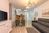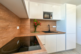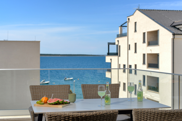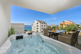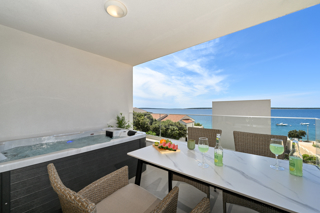 Moderan apartman na prvom katu u Mandrama ima privatnu terasu s djelomičnim pogledom na more i vlastiti jacuzzi, idealan za opuštanje na otvorenom. Unutrašnjost uključuje moderno namješten dnevni boravak s kuhinjom i blagovaonicom, jednu udobnu spavaću sobu i moderno uređenu kupaonicu. Plaža je na samo nekoliko minuta hoda, što ovo čini savršenim izborom za miran odmor na otoku.