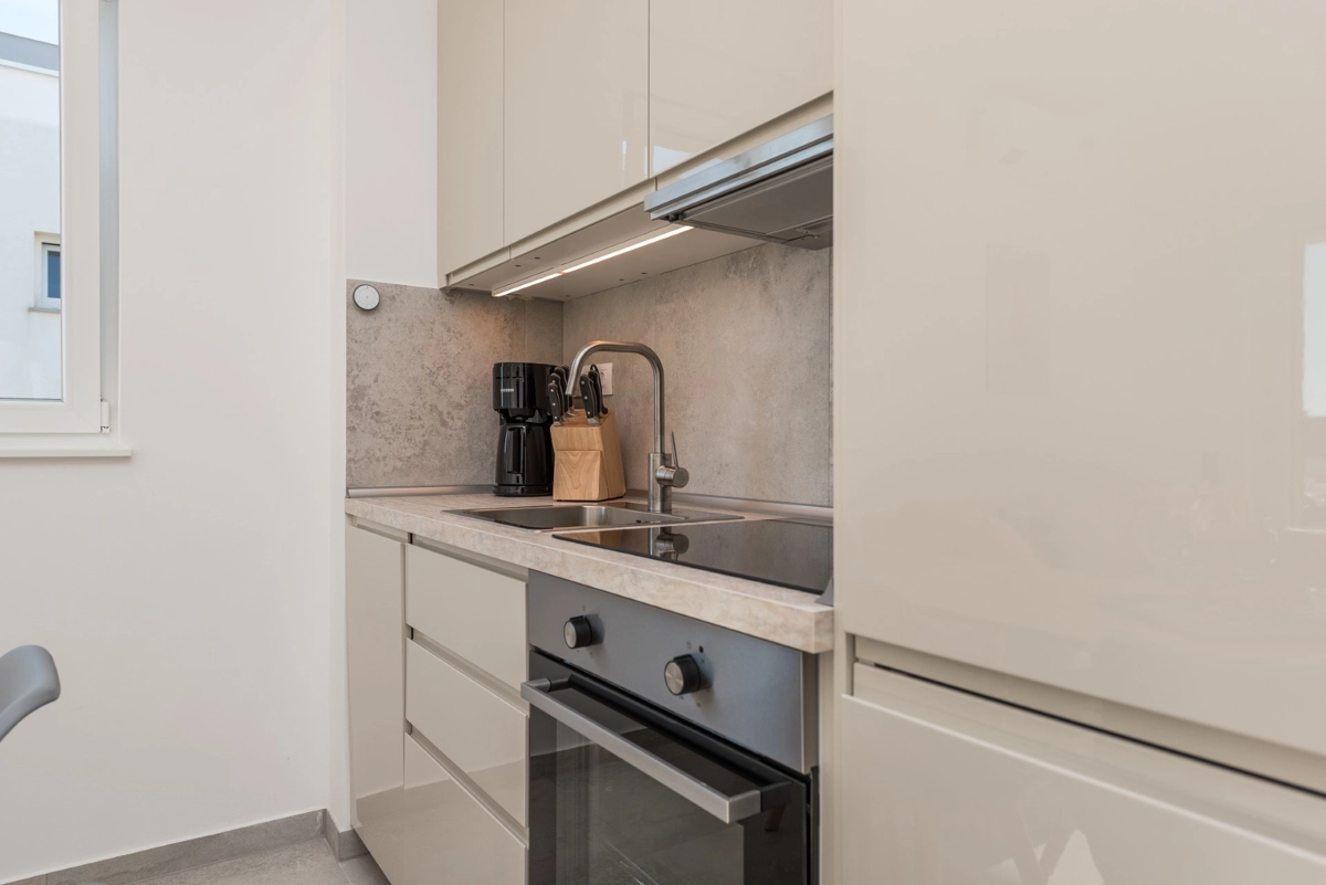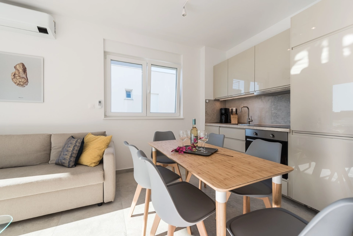 Svaki apartman nudi potpuno opremljene kuhinje, dnevne boravke, kupaonice i dizajnerski namještene sobe. Pješčana plaža Babe udaljena je samo 10 minuta hoda, a autobusna stanica do plaže Zrće u neposrednoj je blizini.