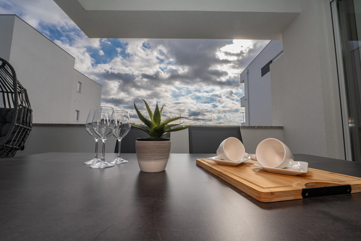 Uživajte u boravku u prostranom dvosobnom apartmanu koji ima privatni bazen i miran vrt. Apartman može primiti do 6 osoba te uključuje potpuno opremljenu kuhinju, udoban dnevni boravak i terasu s vrtnom garniturom – idealno mjesto za opuštanje ili objedovanje na otvorenom.