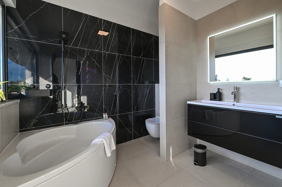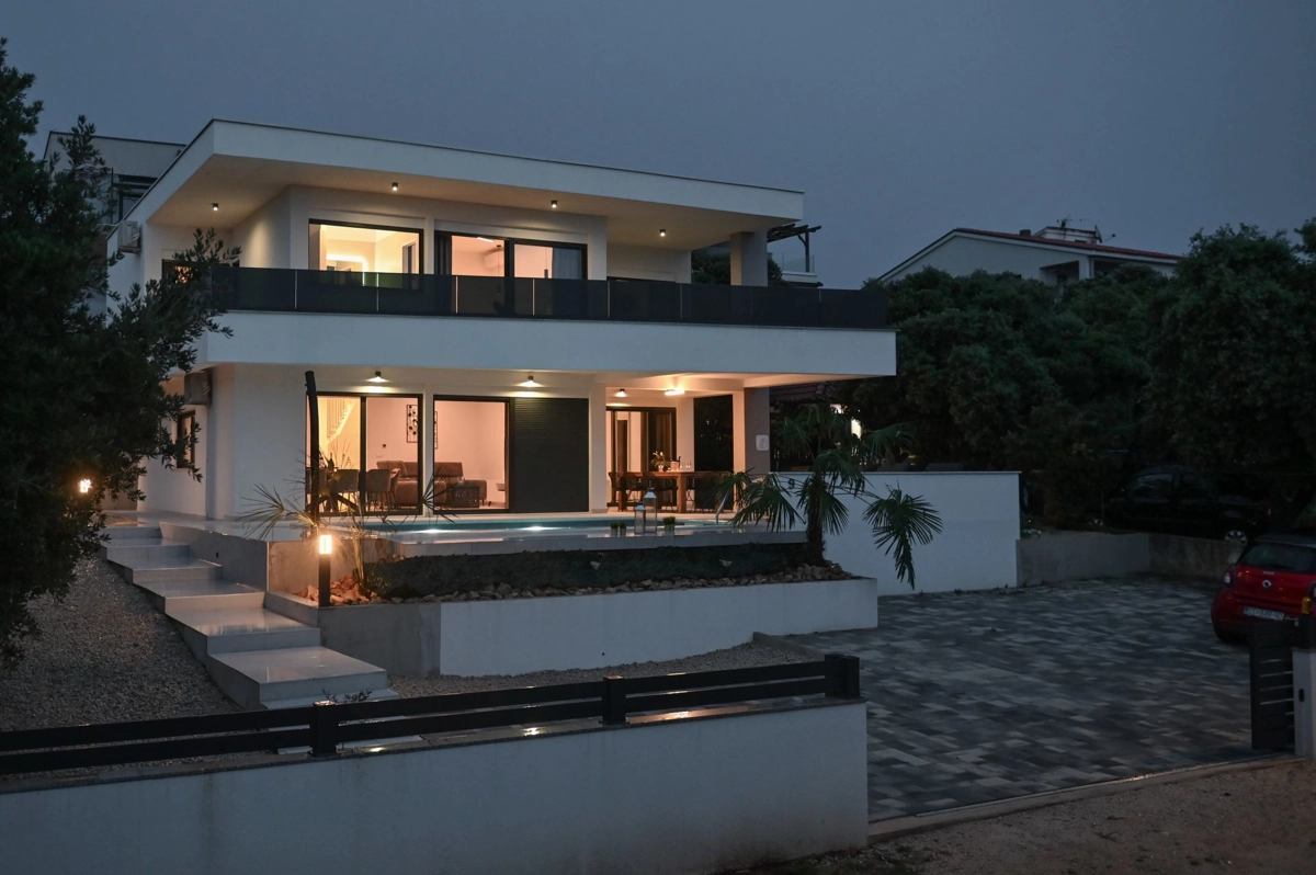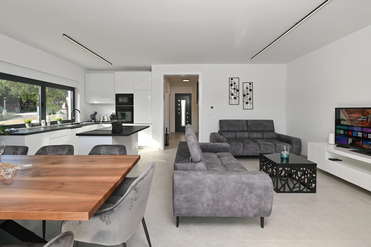 Ova prekrasna vila s četiri spavaće sobe, smještena samo 150 metara od plaže, nudi izvrstan komfor i stil, idealna za obitelji ili grupe koje traže miran bijeg od svakodnevnice.