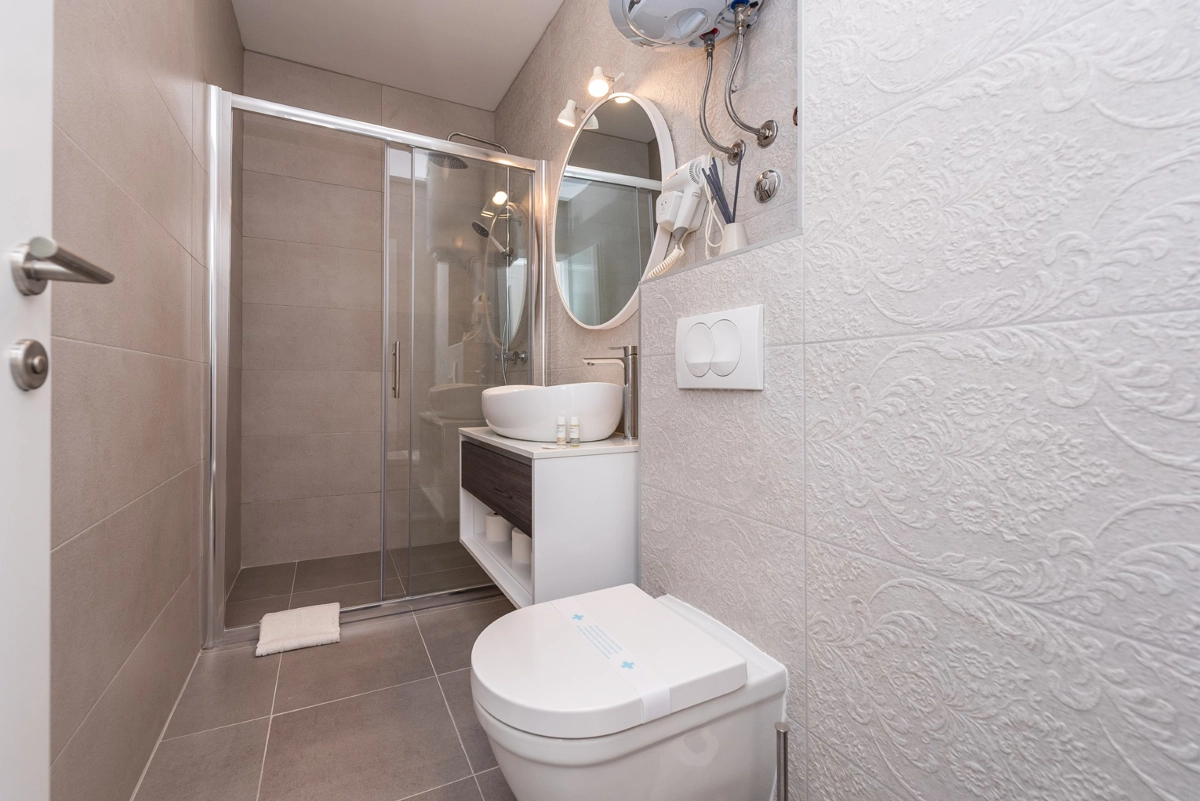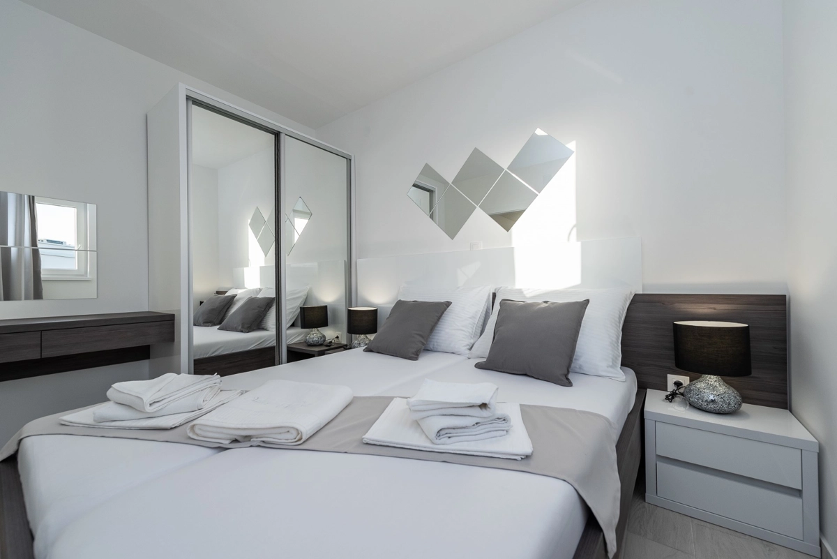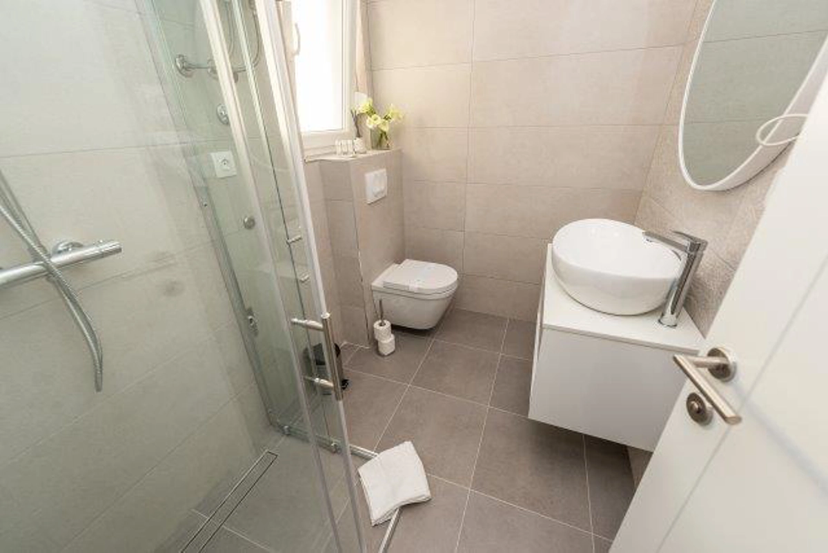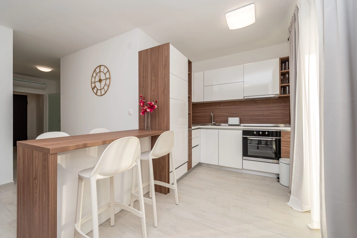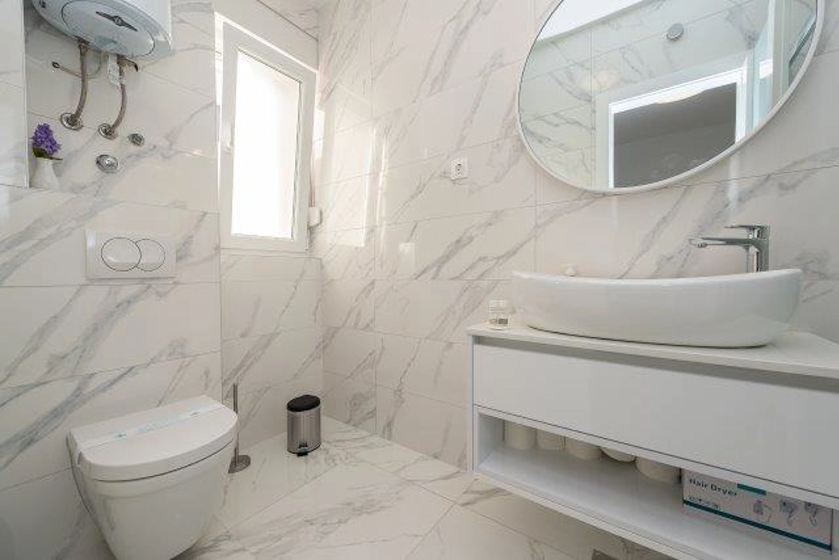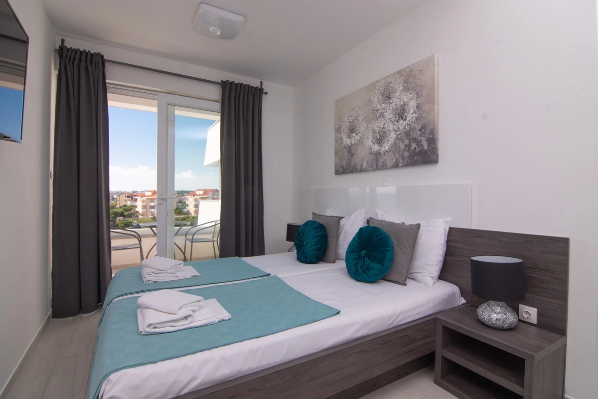 Appartamenti moderni e camere Villa Maris, situati in un'ottima posizione a pochi minuti a piedi dal centro della città, sono completamente arredati per la vostra vacanza di lusso. Ogni unità è progettata per soddisfare le vostre aspettative. Il prezzo comprende ed è a disposizione di ogni ospite: piscina, solarium, parcheggio, Wi-Fi. Gli ospiti possono praticare attività sportive come badminton, calcetto e pallavolo. La posizione già citata è un grande vantaggio perché, sebbene vicina a bar, ristoranti e supermercati, è abbastanza lontana per poter avere pomeriggi tranquilli a bordo piscina e relax al sole.