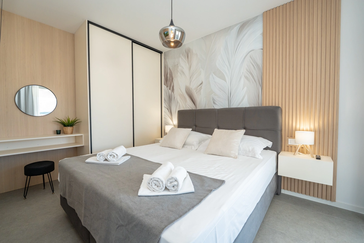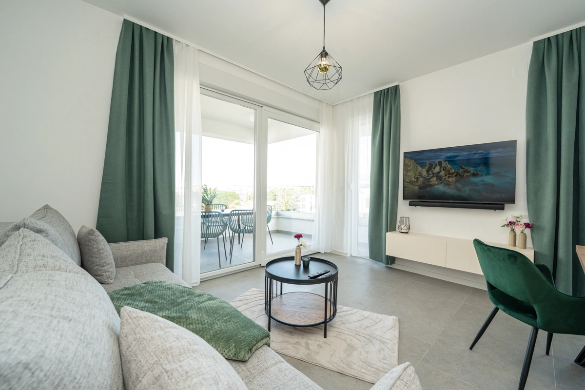 Ogni appartamento offre un perfetto equilibrio armonioso, permettendo agli ospiti di rilassarsi nella propria oasi esterna esclusiva, pur trovandosi a pochi minuti dalla costa baciata dal sole e dal dinamico centro città, anch’esso a pochi minuti dalla residenza.