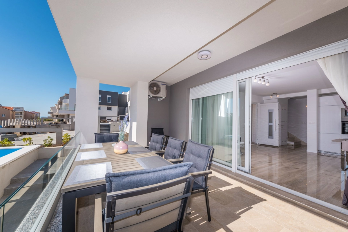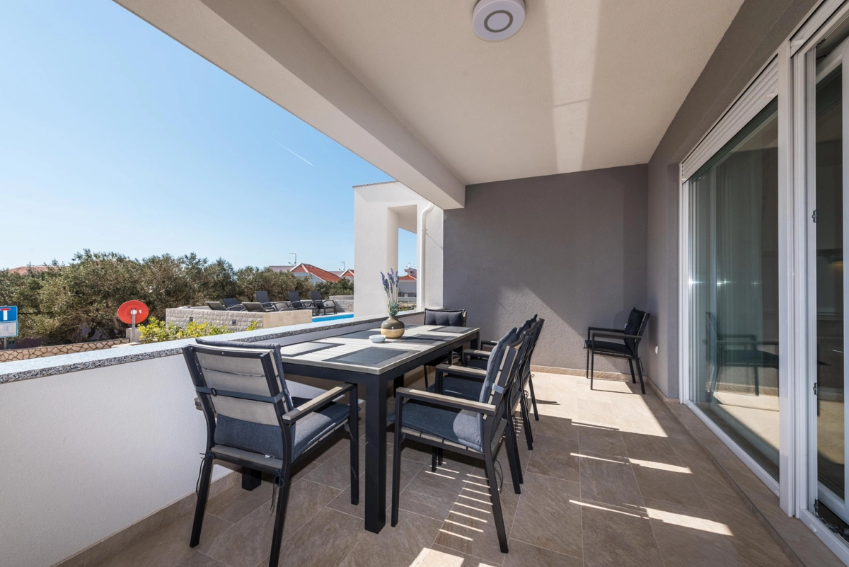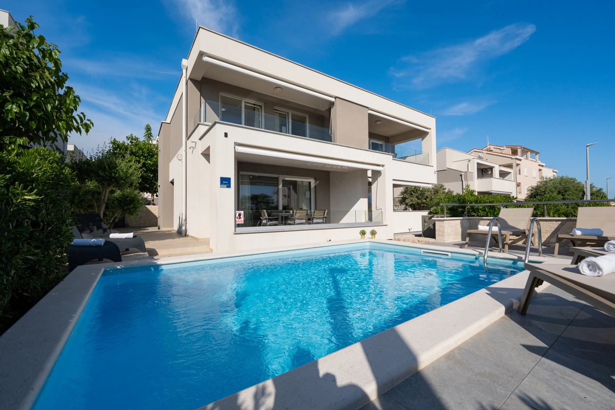 Gli appartamenti di lusso Villa Zora vi offriranno tutto ciò che cercate a Novalja e sono progettati per una vacanza perfetta. Si trovano a 10 minuti a piedi dalla spiaggia, dal centro città e dalla stazione degli autobus per la famosa spiaggia di Zrće. La villa dispone di tre appartamenti ed è fantastica se siete un gruppo più numeroso che gode dell'estate e desidera una certa privacy. Tutti gli appartamenti sono arredati in stile moderno con ampie terrazze e servizi di cui avrete bisogno durante il vostro soggiorno. È un dei pochi alloggi con una piscina riscaldata per aver un top comfort. Vi abbiamo fornito un parcheggio gratuito in loco e la connessione Wi-Fi.