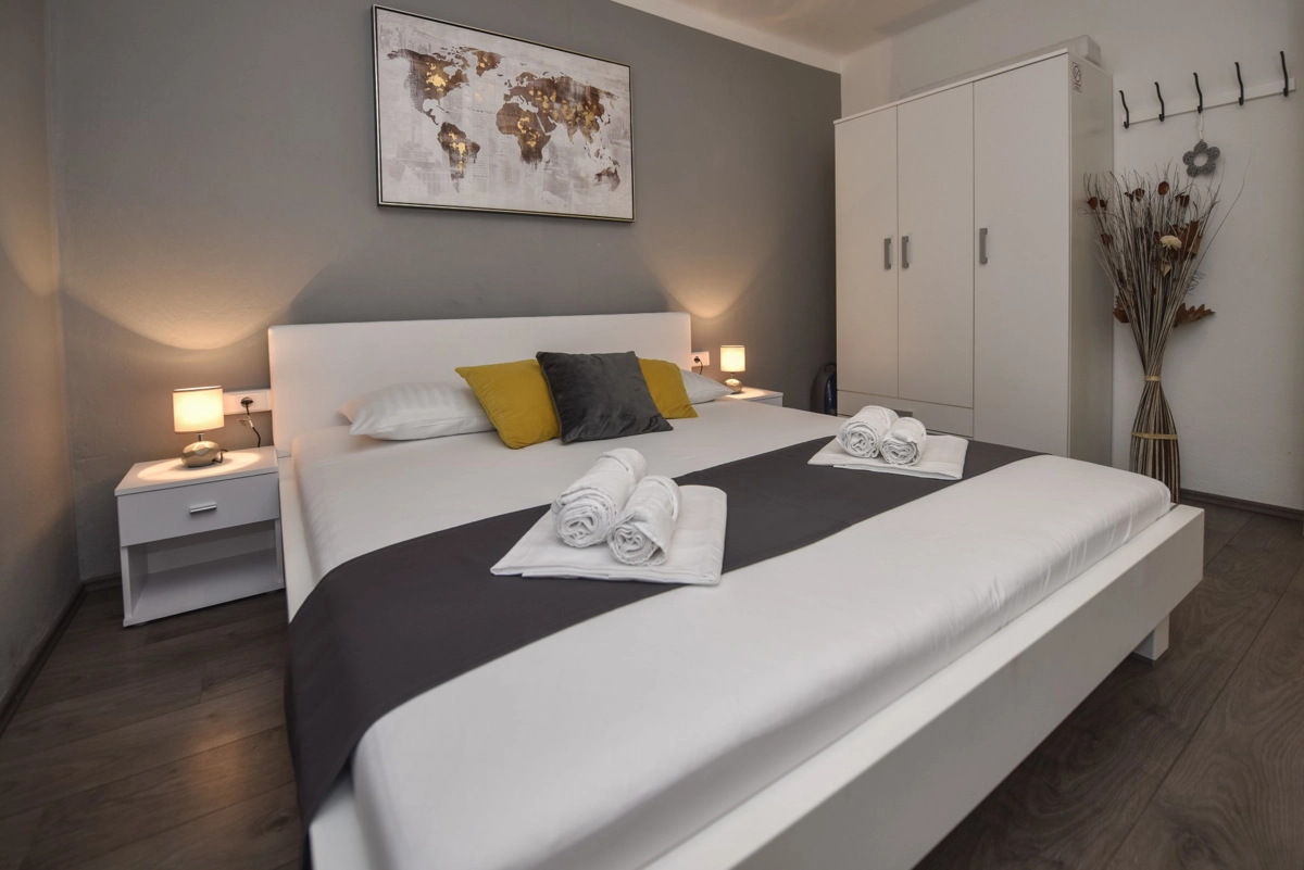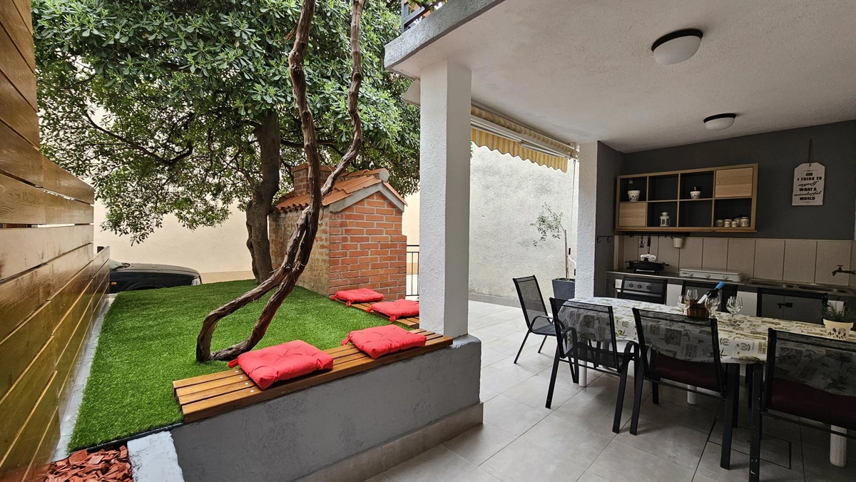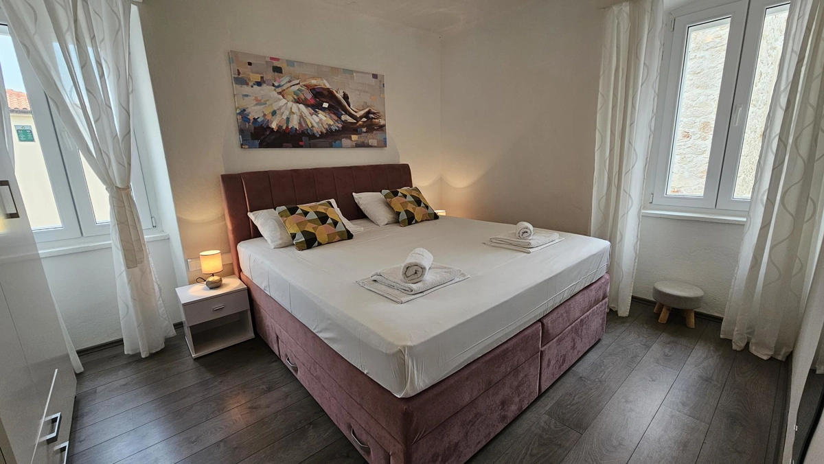 La casa vacanze Klarisa si trova nella parte storica della città. Emana un fascino particolare che può essere fornito solo da edifici originali, un esempio di costruzione tipica mediterranea, ma ristrutturata. Offre sistemazioni moderne che garantiscono un piacevole soggiorno sia in casa che sui terrazzi e giardino con barbecue. Completamente dotata di tre camere da letto, due bagni, due cucine (di cui una estiva) e un soggiorno, è l'ideale per gruppi più numerosi. Il prezzo include parcheggio, Wi-Fi e aria condizionata. La posizione eccellente è un altro vantaggio di questa casa, a pochi passi dalla piazza principale e alla stessa distanza dalla stazione degli autobus per la spiaggia Zrće.