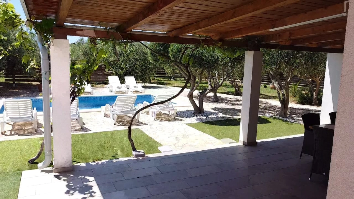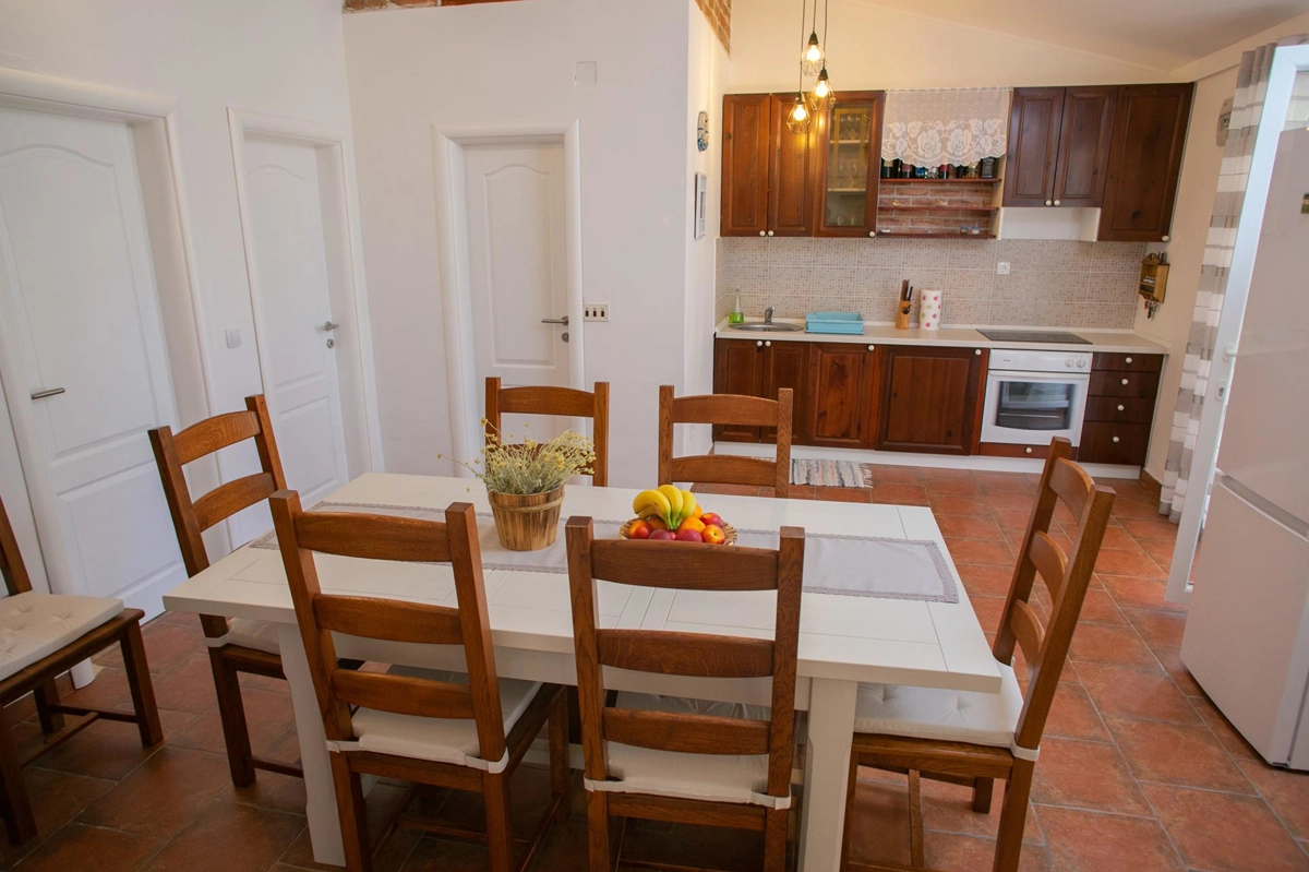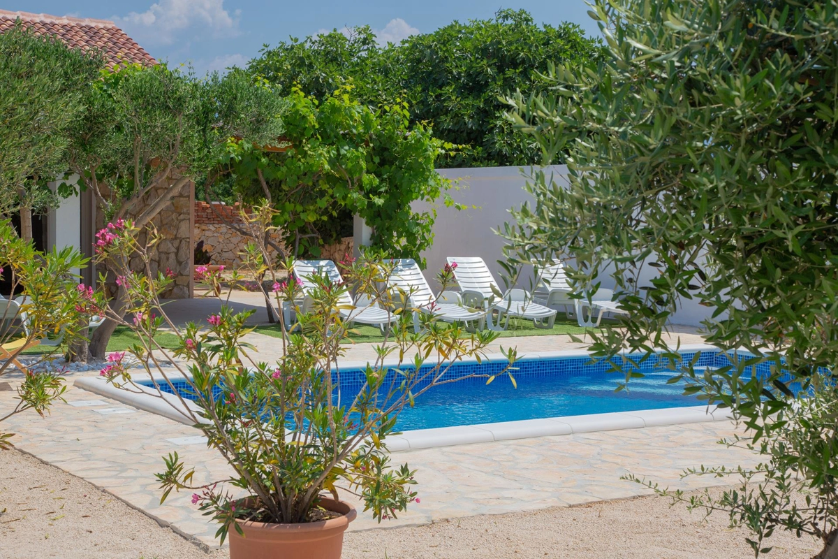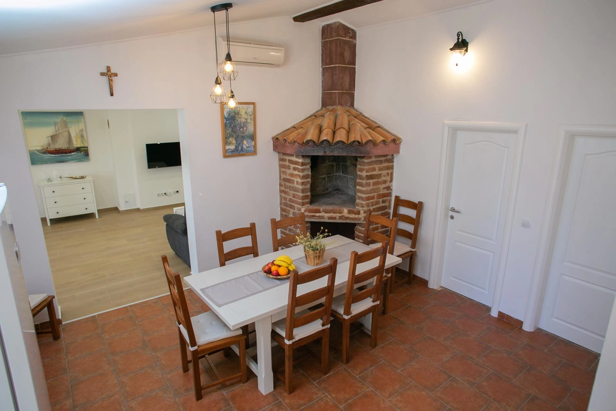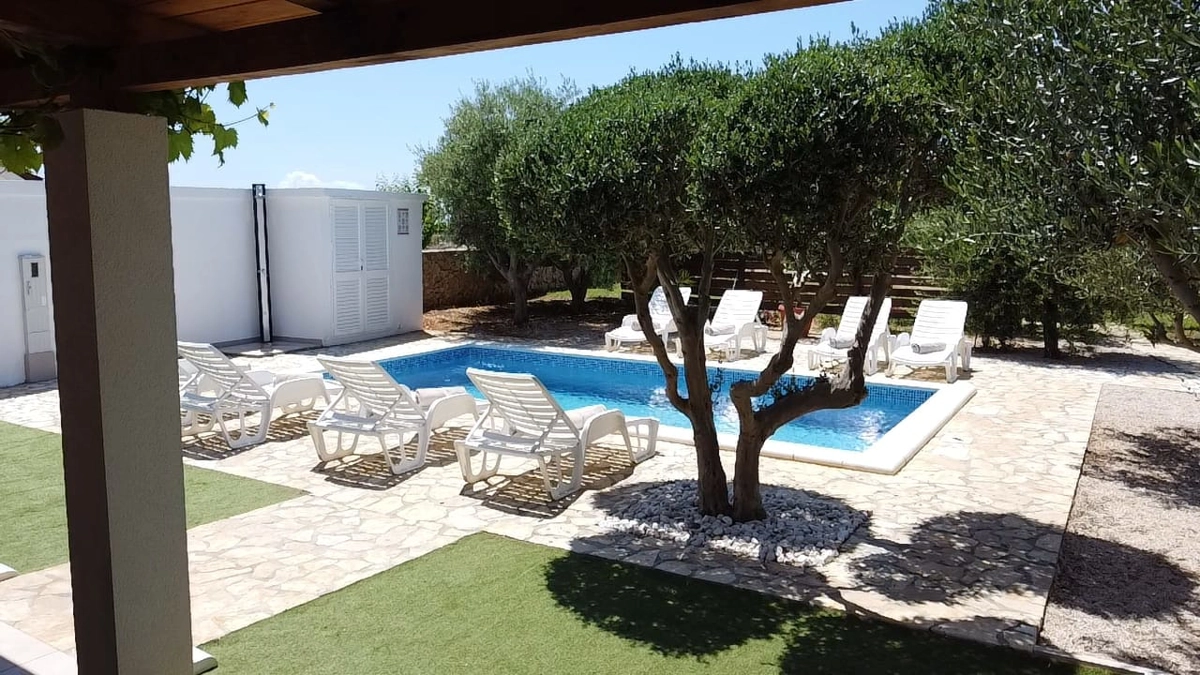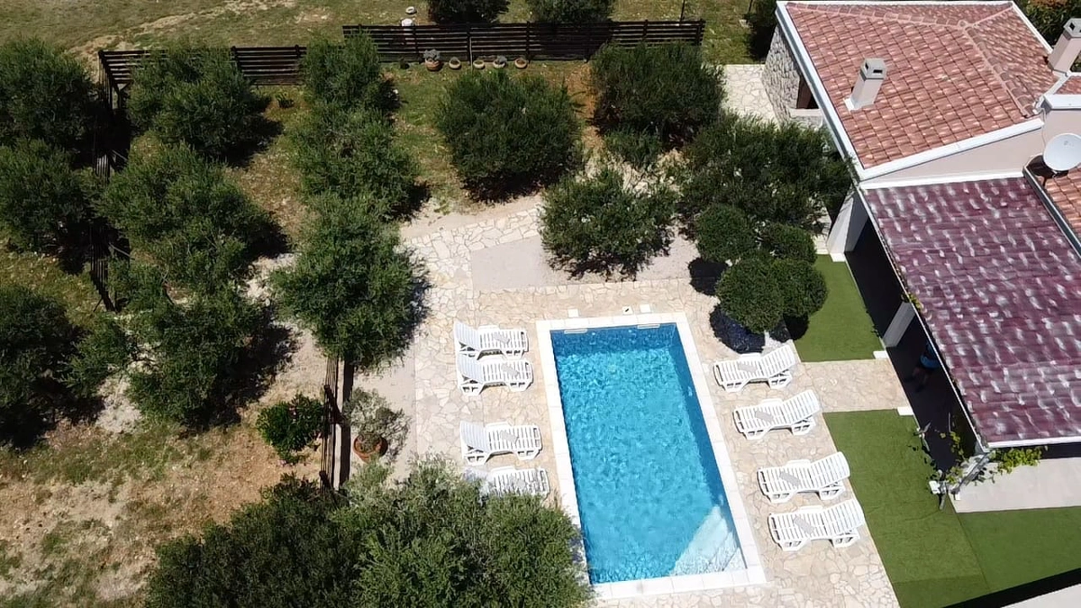 La casa vacanze Tina si trova in un uliveto su un terreno recintato ed è ideale per una vacanza perfetta. La casa dispone di una piscina all'aperto e di un'area prendisole che offre privacy. Ha quattro camere da letto, tre bagni, un soggiorno e può ospitare fino a 10 persone. È una scelta perfetta per un gruppo più grande di amici o familiari. Potrete godervi le calde serate estive con il profumo della grigliata e delle olive.
