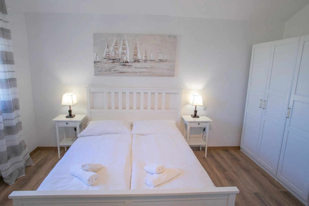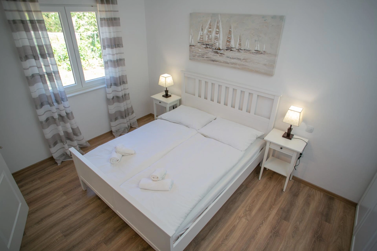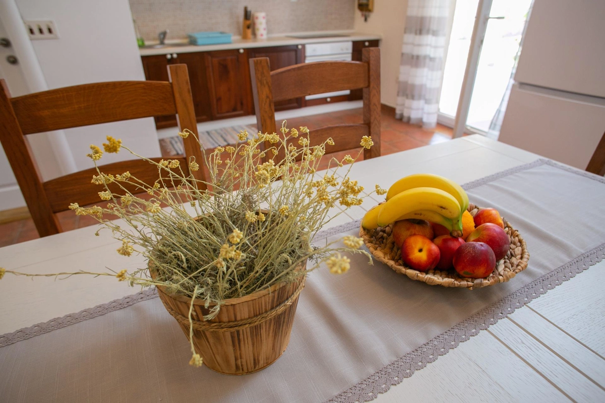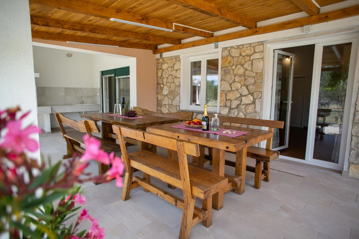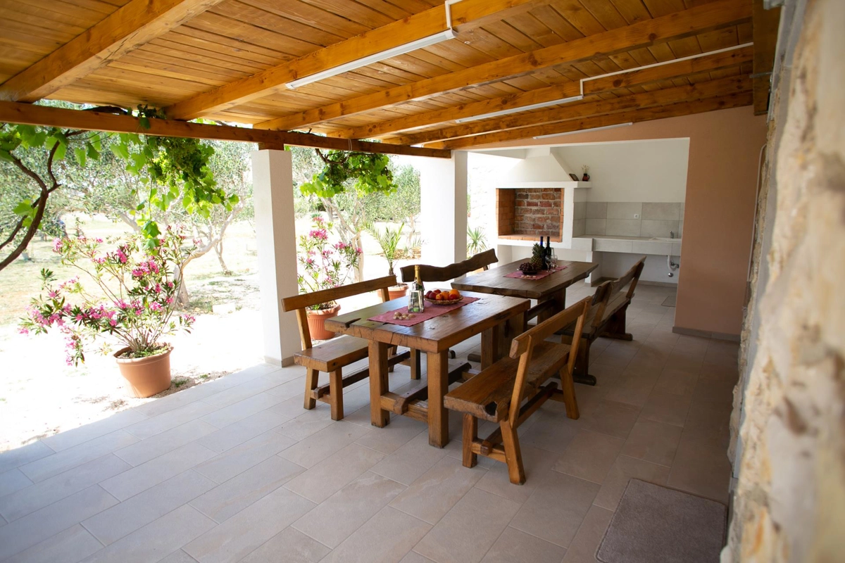 La casa vacanze Tina si trova in un uliveto su un terreno recintato ed è ideale per una vacanza perfetta. La casa dispone di una piscina all'aperto e di un'area prendisole che offre privacy. Ha quattro camere da letto, tre bagni, un soggiorno e può ospitare fino a 10 persone. È una scelta perfetta per un gruppo più grande di amici o familiari. Potrete godervi le calde serate estive con il profumo della grigliata e delle olive.