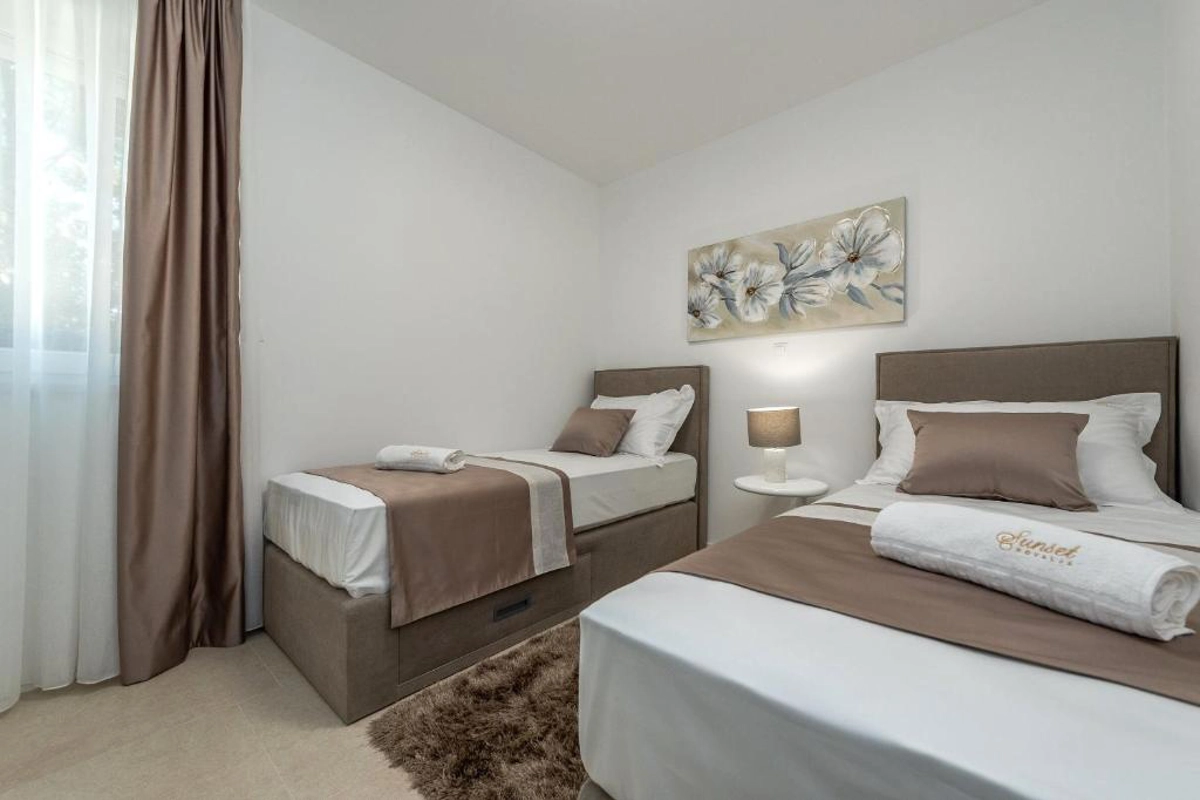 Vantando un giardino, una piscina all'aperto e viste sul mare, il lussuoso appartamento SUNSET con piscina e jacuzzi si trova a Novalja.