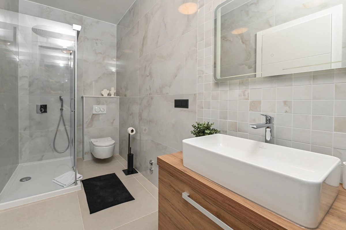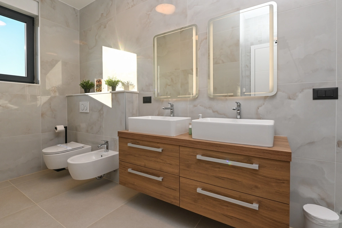 La villa dispone di camere spaziose, ognuna con bagno privato, garantendo privacy e comfort per tutti gli ospiti.
