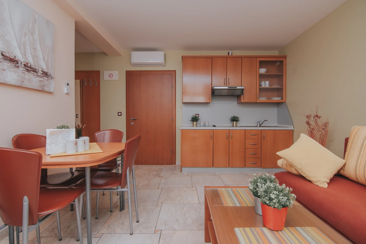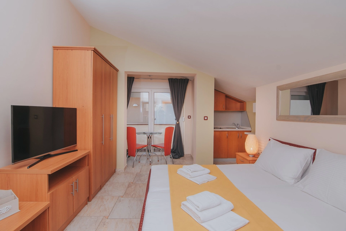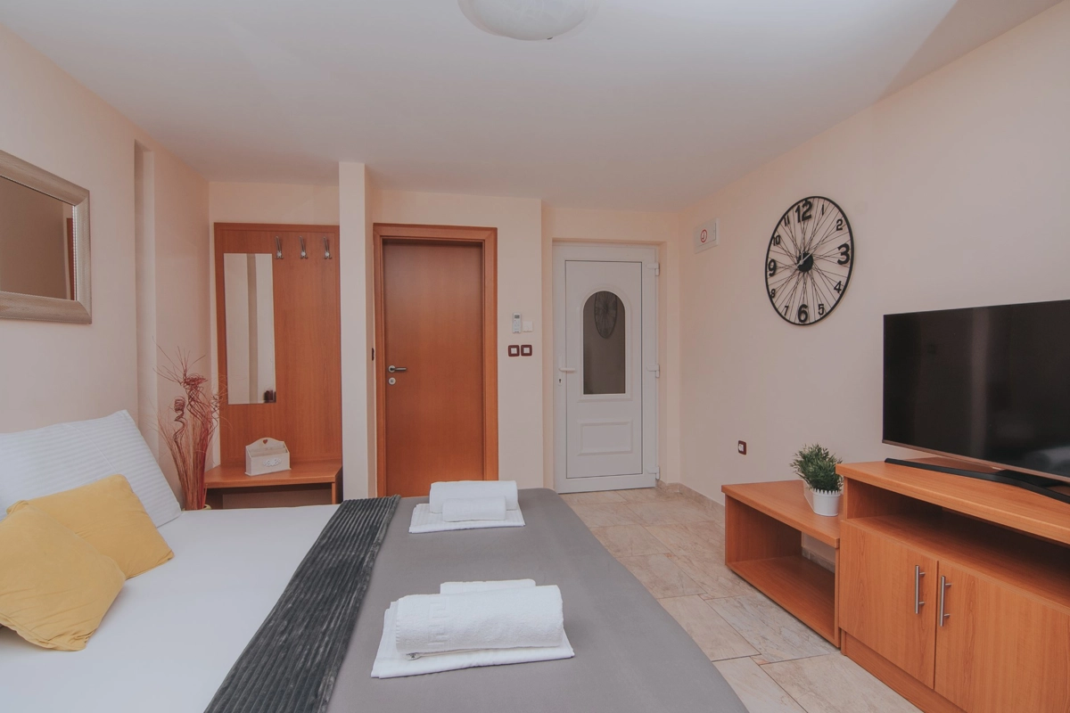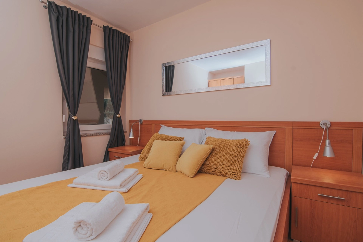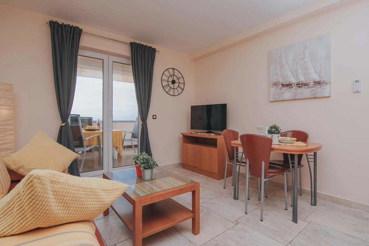 Se state cercando una vacanza al mare di lusso, Tolo è la scelta giusta per voi. Sia che vogliate godervi la fantastica piscina e le sdraio sotto le palme o semplicemente nuotare nel mare. La maggior parte degli appartamenti ha una spaziosa terrazza con una splendida vista sul mare e sulla piscina e tutti sono dotati di tutto ciò di cui avrete bisogno durante le vostre vacanze. Gli appartamenti Tolo si trovano a pochi minuti a piedi, lungo la passeggiata in riva al mare, dal centro città ed a pochi passi dalla stazione degli autobus per la spiaggia Zrće. Il prezzo include parcheggio privato e Wi-Fi.