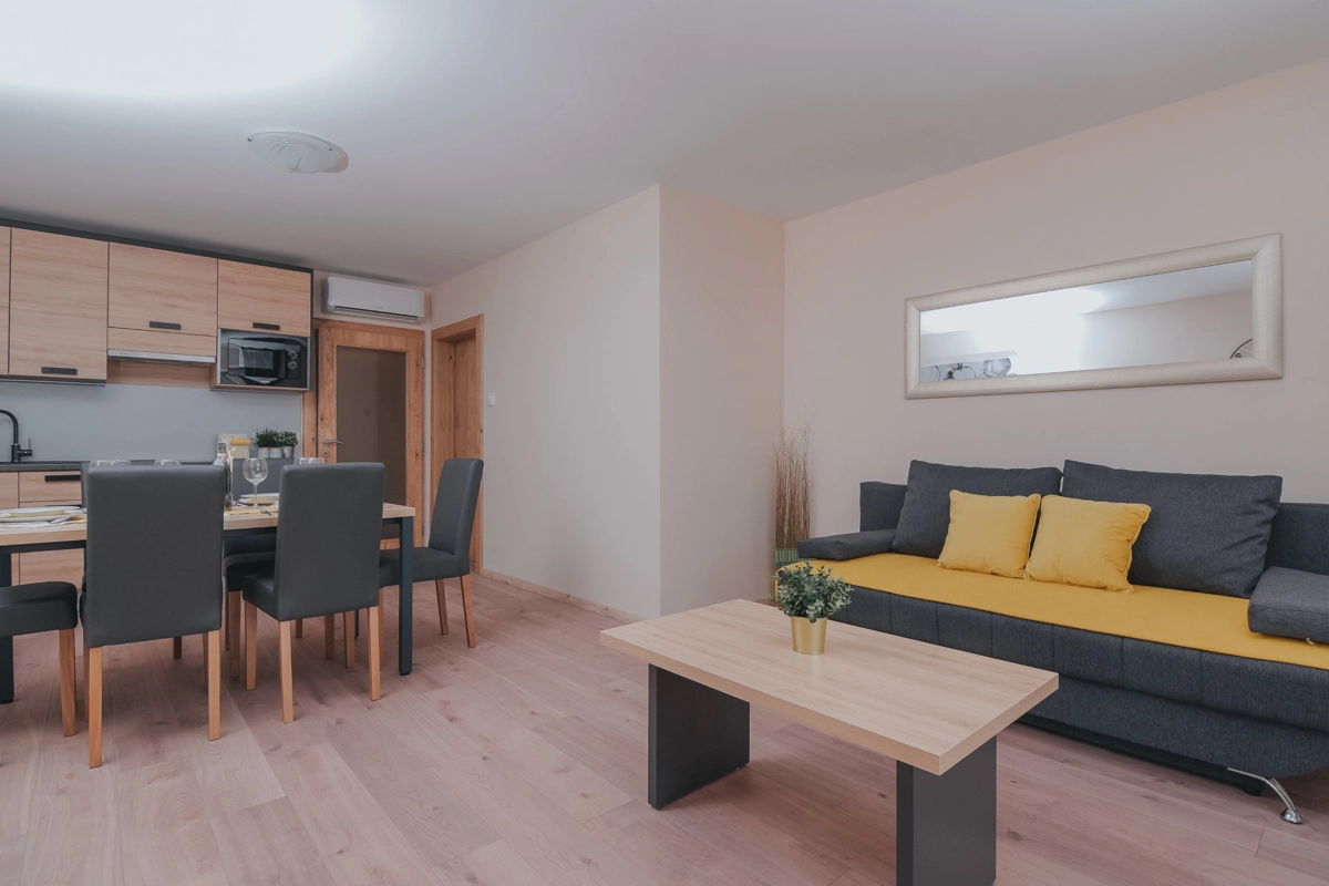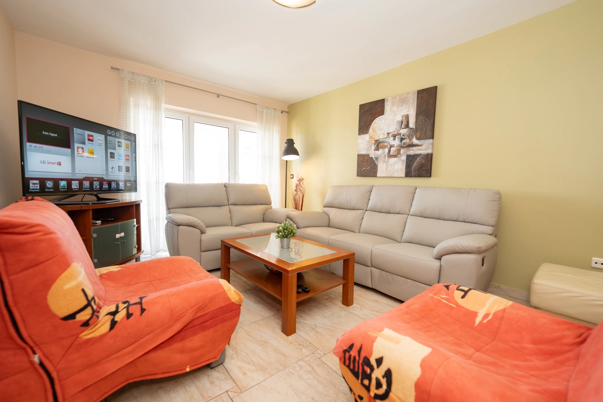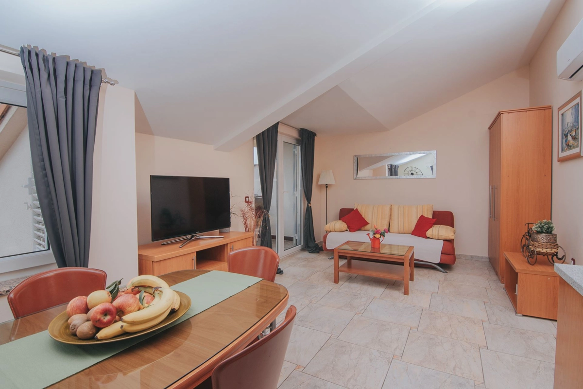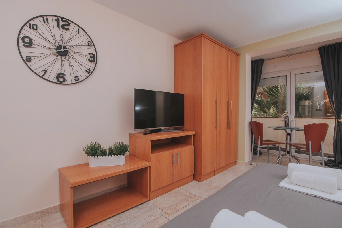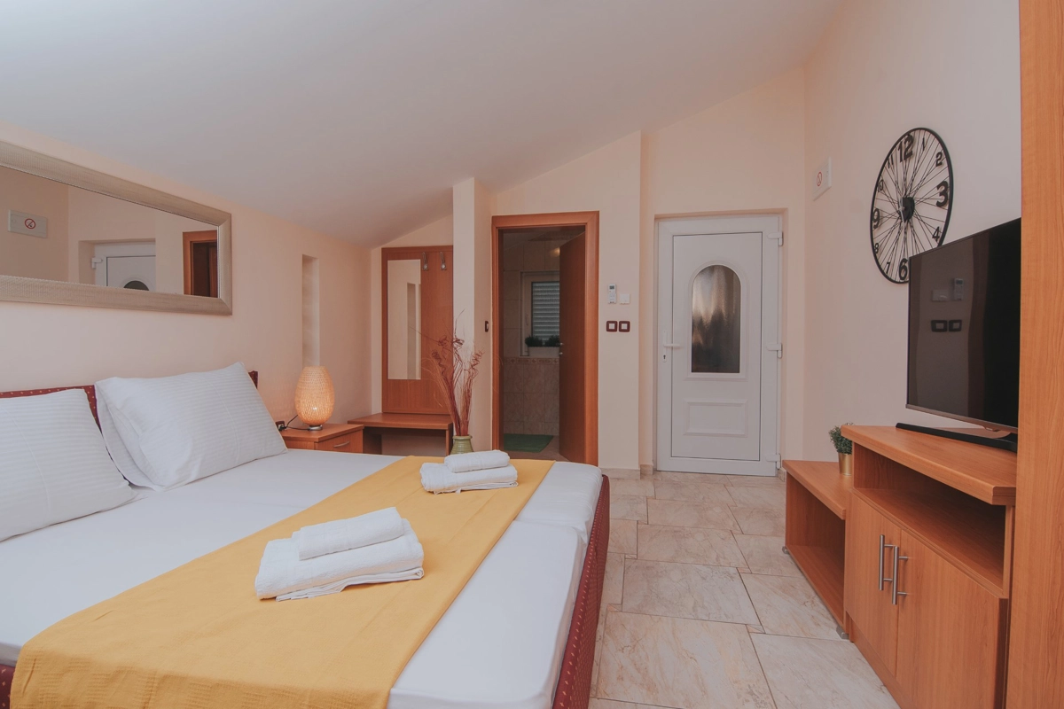 Se state cercando una vacanza al mare di lusso, Tolo è la scelta giusta per voi. Sia che vogliate godervi la fantastica piscina e le sdraio sotto le palme o semplicemente nuotare nel mare. La maggior parte degli appartamenti ha una spaziosa terrazza con una splendida vista sul mare e sulla piscina e tutti sono dotati di tutto ciò di cui avrete bisogno durante le vostre vacanze. Gli appartamenti Tolo si trovano a pochi minuti a piedi, lungo la passeggiata in riva al mare, dal centro città ed a pochi passi dalla stazione degli autobus per la spiaggia Zrće. Il prezzo include parcheggio privato e Wi-Fi.