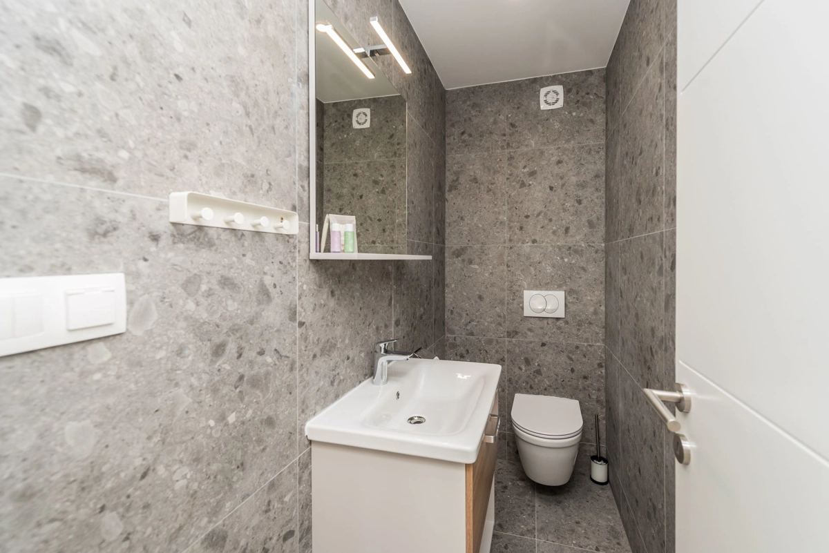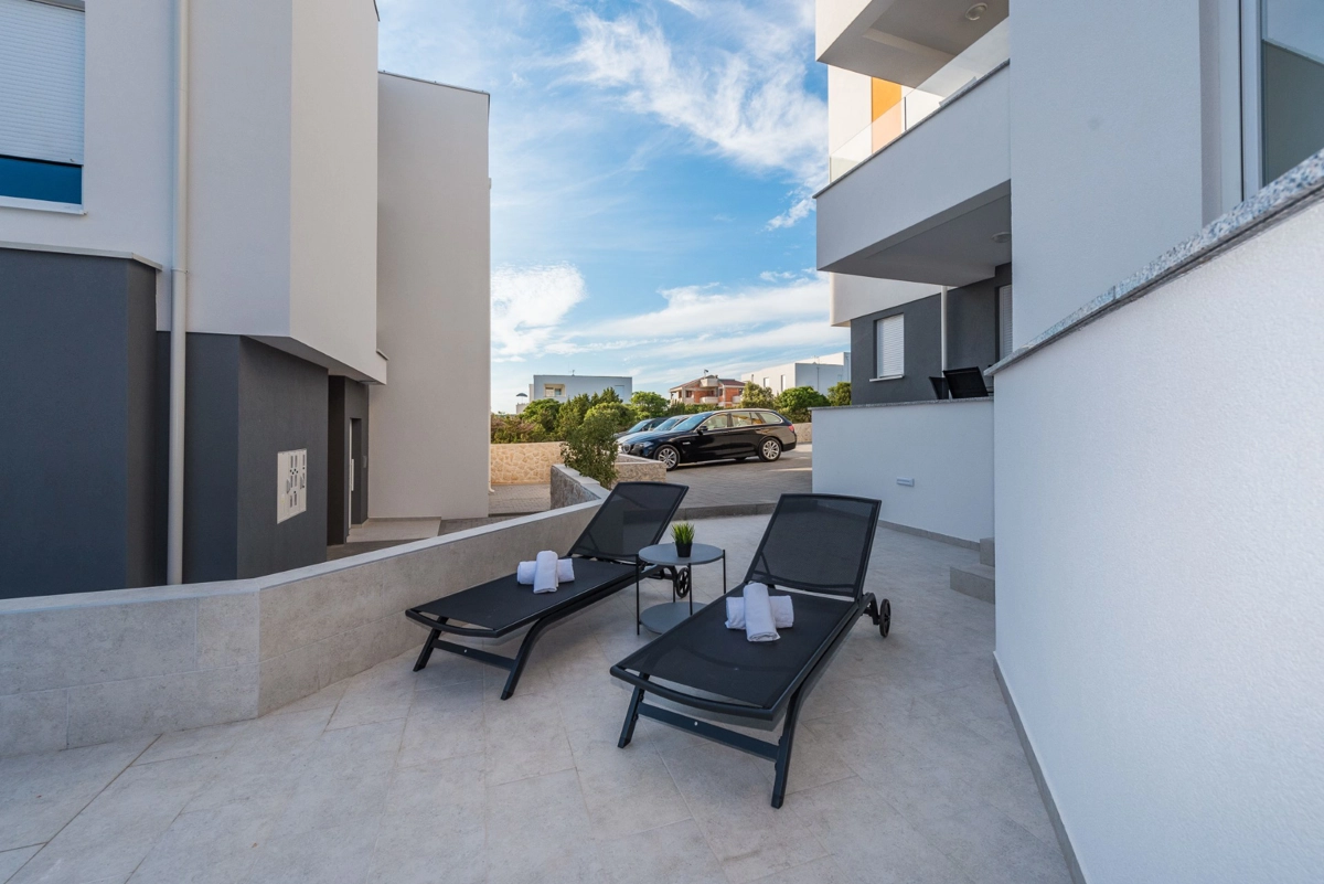New modern apartments. The beach is approx. 500m from a slight hill. A pleasant 15-minute walk to the center.