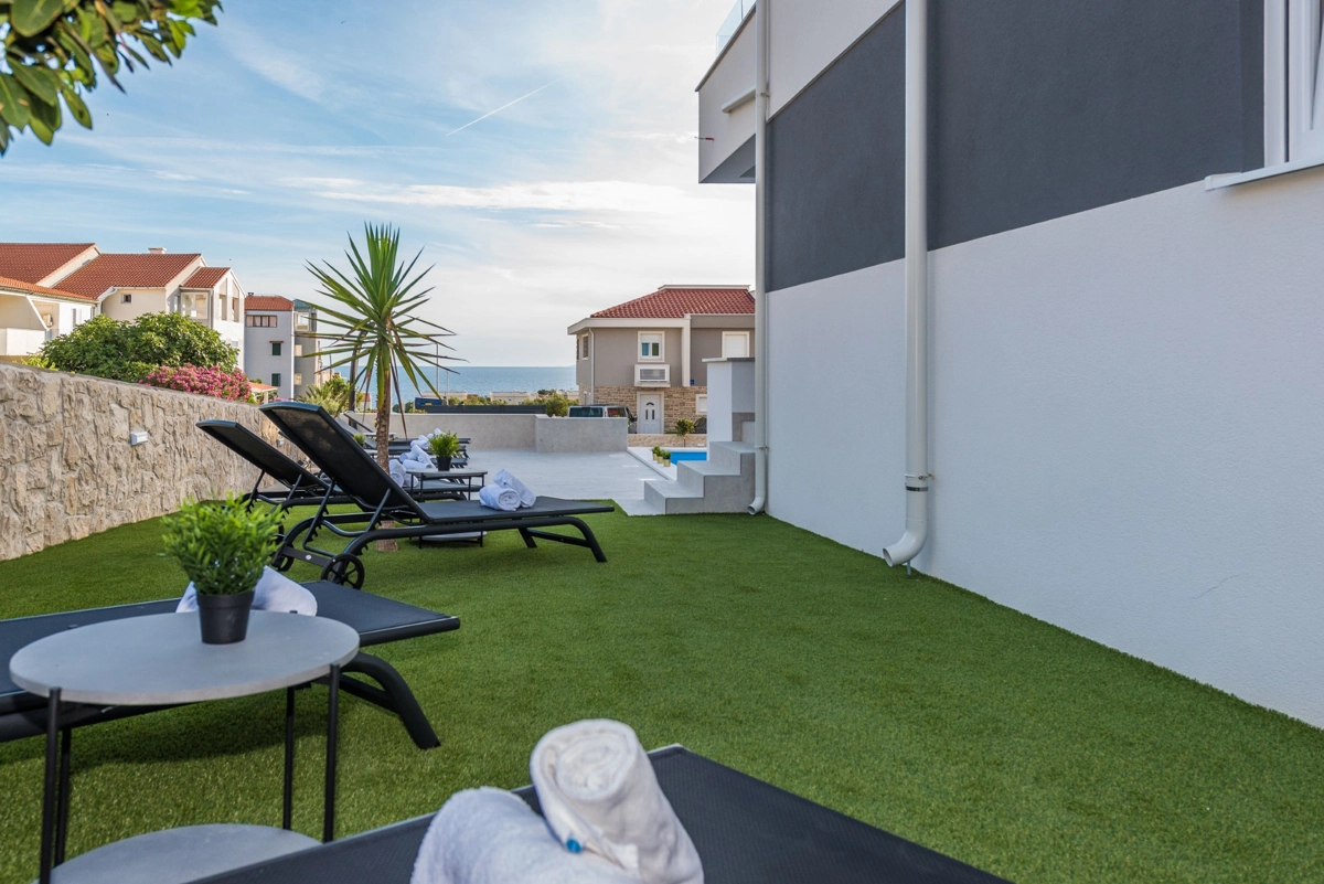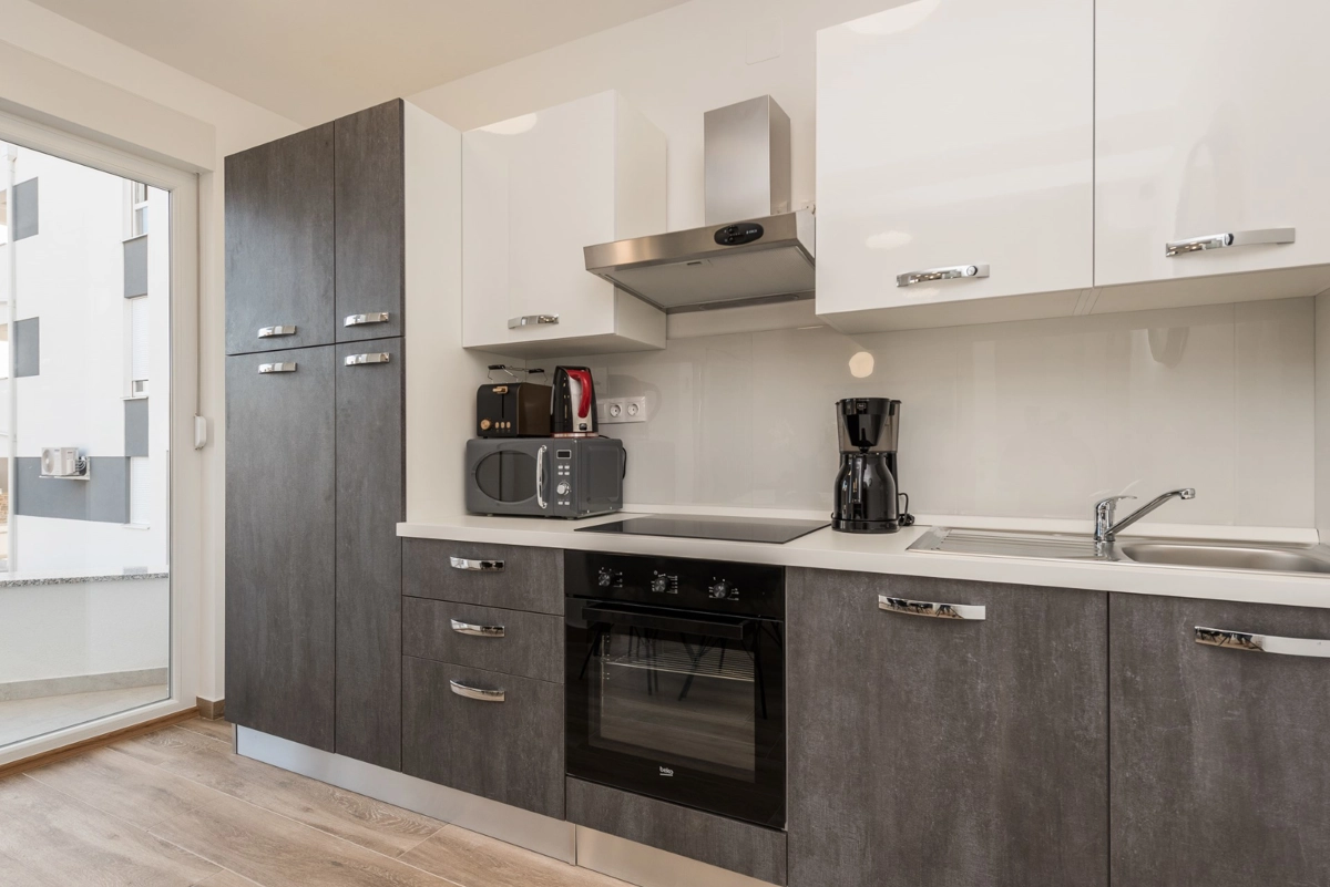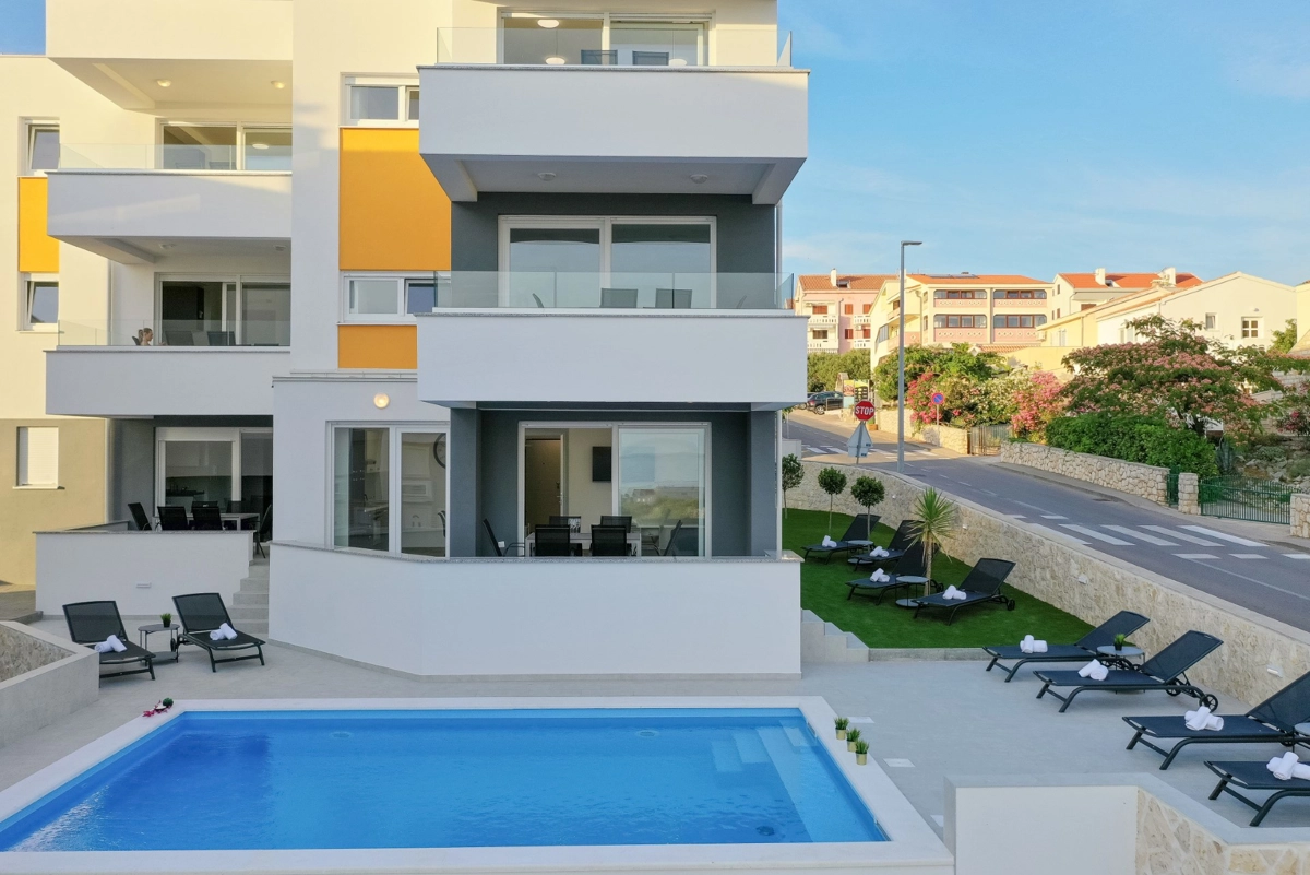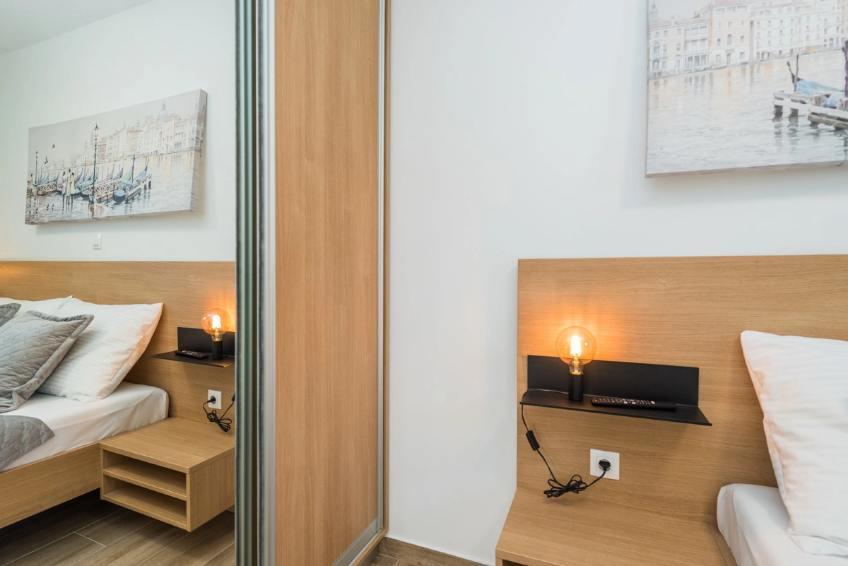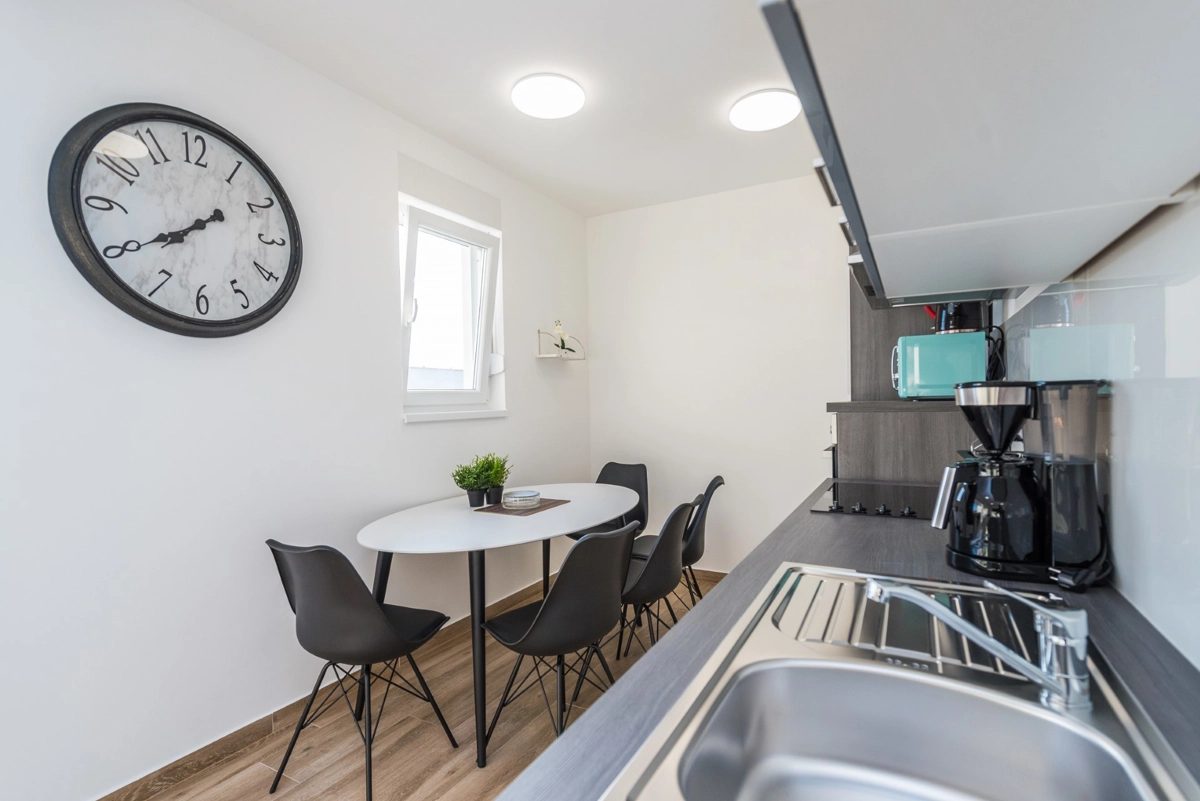 The facility has a beautiful view, but is located right on the main street in Novalia. Right next to the bus stop that takes young people to and from ZRCE. Good for teenagers, hopeless for families. Screaming and movement until 3am. It is impossible to sleep with the windows open. There is a badly located manhole in the street, so every car makes noise. There are a few flaws in the apartment itself: the bathroom door closes incorrectly, Wi-Fi breaks, some kitchen equipment is missing (cutting board, blunt knives, no ice cube tray, too few cutlery to replace at the dishwasher - there should be 2 sets