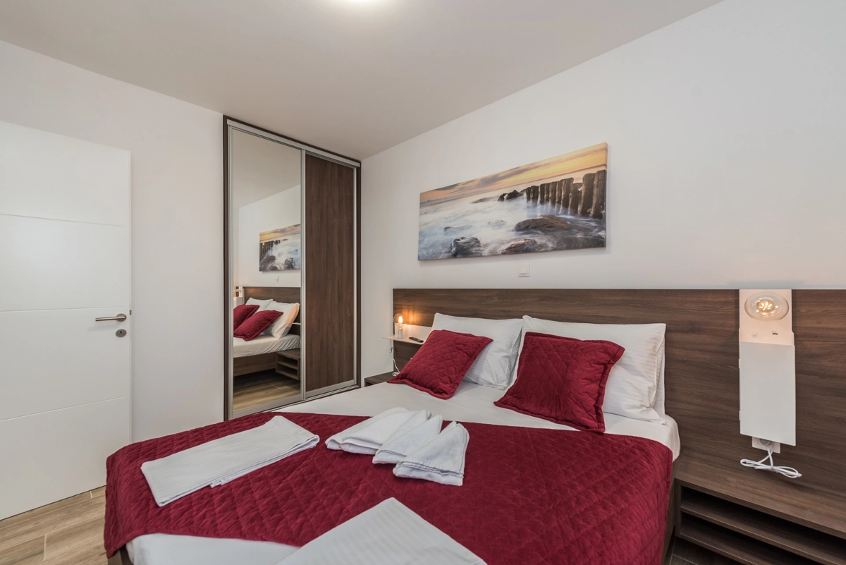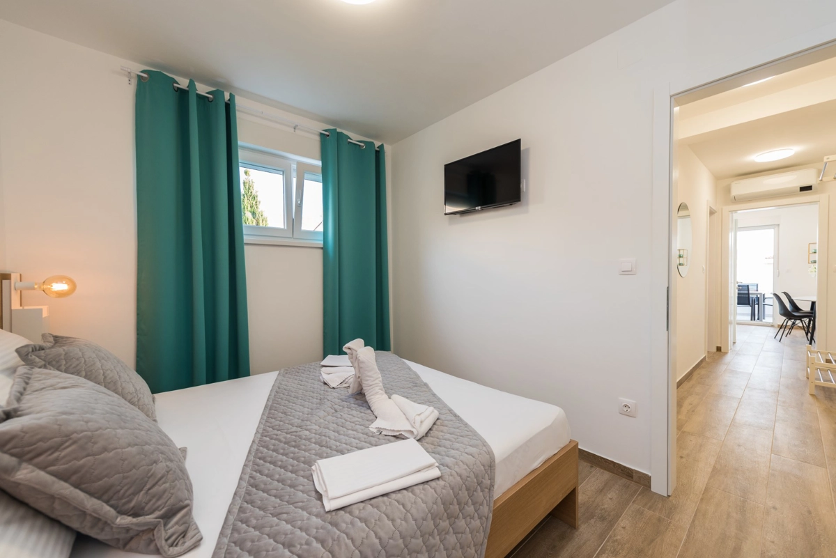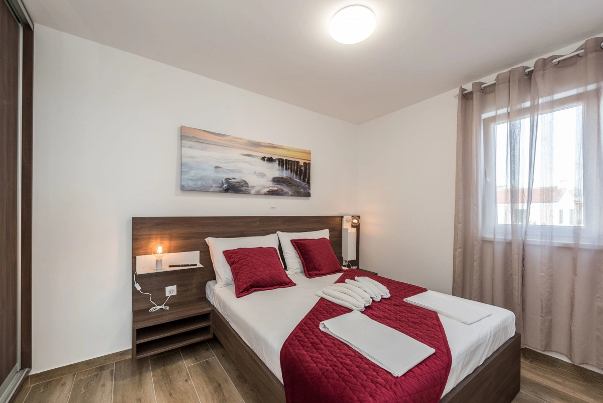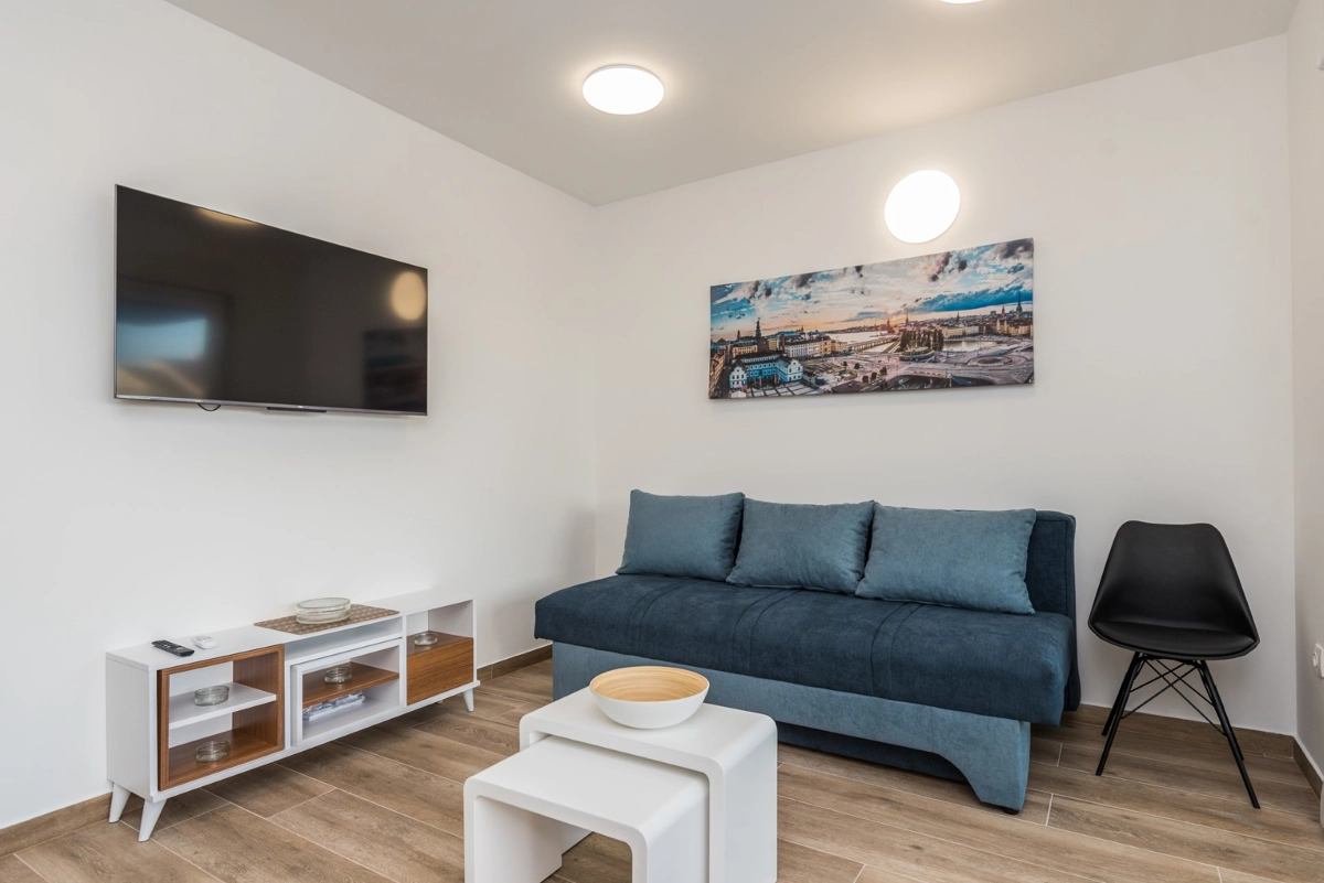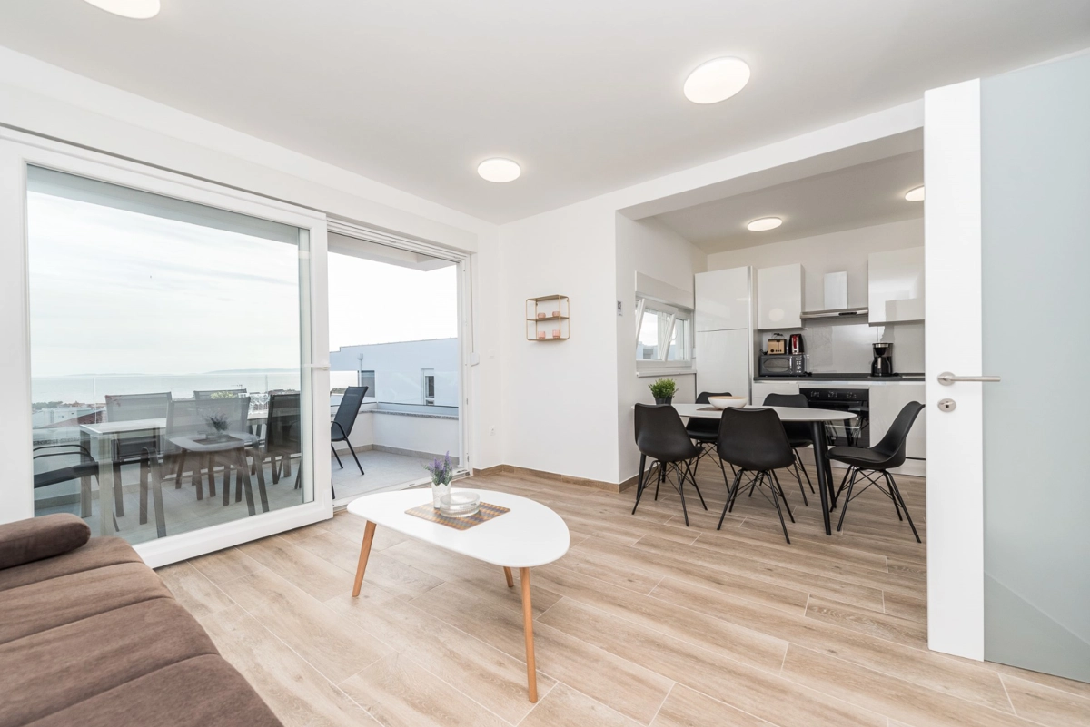 The facility has a beautiful view, but is located right on the main street in Novalia. Right next to the bus stop that takes young people to and from ZRCE. Good for teenagers, hopeless for families. Screaming and movement until 3am. It is impossible to sleep with the windows open. There is a badly located manhole in the street, so every car makes noise. There are a few flaws in the apartment itself: the bathroom door closes incorrectly, Wi-Fi breaks, some kitchen equipment is missing (cutting board, blunt knives, no ice cube tray, too few cutlery to replace at the dishwasher - there should be 2 sets