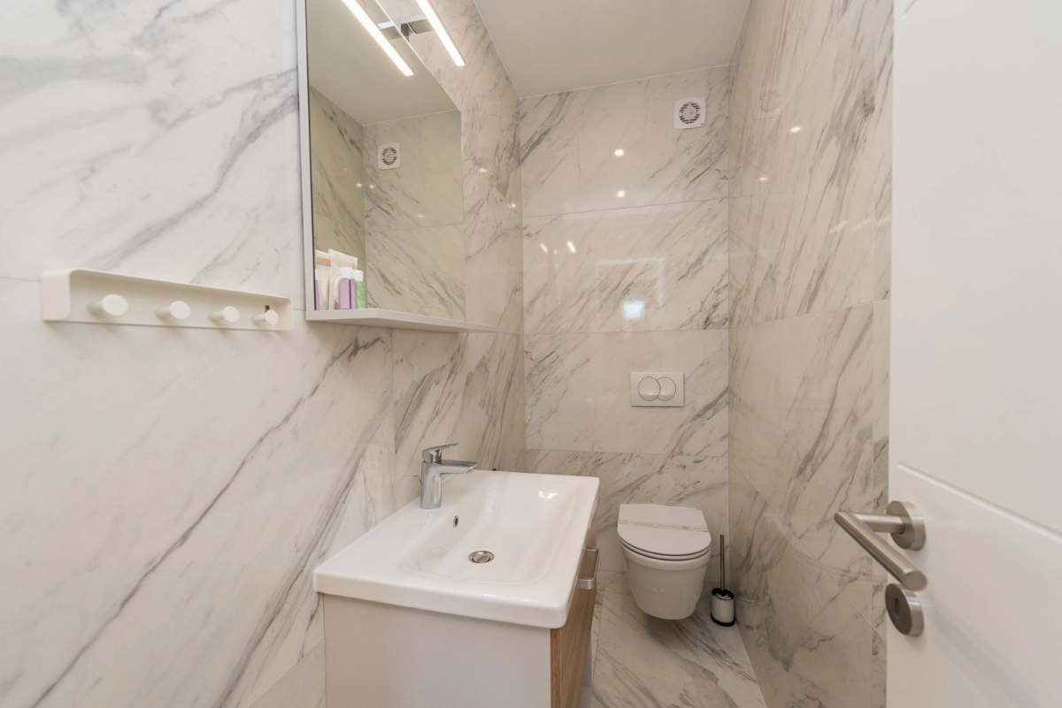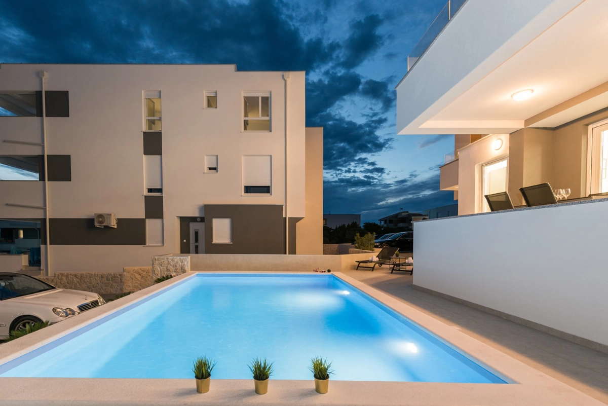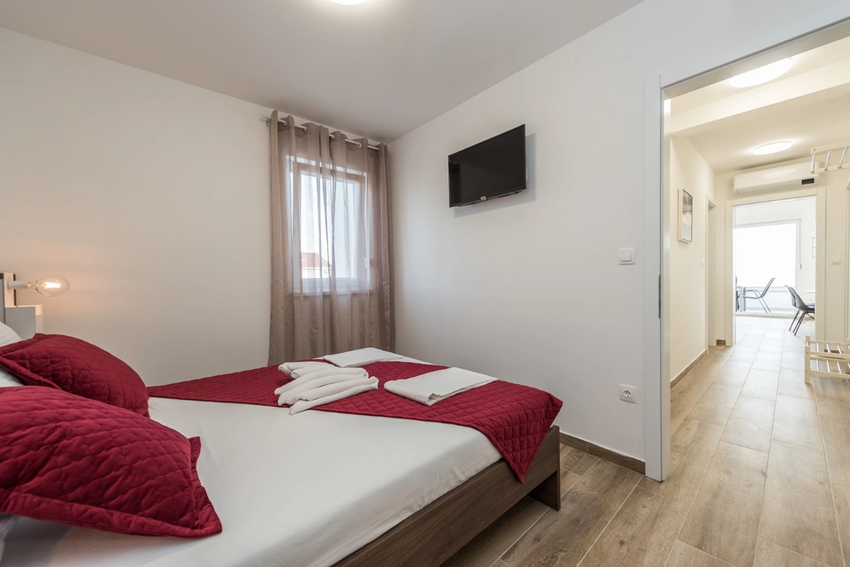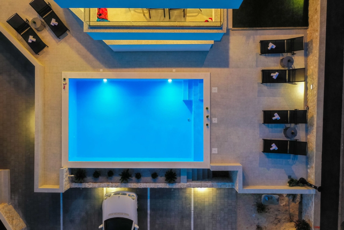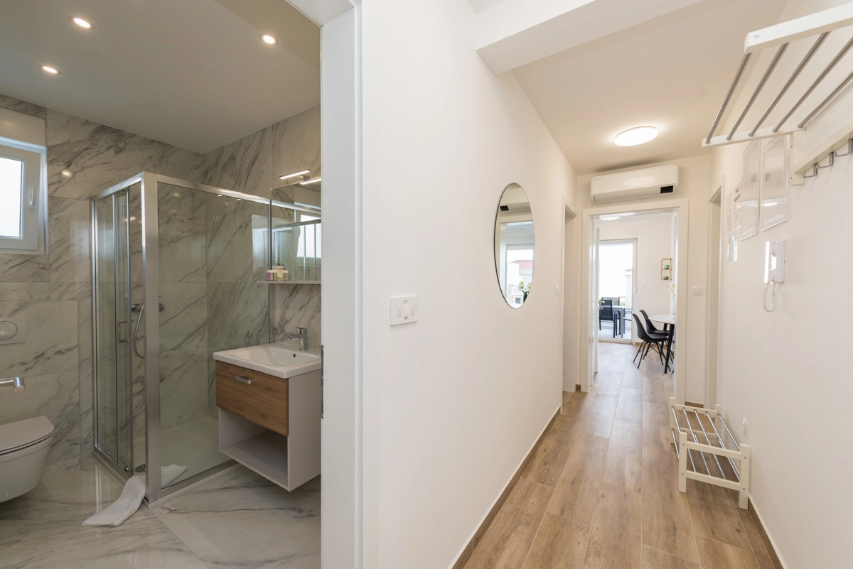 The facility has a beautiful view, but is located right on the main street in Novalia. Right next to the bus stop that takes young people to and from ZRCE. Good for teenagers, hopeless for families. Screaming and movement until 3am. It is impossible to sleep with the windows open. There is a badly located manhole in the street, so every car makes noise. There are a few flaws in the apartment itself: the bathroom door closes incorrectly, Wi-Fi breaks, some kitchen equipment is missing (cutting board, blunt knives, no ice cube tray, too few cutlery to replace at the dishwasher - there should be 2 sets