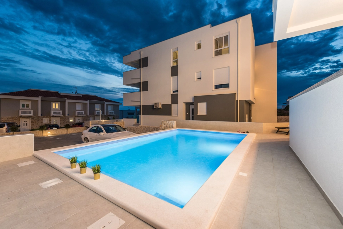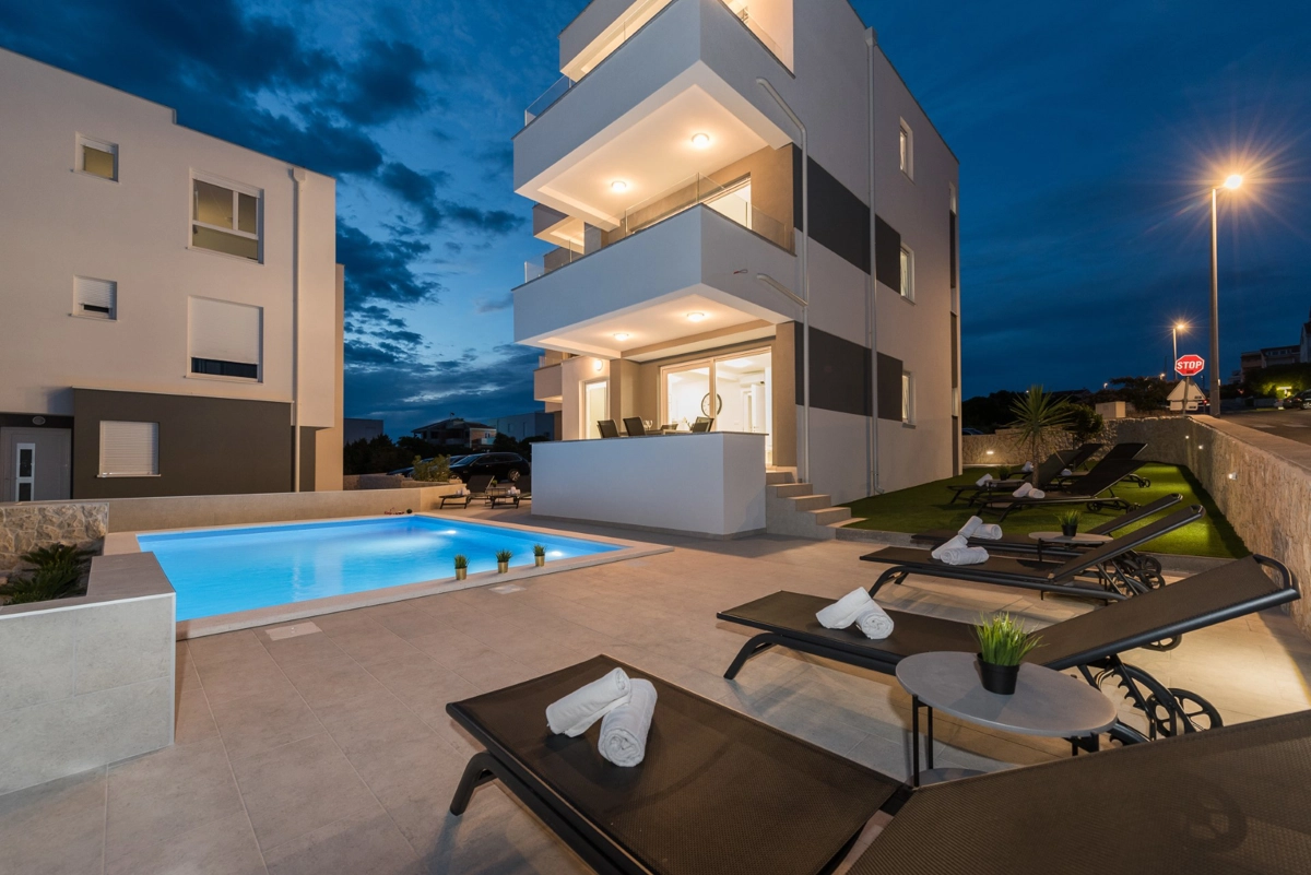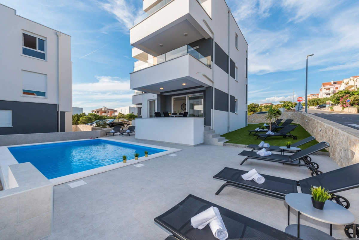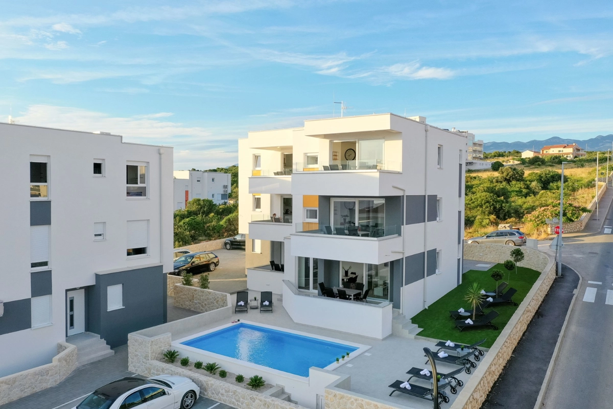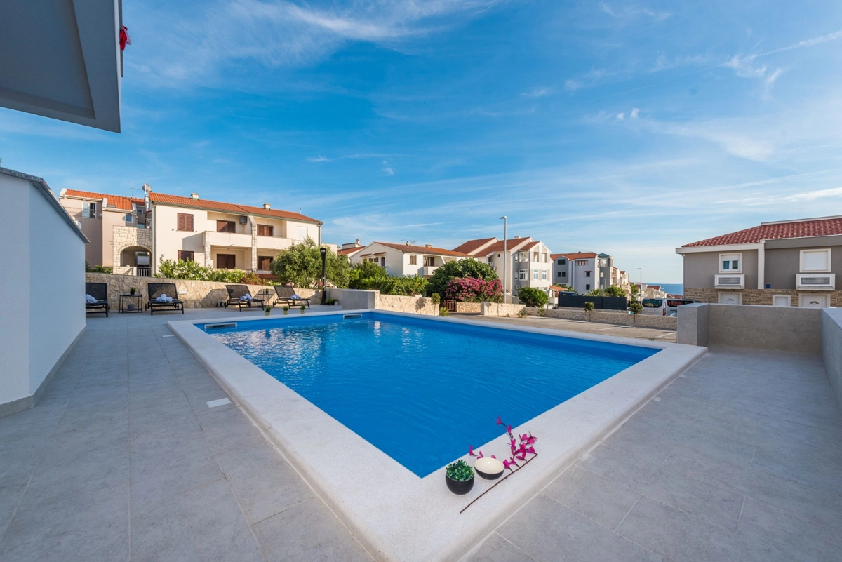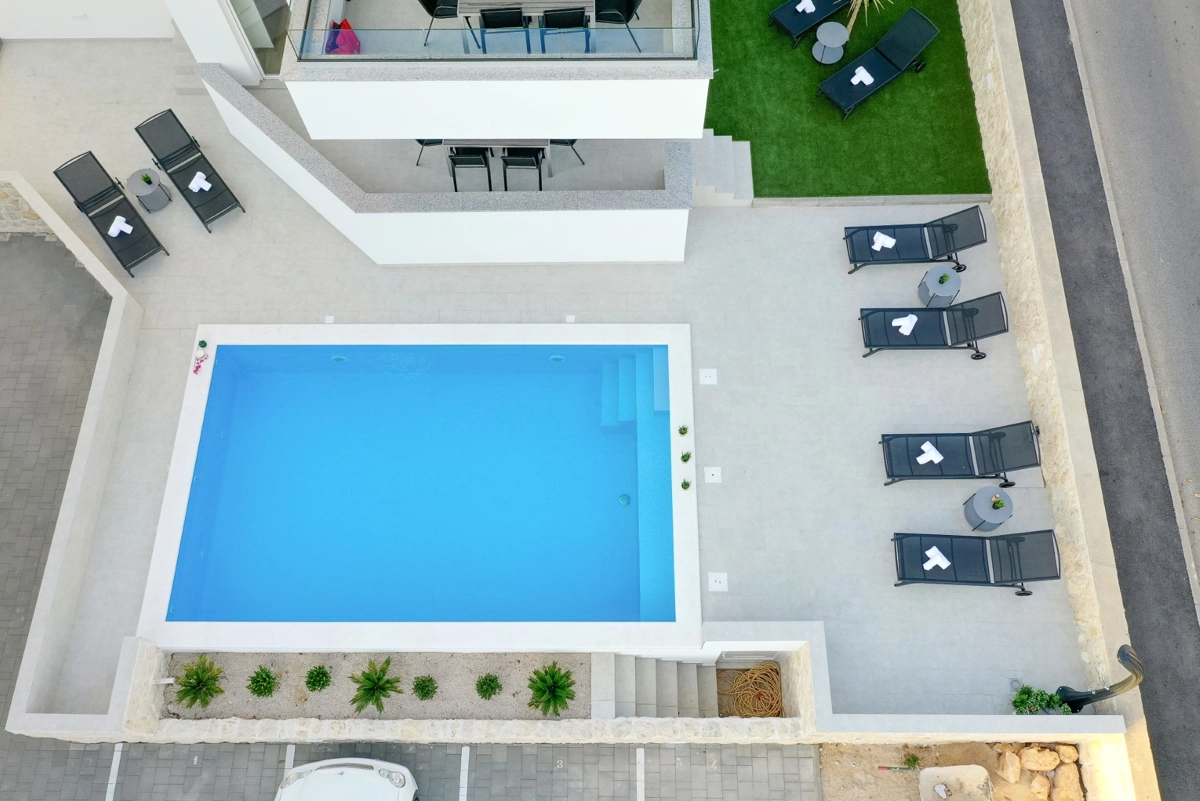 Apartment was new and clean, big terrasse with the sea view. We enjoyed the pool, majority of time by ourselves. Many great beaches in the island (reachable by car). City center in walking distance (+-15 mins). As we were there after festival season, no issues with noisy people.