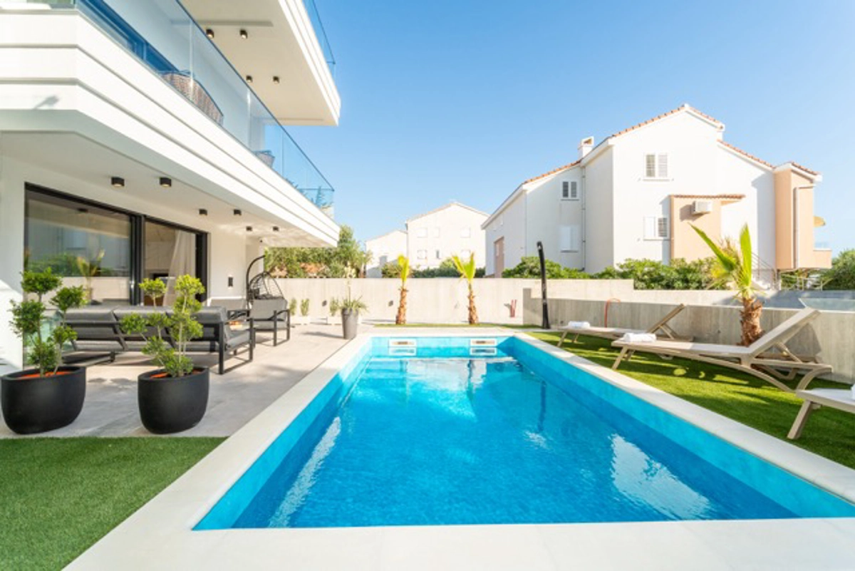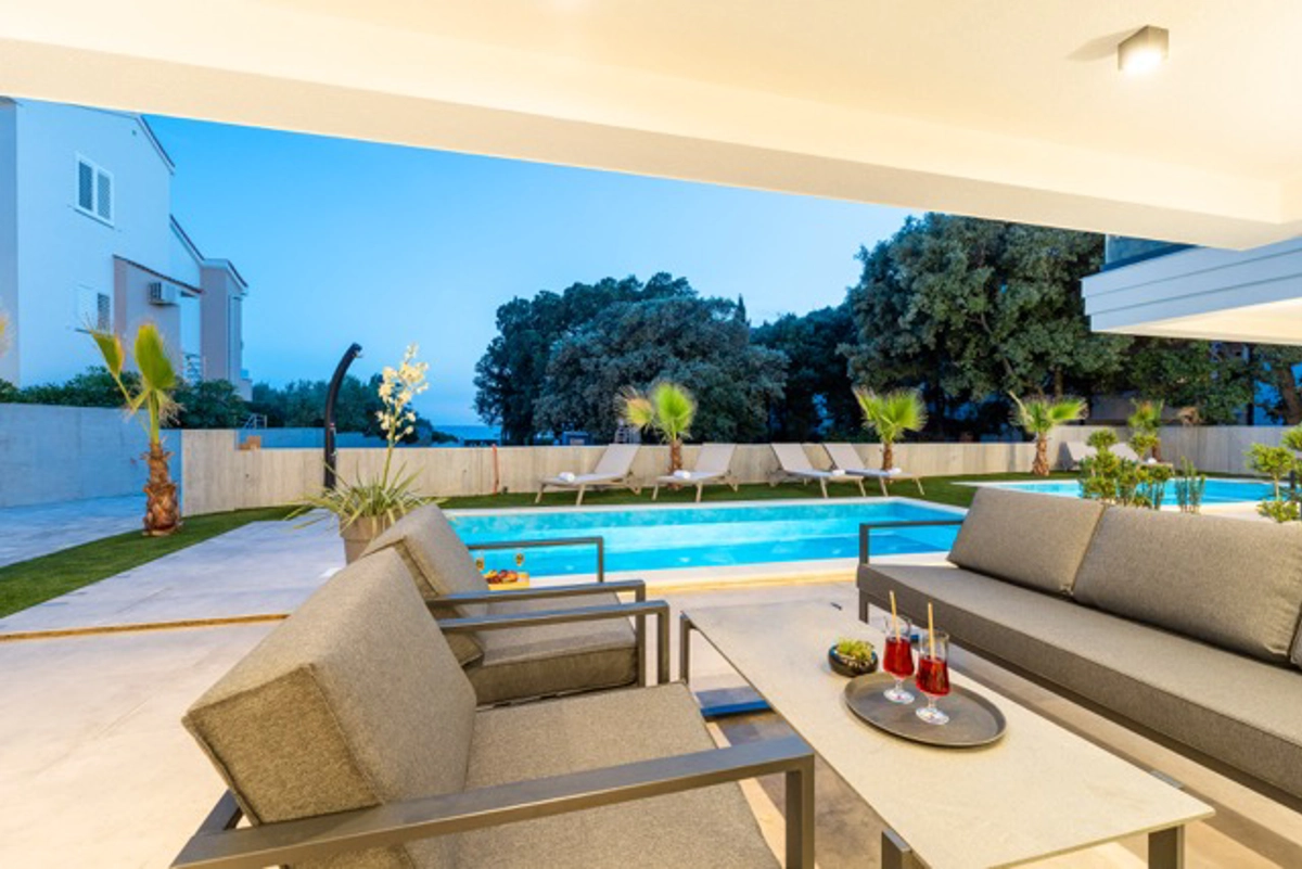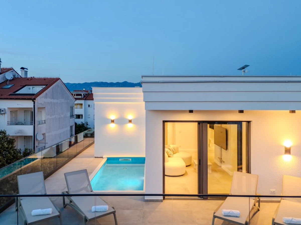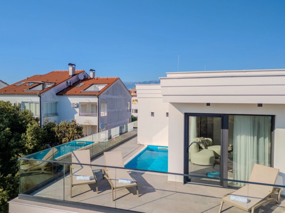 Ogni appartamento dispone di una piscina privata, ideale per rilassarsi in totale tranquillità, mentre la spiaggia è raggiungibile con una breve passeggiata, perfetta per godersi le acque cristalline del Mare Adriatico. Con finiture di alto livello, design contemporaneo e viste mozzafiato, questa proprietà è la scelta ideale per chi cerca un soggiorno raffinato e lussuoso sulla costa.