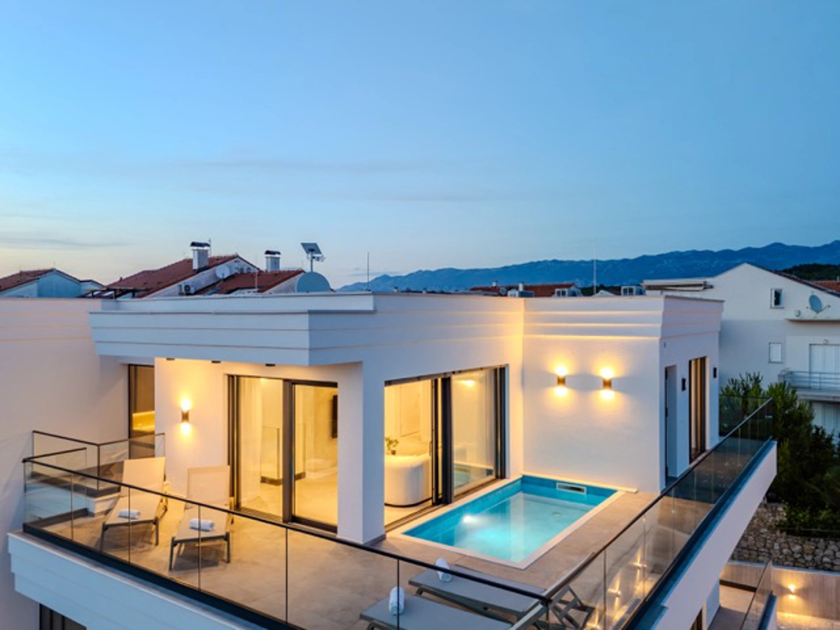 Costruita nel 2025, questa nuovissima proprietà di lusso vi accoglie per una vacanza indimenticabile sulla splendida isola di Pag. La struttura offre quattro appartamenti esclusivi, ciascuno progettato per garantire il massimo comfort, privacy ed eleganza moderna.