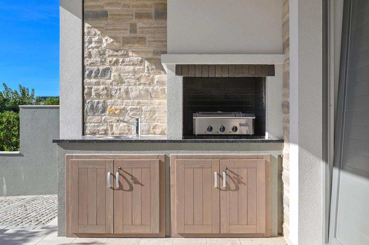 Ogni villa è composta da due piani. Al piano terra c'è uno spazio aperto con una cucina completamente attrezzata, una zona pranzo e un soggiorno con vista sulla zona piscina. Il punto forte della proprietà è la piscina riscaldata con lettini, circondata da un giardino. C'è anche una cucina all'aperto e un barbecue dove puoi goderti il tempo con i tuoi amici e la tua famiglia. Al primo piano ci sono tre camere da letto e tre bagni.
