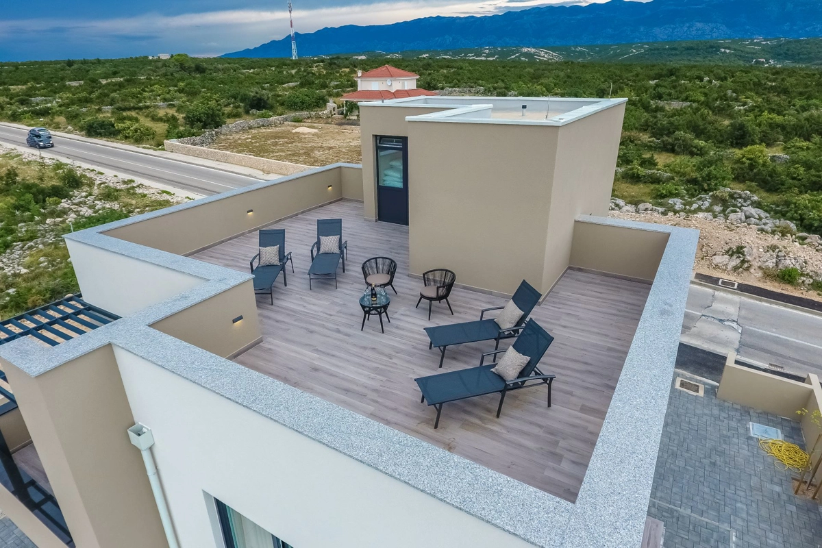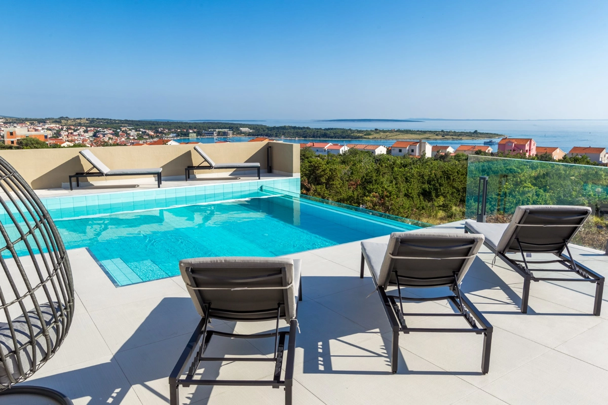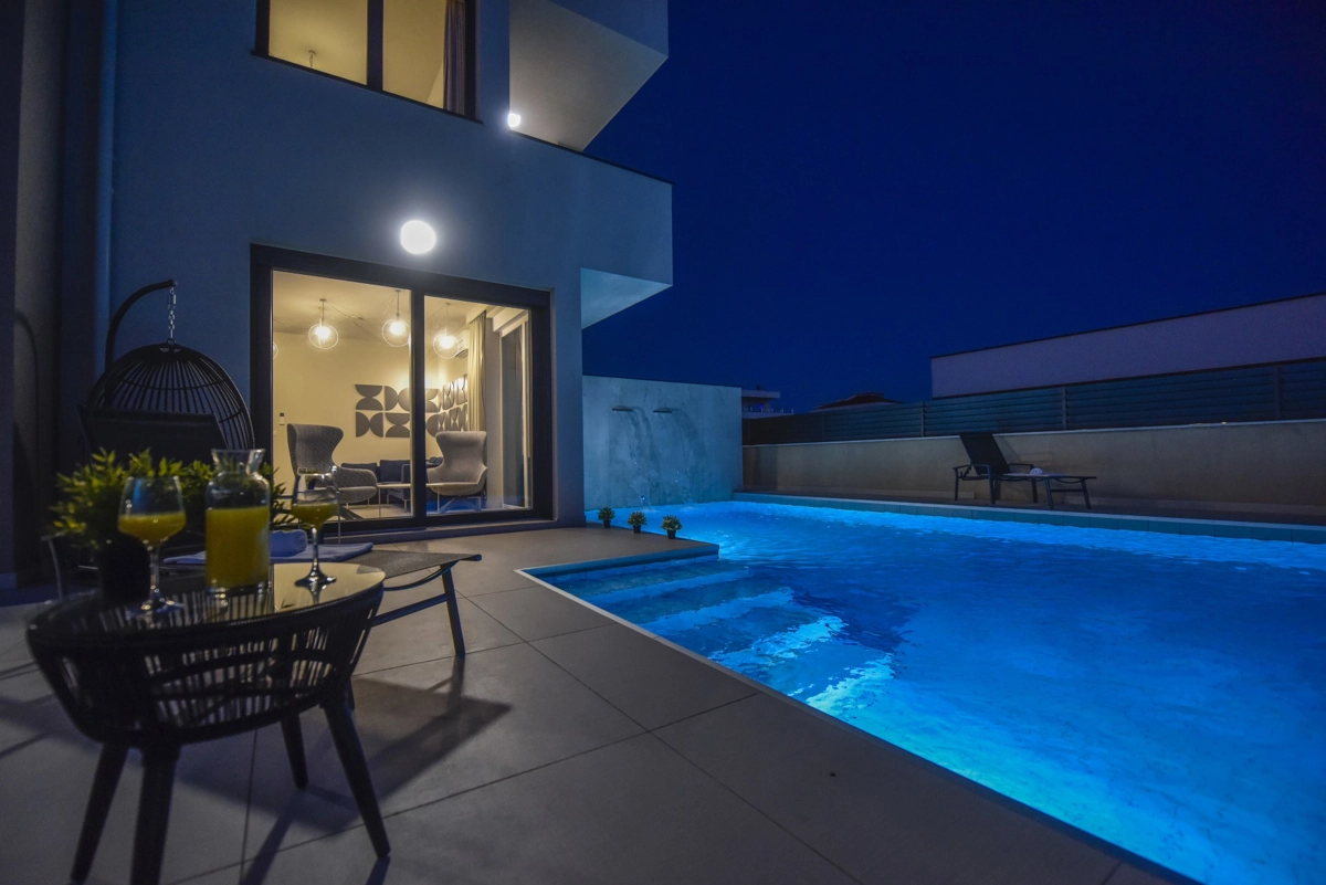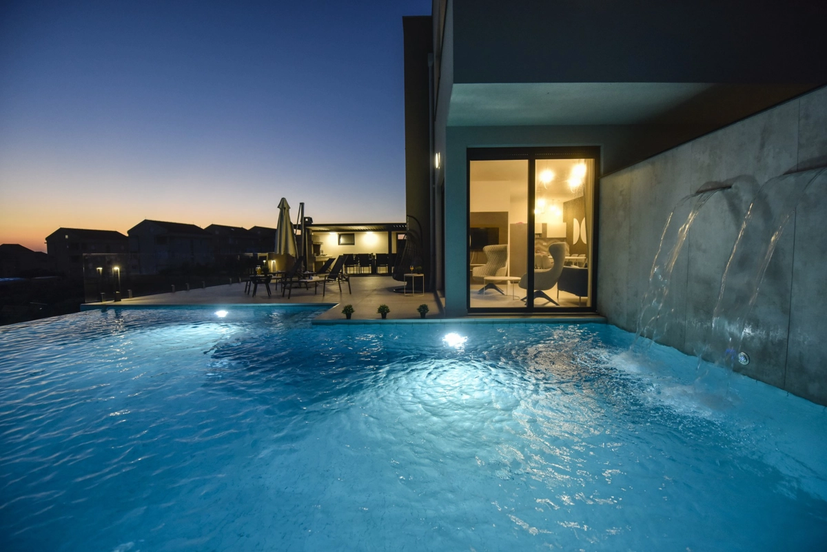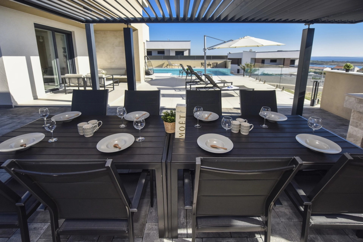Villa Sara offre un'esperienza unica di estate e vacanza. Offre privacy, ottima posizione, ampiezza, comfort, design eccellente e un ambiente piacevole. Dispone di quattro camere da letto, tre delle quali situate al primo piano, ognuna dotata di bagno privato con doccia. Il piano terra ha un bagno aggiuntivo e soggiorno con cucina. Il soggiorno è abbastanza spazioso, con la vista sulla piscina e sul solarium, e le pareti in vetro danno l'impressione che dalla comodità della poltrona si possa tuffarsi direttamente in piscina. Nell'estensione del soggiorno c'è una cucina con un grande tavolo da pranzo e abbastanza spazio per tutti gli ospiti. L'esperienza completa inizia dopo che uscite sulla terrazza. Una piscina a straripamento con cascate, da cui avete la vista sulla città, circondata da un solarium arredato con tutto il necessario per un piacere completo. Qui potete completamente rilassarvi e dimenticare il tempo. La terrazza solarium dispone di una cucina all'aperto con barbecue e mobili da giardino. Qui potete preparare i pasti e godervi una leggera brezza estiva. Se diventa caldo, rinfrescatevi in piscina. Villa Sara è stata creata per un piacere completo e relax. Come la ciliegina sulla torta, la villa comprende una terrazza al secondo piano che offre una vista eccezzionale sulla città, e Novalja è nota per i suoi splendidi tramonti. Il vostro soggiorno garantisce una completa privacy, eppure vi trovate nella vicinanza al centro e alle spiagge. La stazione degli autobus per la spiaggia di Zrće, luogo della migliore vita notturna, è a 3 minuti a piedi. Possiamo fornire parcheggio per un massimo di tre auto nel cortile della villa e connessione Wi-Fi gratuita.