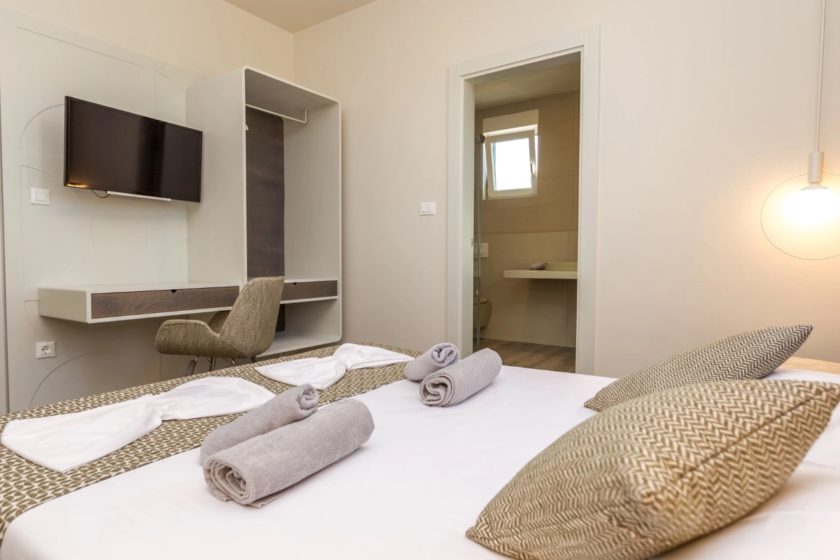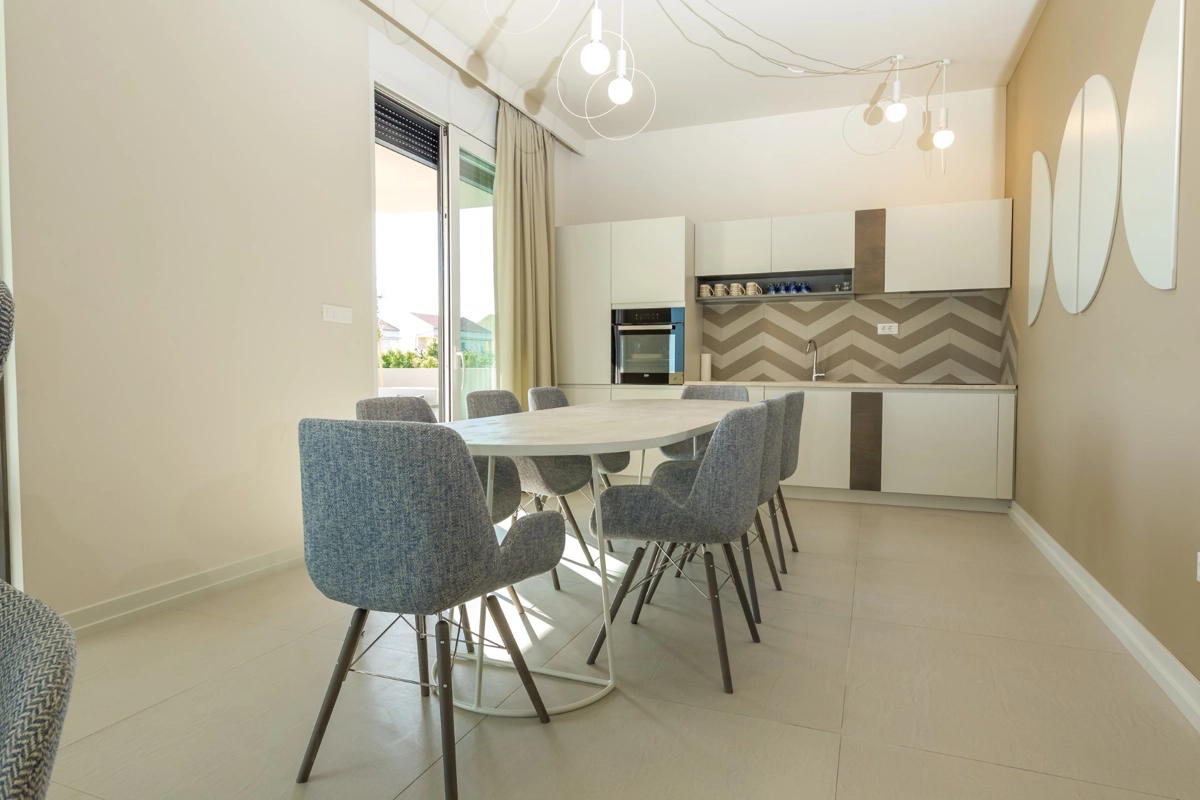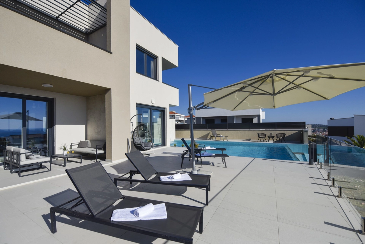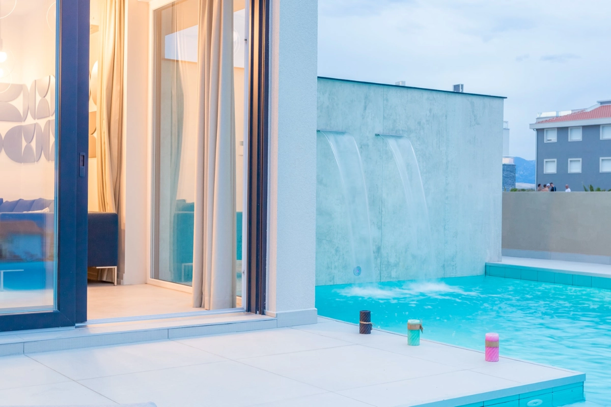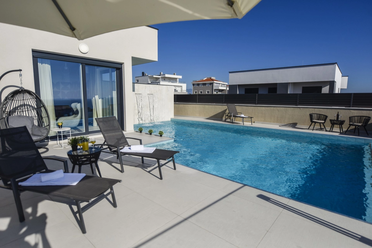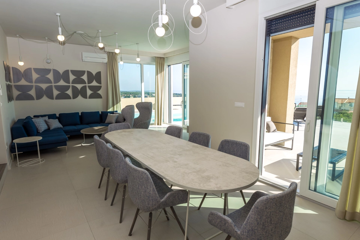 Villa Sara offre un'esperienza unica di estate e vacanza. Offre privacy, ottima posizione, ampiezza, comfort, design eccellente e un ambiente piacevole. Dispone di quattro camere da letto, tre delle quali situate al primo piano, ognuna dotata di bagno privato con doccia. Il piano terra ha un bagno aggiuntivo e soggiorno con cucina. Il soggiorno è abbastanza spazioso, con la vista sulla piscina e sul solarium, e le pareti in vetro danno l'impressione che dalla comodità della poltrona si possa tuffarsi direttamente in piscina. Nell'estensione del soggiorno c'è una cucina con un grande tavolo da pranzo e abbastanza spazio per tutti gli ospiti. L'esperienza completa inizia dopo che uscite sulla terrazza. Una piscina a straripamento con cascate, da cui avete la vista sulla città, circondata da un solarium arredato con tutto il necessario per un piacere completo. Qui potete completamente rilassarvi e dimenticare il tempo. La terrazza solarium dispone di una cucina all'aperto con barbecue e mobili da giardino. Qui potete preparare i pasti e godervi una leggera brezza estiva. Se diventa caldo, rinfrescatevi in piscina. Villa Sara è stata creata per un piacere completo e relax. Come la ciliegina sulla torta, la villa comprende una terrazza al secondo piano che offre una vista eccezzionale sulla città, e Novalja è nota per i suoi splendidi tramonti. Il vostro soggiorno garantisce una completa privacy, eppure vi trovate nella vicinanza al centro e alle spiagge. La stazione degli autobus per la spiaggia di Zrće, luogo della migliore vita notturna, è a 3 minuti a piedi. Possiamo fornire parcheggio per un massimo di tre auto nel cortile della villa e connessione Wi-Fi gratuita.
