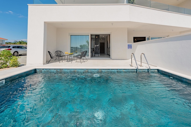 Apartments Twins offers modern, fully-equipped rooms and apartments with sunbathing areas and outdoor pools. With two identical buildings and a total of four pools, they ensure a comfortable and enjoyable stay. Nestled on the stunning island of Pag, Twins Apartments provide the ideal base for a tranquil and rejuvenating vacation, just a stone's throw away from the bus station to the vibrant Zrce Beach, ensuring you have the best of both worlds.